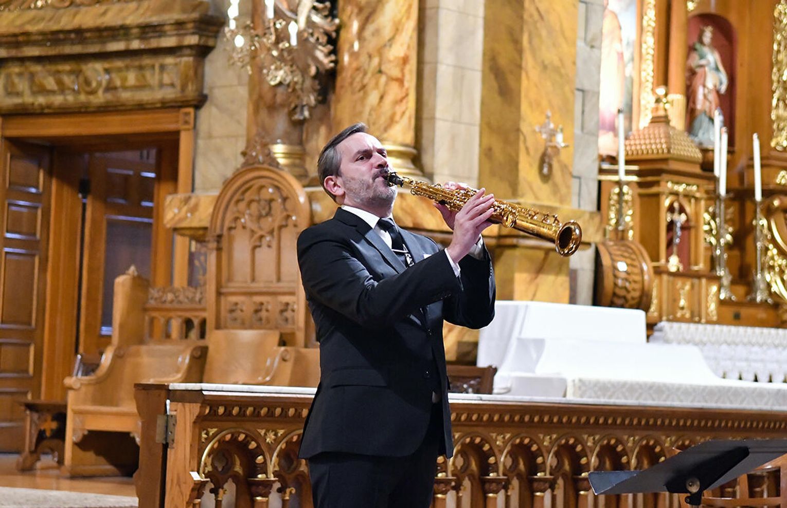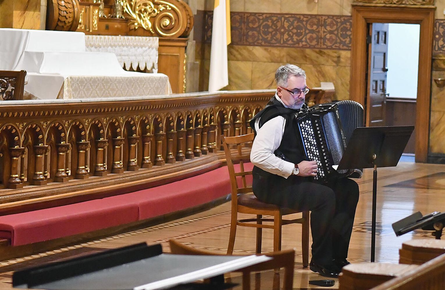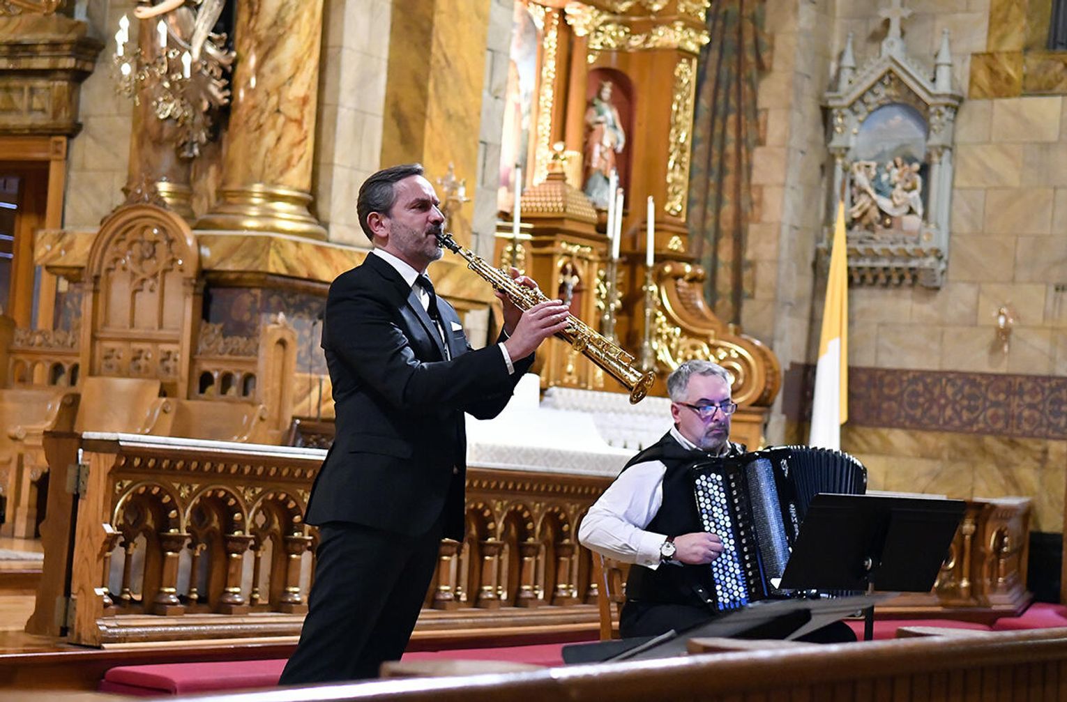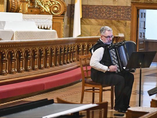 – Skomponowałem na zamówienie Chóru Collegium Cantorum Polonia z Chicago i Arkadiusza Góreckiego cykl utworów maryjnych – „Misterium o Matce Bożej”. Są to polskie pieśni maryjne, które są przedzielane częściami instrumentalnymi w wykonaniu znakomitych profesorów, wybitnych muzyków: saksofonisty Pawła Gusnara i akordeonisty Klaudiusza Barana. Ten utwór miał dzisiaj prawykonanie światowe – opowiadał profesor Łukaszewski.