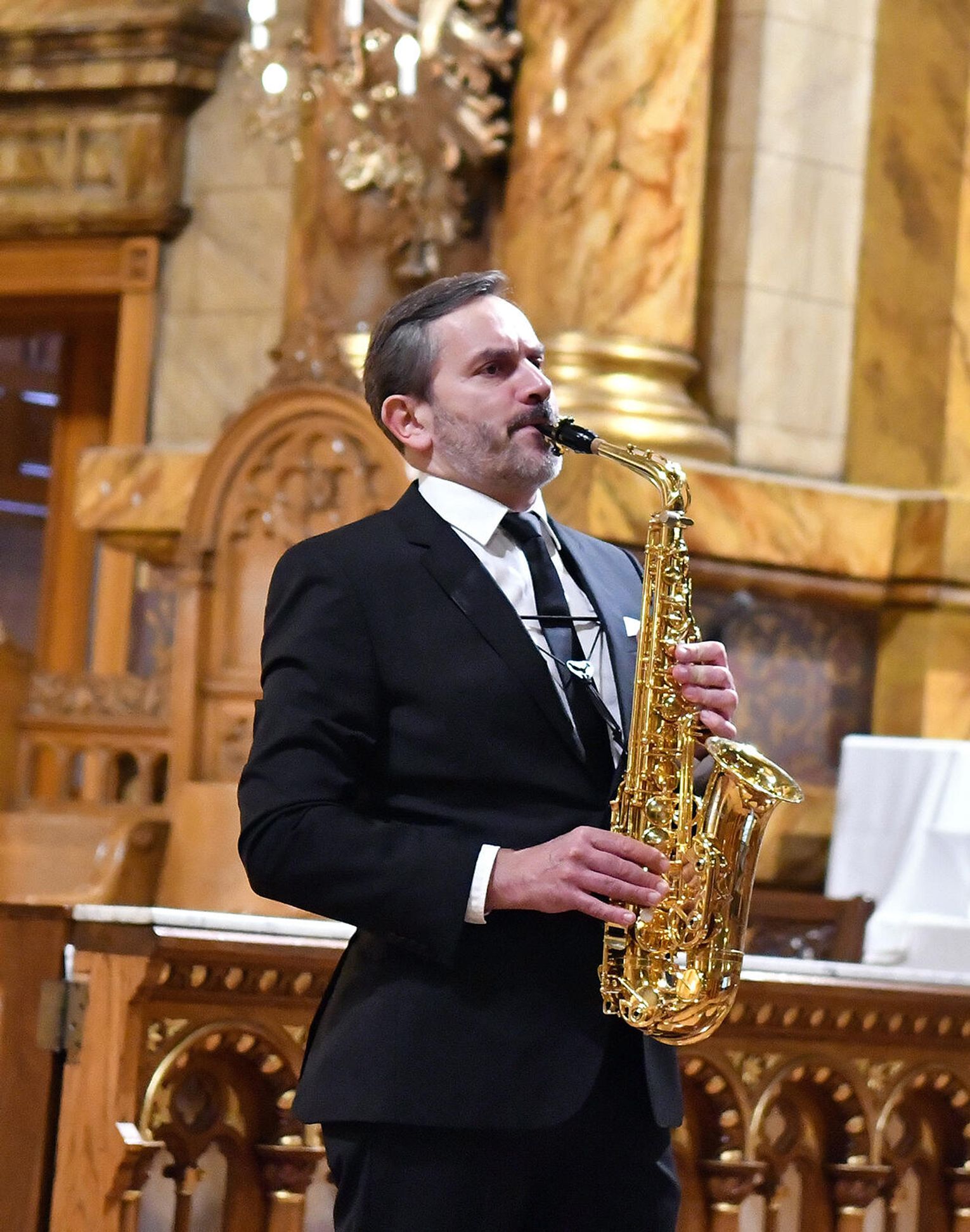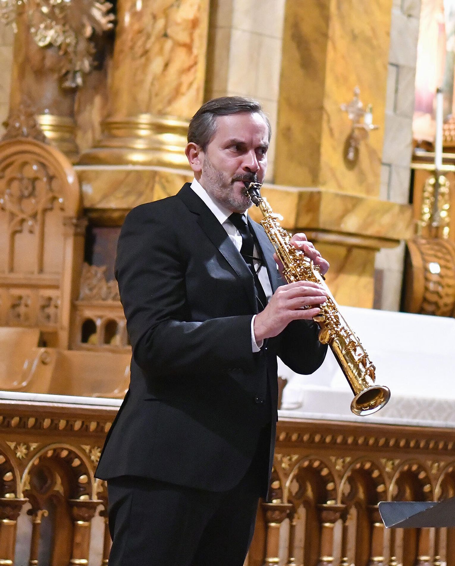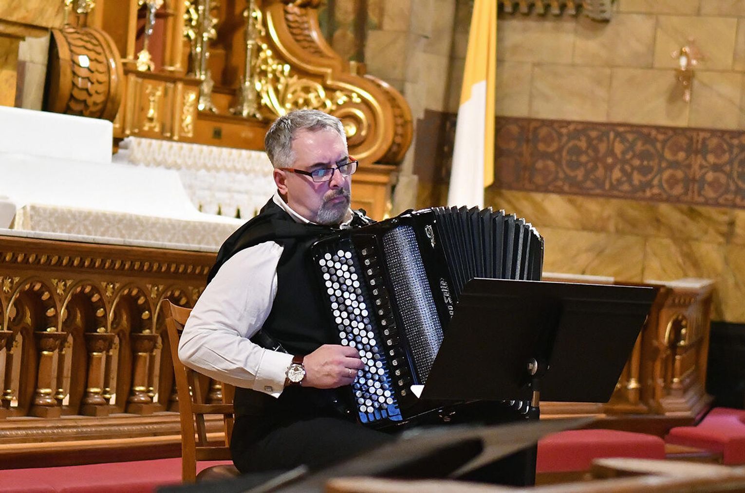 – Skomponowałem na zamówienie Chóru Collegium Cantorum Polonia z Chicago i Arkadiusza Góreckiego cykl utworów maryjnych – „Misterium o Matce Bożej”. Są to polskie pieśni maryjne, które są przedzielane częściami instrumentalnymi w wykonaniu znakomitych profesorów, wybitnych muzyków: saksofonisty Pawła Gusnara i akordeonisty Klaudiusza Barana. Ten utwór miał dzisiaj prawykonanie światowe – opowiadał profesor Łukaszewski.