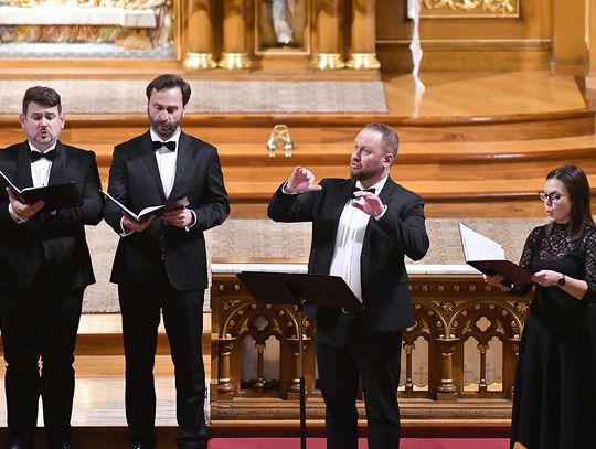 Arkadiusz Górecki dyrygent Collegium Cantorum Polonia podziękował sponsorom. Wyrazy wdzięczności przekazano proboszczowi parafii św. Jana Kantego, księdzu Davidowi Yallaly, SJC.