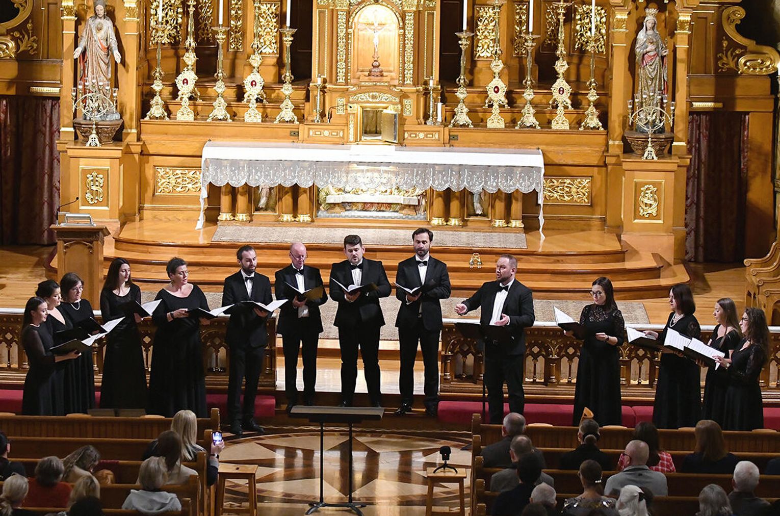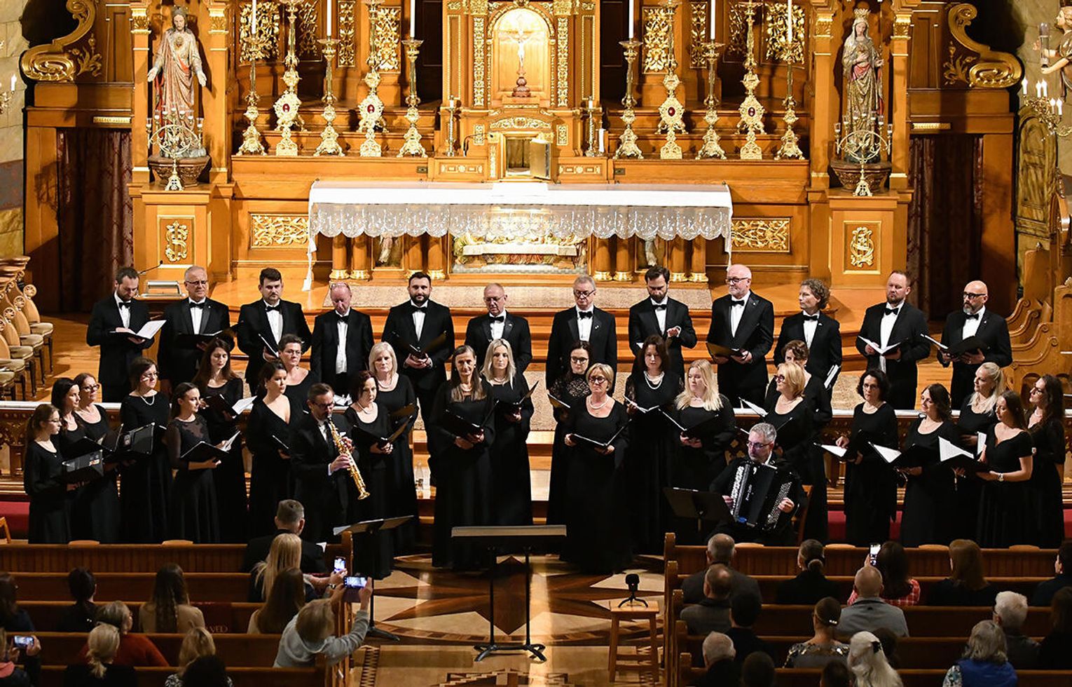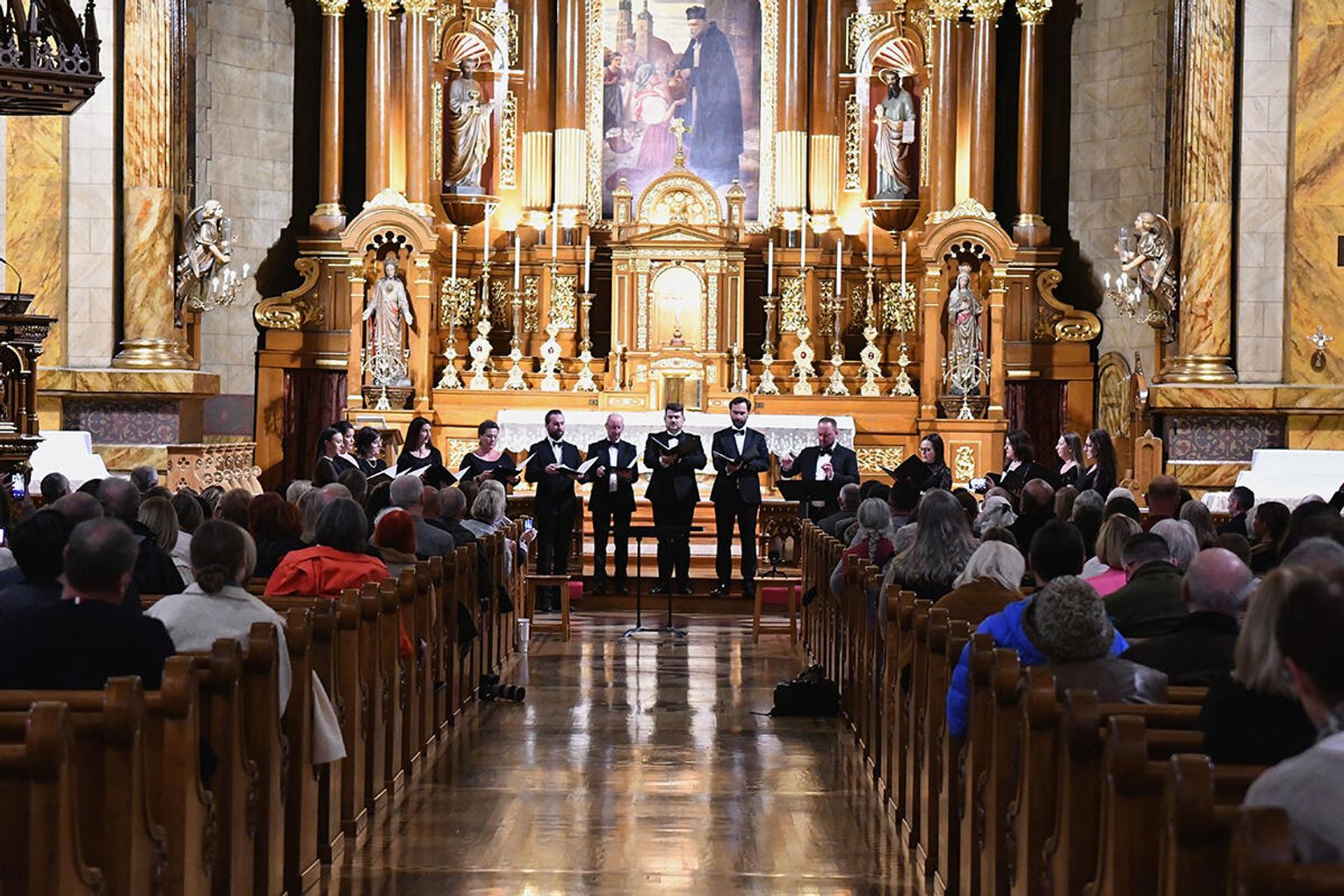Po dołączeniu do Chóru Filharmonii Krakowskiej Chór Collegium Cantorum Polonia, dwa chóry i dwóch solistów wykonali „Misterium o Matce Bożej”. Prawykonanie poprowadził profesor Paweł Łukaszewski – jeden z najwybitniejszych, współczesnych, polskich kompozytorów muzyki sakralnej. Zwieńczeniem koncertu było zaśpiewanie innego, ważnego hymnu „Gaude Mater Polonia”. Brzmienie chórów i instrumentów w tej przestrzeni miało pełne, rezonujące barwy, które wzmocniły dramatyzm misterium.