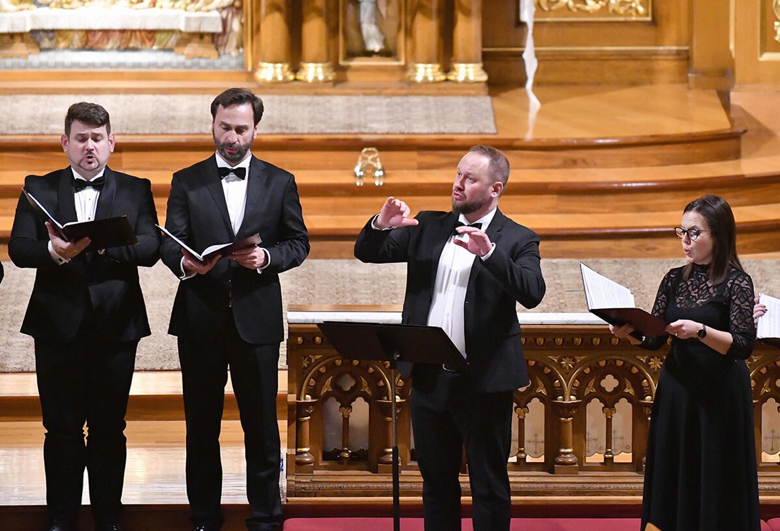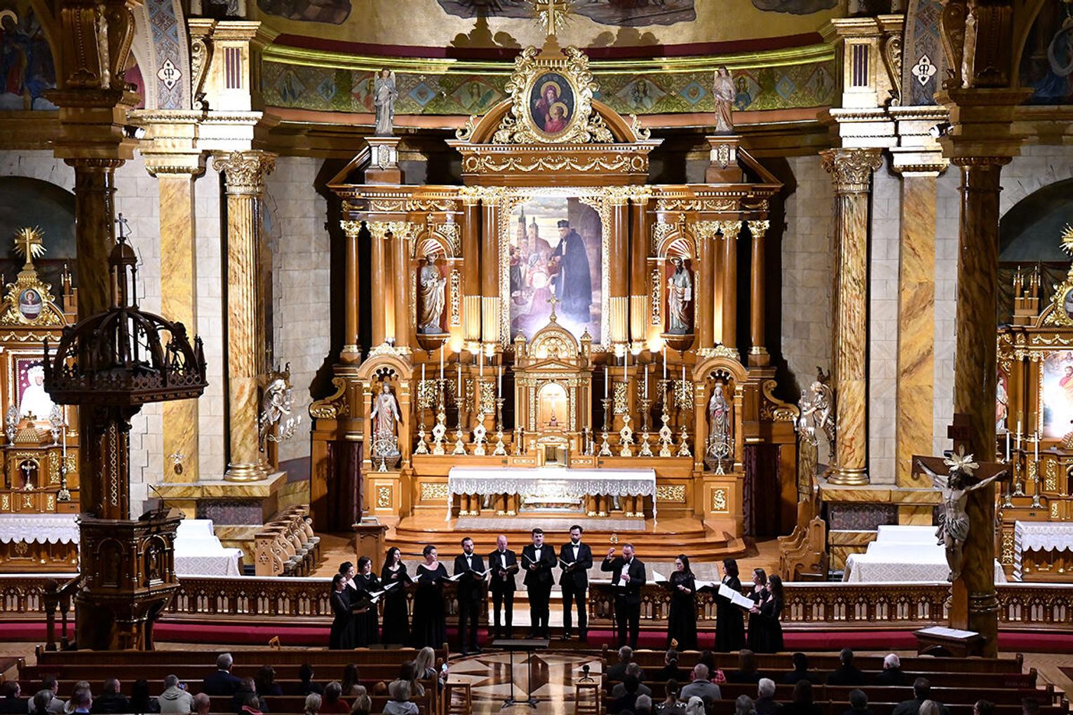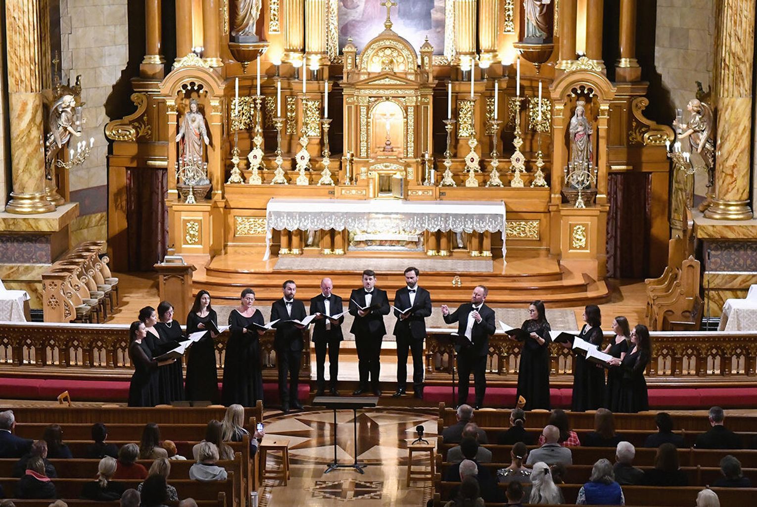 Po dołączeniu do Chóru Filharmonii Krakowskiej Chór Collegium Cantorum Polonia, dwa chóry i dwóch solistów wykonali „Misterium o Matce Bożej”. Prawykonanie poprowadził profesor Paweł Łukaszewski – jeden z najwybitniejszych, współczesnych, polskich kompozytorów muzyki sakralnej. Zwieńczeniem koncertu było zaśpiewanie innego, ważnego hymnu „Gaude Mater Polonia”. Brzmienie chórów i instrumentów w tej przestrzeni miało pełne, rezonujące barwy, które wzmocniły dramatyzm misterium.
