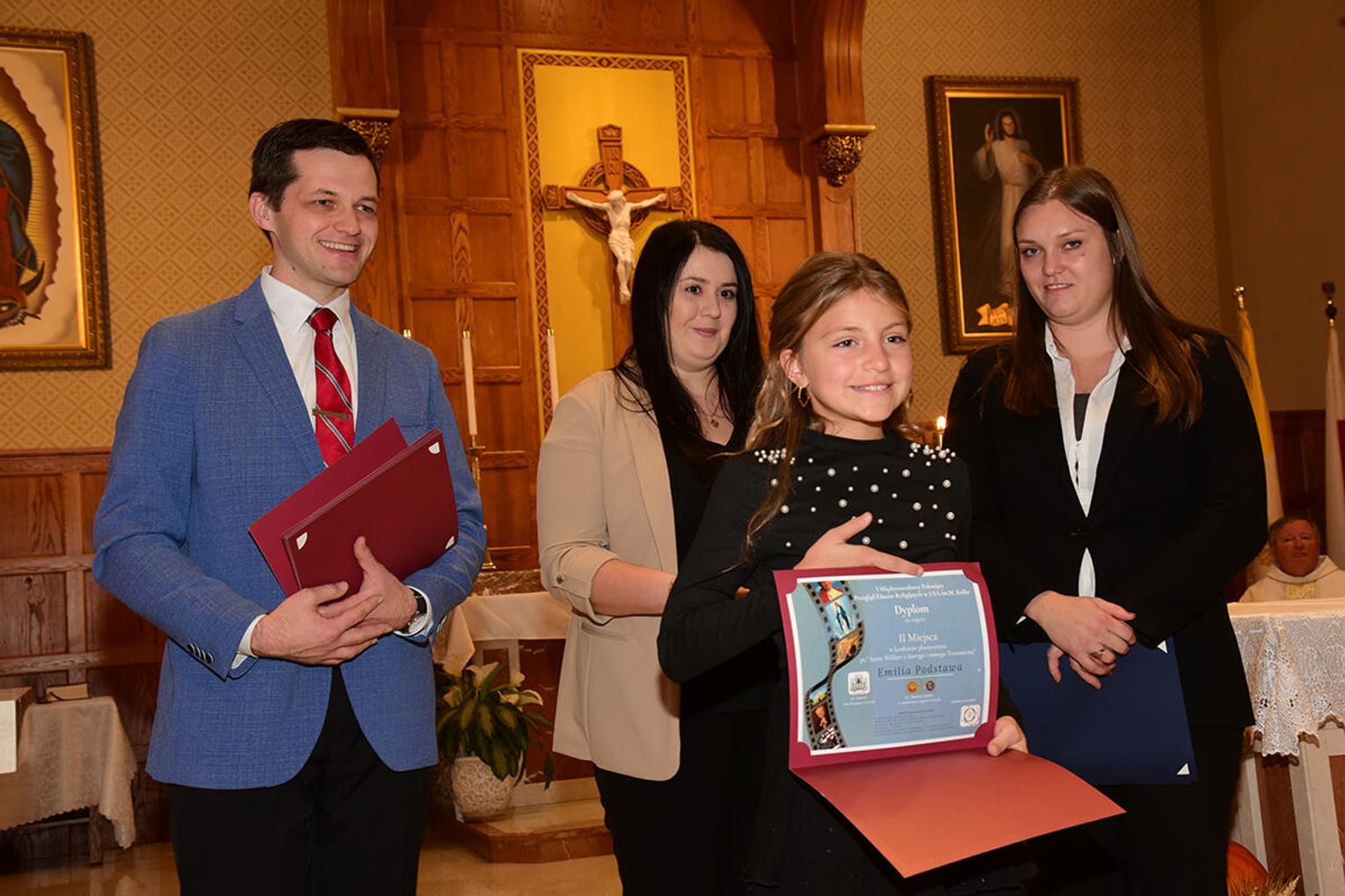 Laureaci otrzymali nagrody rzeczowe i finansowe ufundowane przez Polsko-Słowiańską Federalną Unię Kredytową. Wraz z organizatorkami przeglądu: Małgorzatą Tys, Kingą Modjeską i Beatą Czachor wręczali je Ewelina Matorski, Paulina Bielański z Naszej Unii i Konrad Pawełek, dyr. Polskiej Szkoły Katolickiej św. Błażeja.