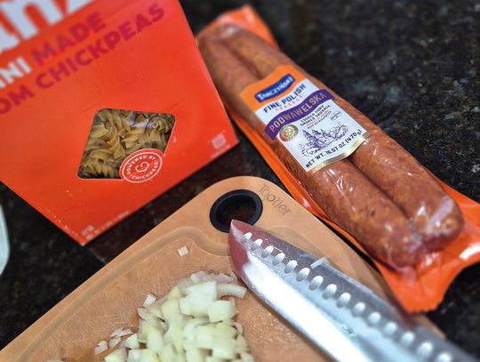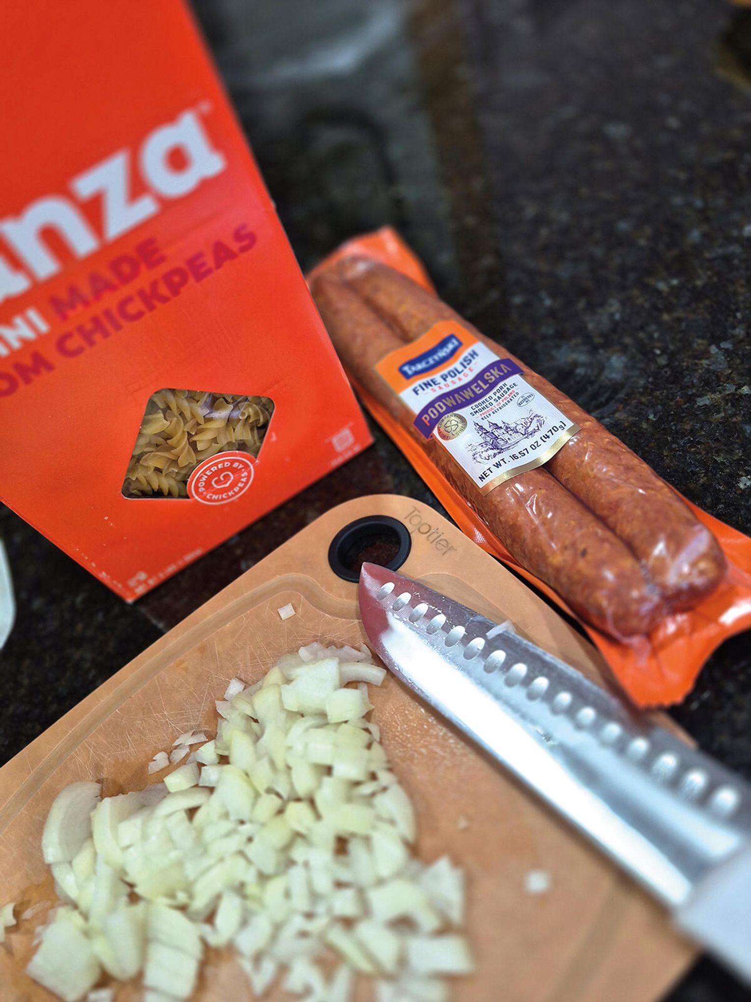 1 kiełbasa (ok. 300-350 g), pokrojona w półplasterki