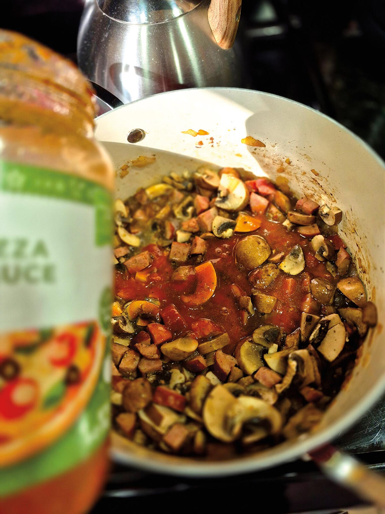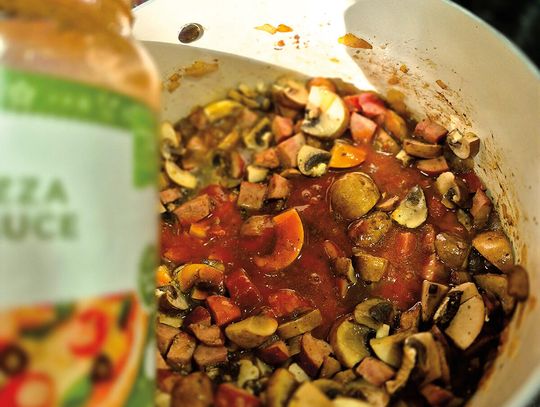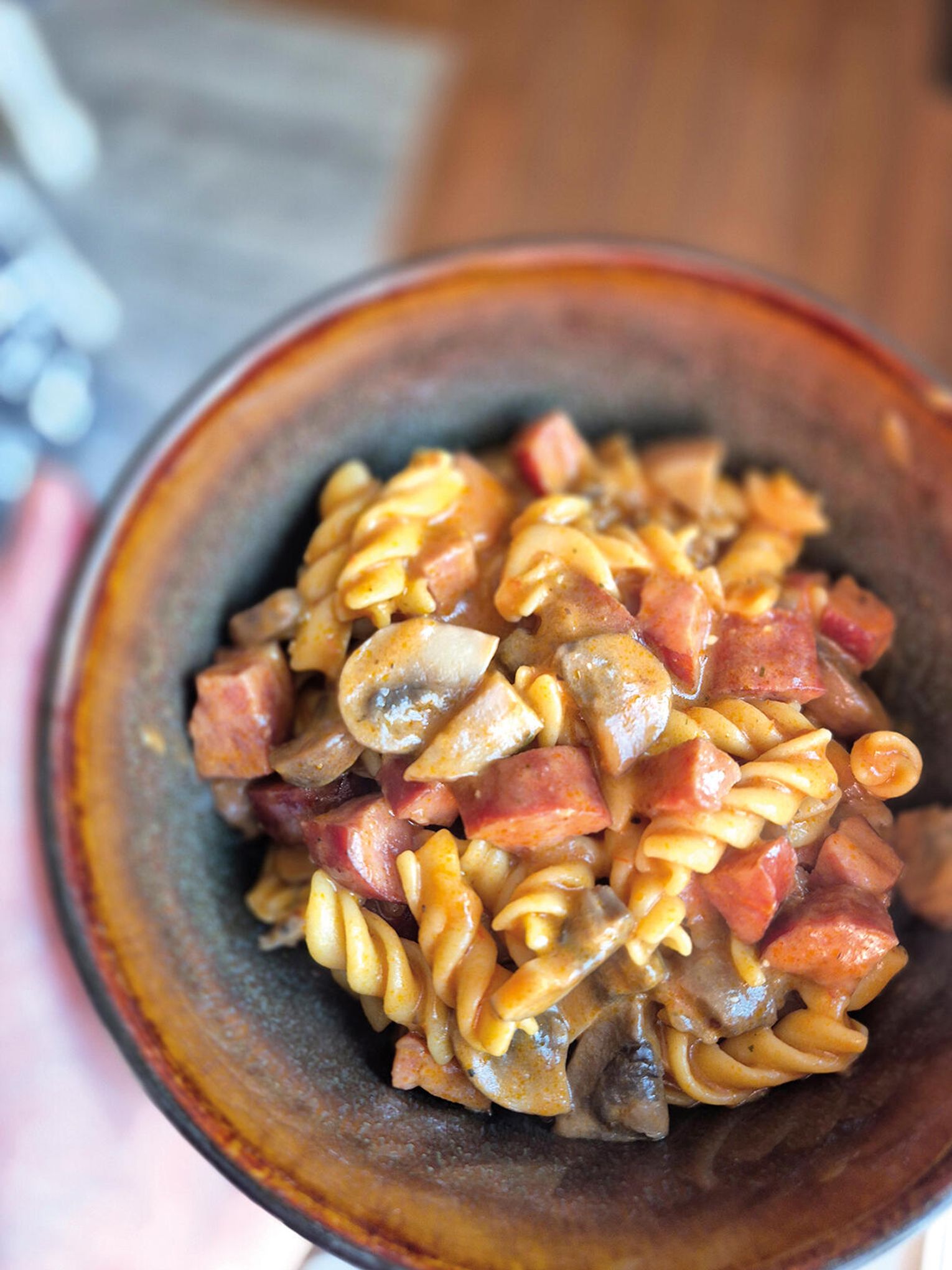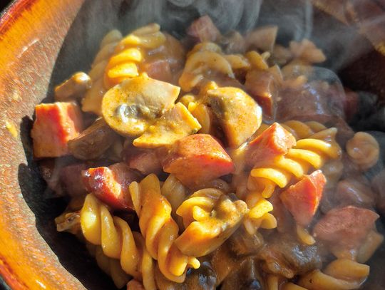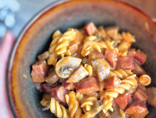 W takie dni nie ma nic lepszego niż szybki, domowy obiad z prostych składników, które prawie zawsze mamy w lodówce. Dzisiaj przygotowałam makaron z kiełbasą, cebulą, pieczarkami i sosem pomidorowym – danie, które robi się dosłownie w 25 minut, a pachnie jak najlepszy domowy obiad u mamy.