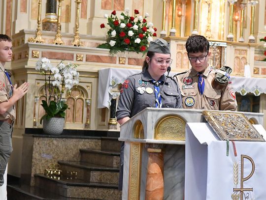 Podczas podniosłej liturgii harcerze pełnili służbę przy ołtarzu. Zaprezentowali czytania: pierwsze z Księgi proroka Ezechiela Amelia Karczmarczyk z 5 Drużyny Harcerek Granie Górskie i drugie z Pierwszego Listu Świętego Pawła Apostoła do Koryntian – Klimek Pawlina z 2 Męskiej Drużyny Harcerzy.