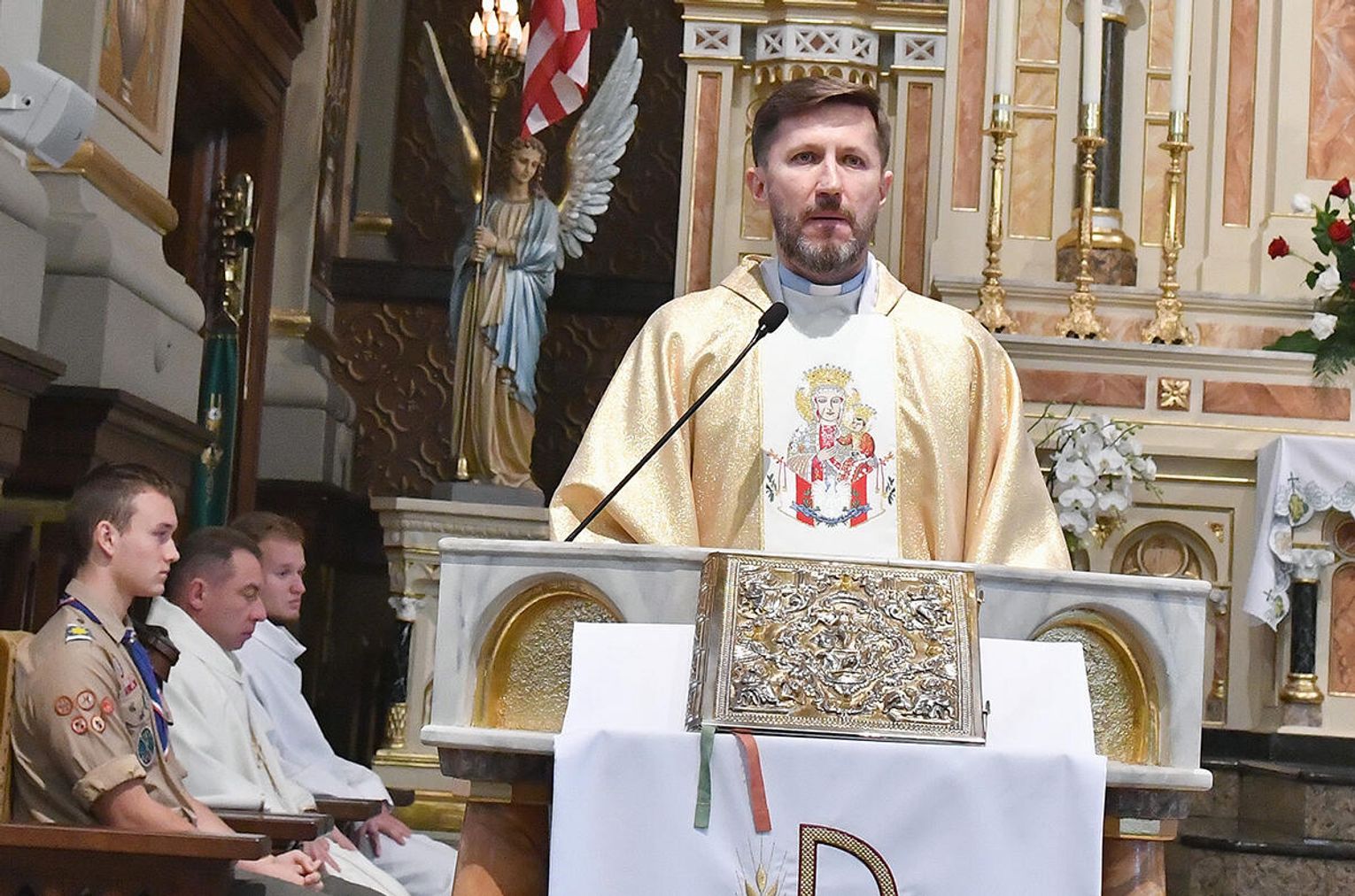 Na rozpoczęcie mszy majestatycznie zabrzmiała „Bogurodzica” w wykonaniu Chóru Collegium Cantorum Polonia. Drogich gości i parafian najserdeczniej powitał ksiądz Robert Będziński SChr – dyrektor Polskiej Misji Duszpasterskiej Kościoła Świętej Trójcy w Chicago.