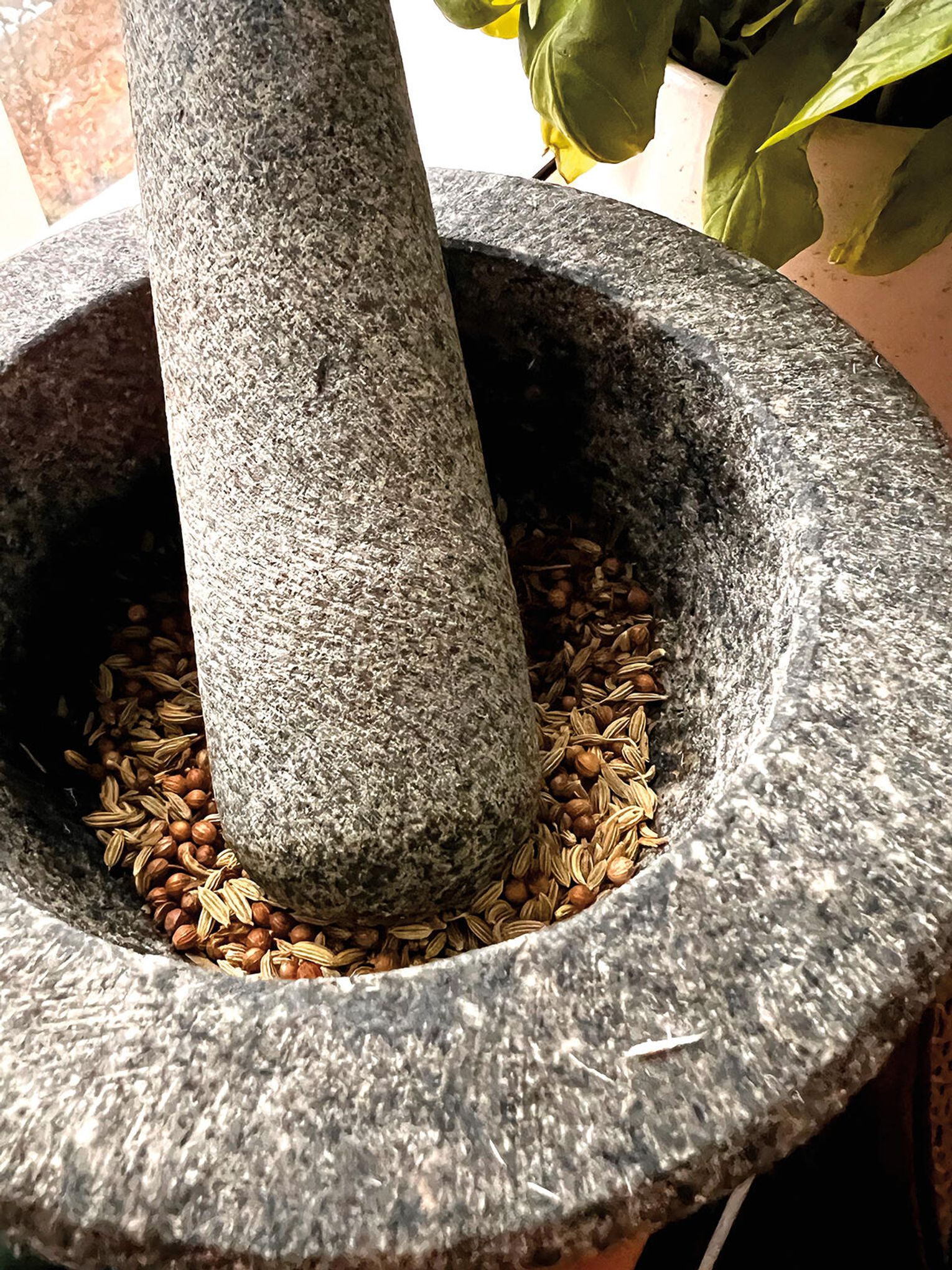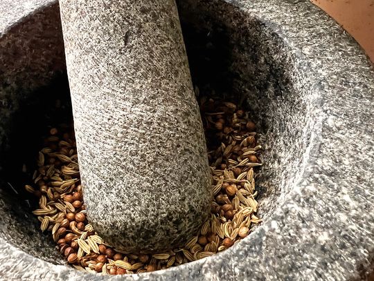 Najpierw przygotuj marynatę: w moździerzu utrzyj nasiona kopru włoskiego i kolendry. Możesz też rozgnieść je wałkiem do ciasta między dwoma arkuszami ręcznika papierowego.