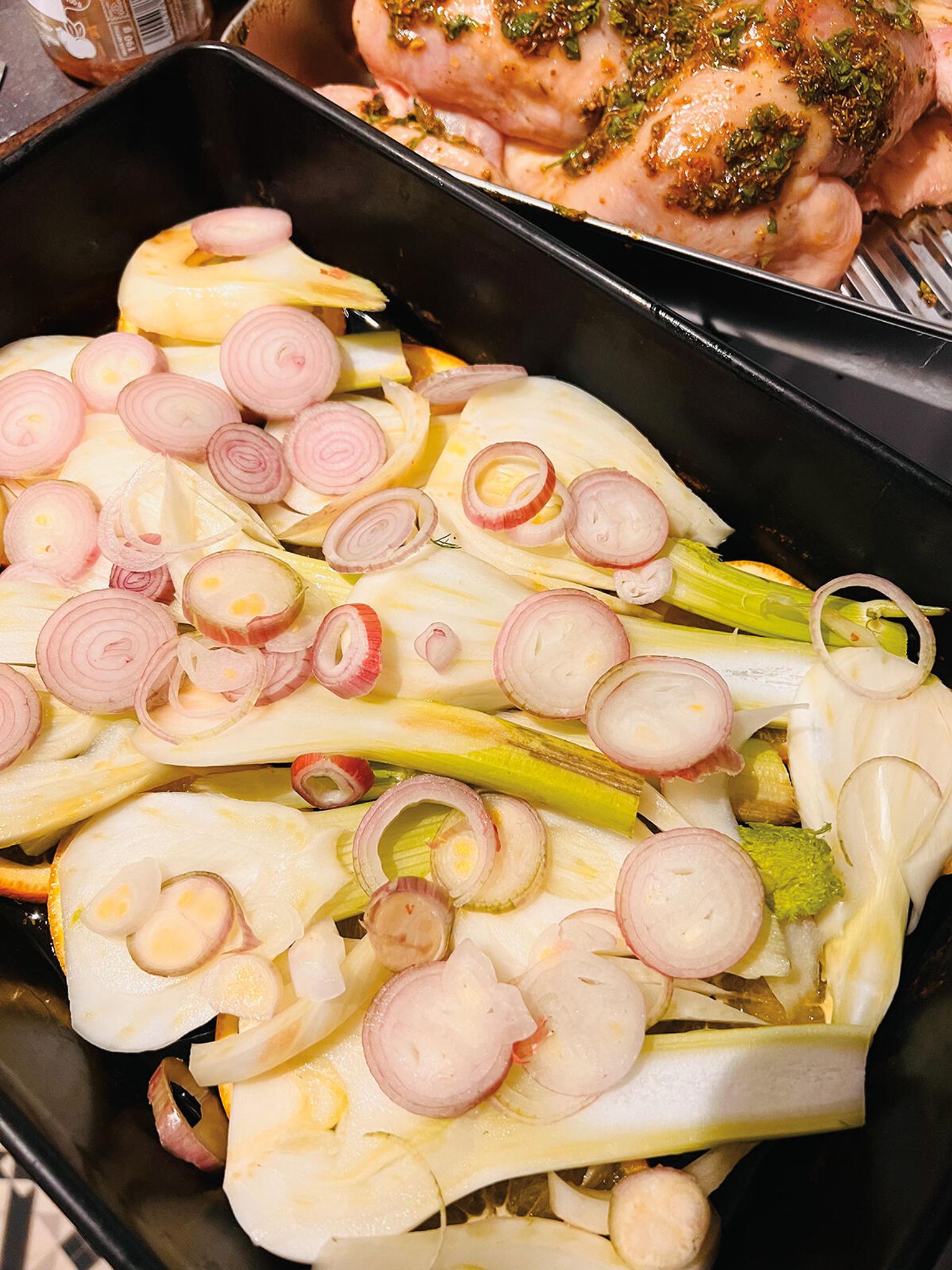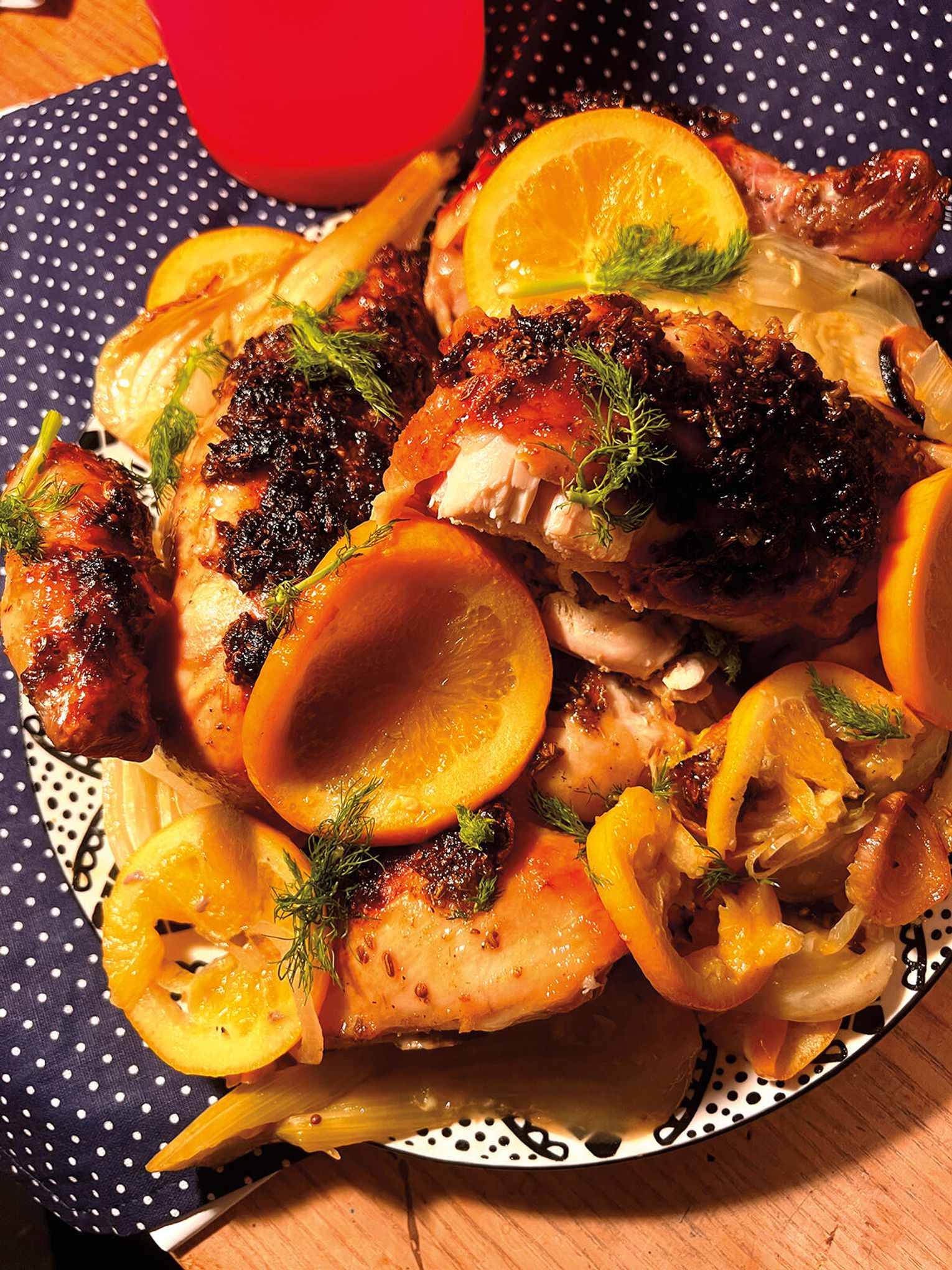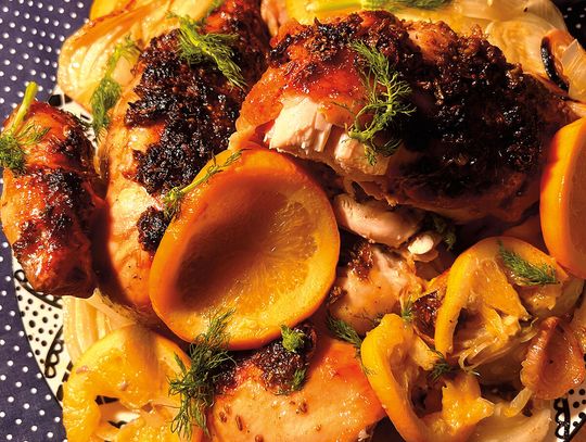 Dziś nie będzie indyka (ani dyniowego latte, spokojnie), ale za to mam dla Was kurczaka pieczonego z pomarańczami i koprem włoskim – danie, które smakuje jak wdzięczność w najprostszej formie. Soczyste mięso, chrupiąca skórka, zapach cytrusów i ziół… idealne, żeby usiąść przy stole, odetchnąć i przypomnieć sobie, że codzienność też może być świętem.