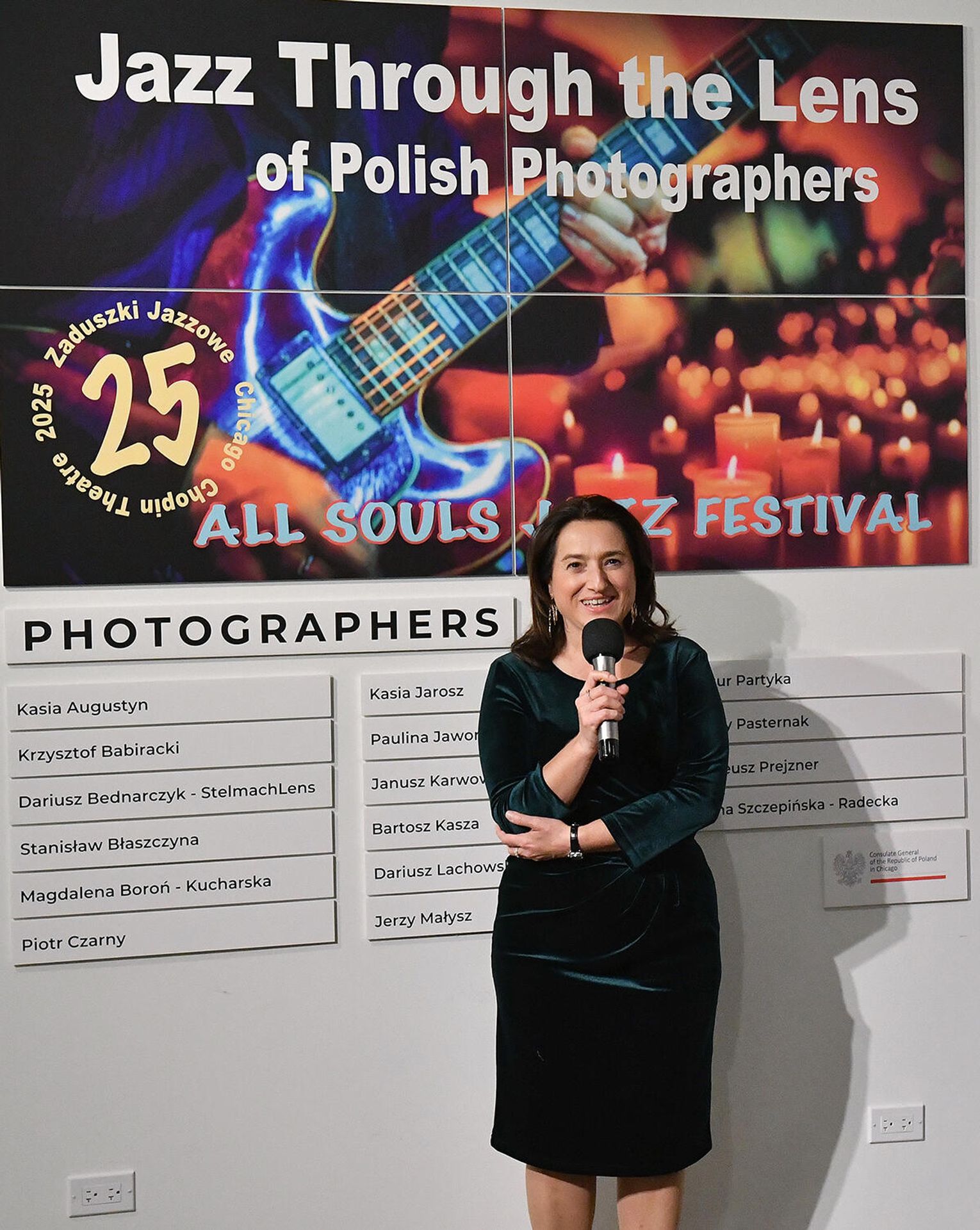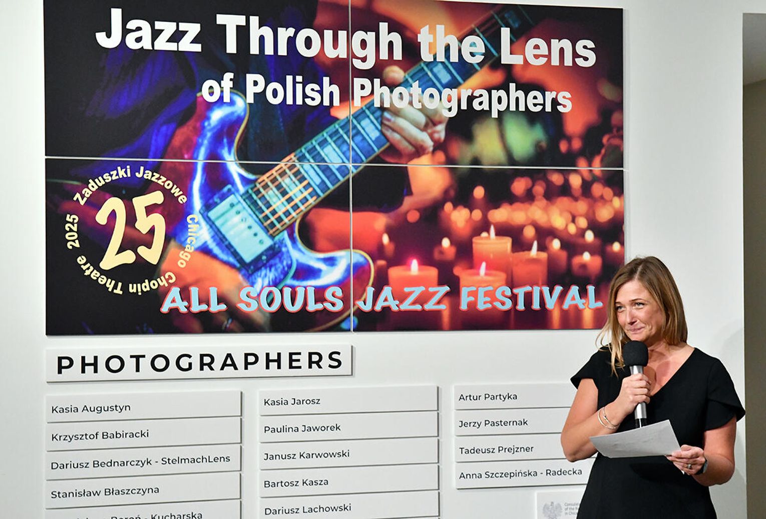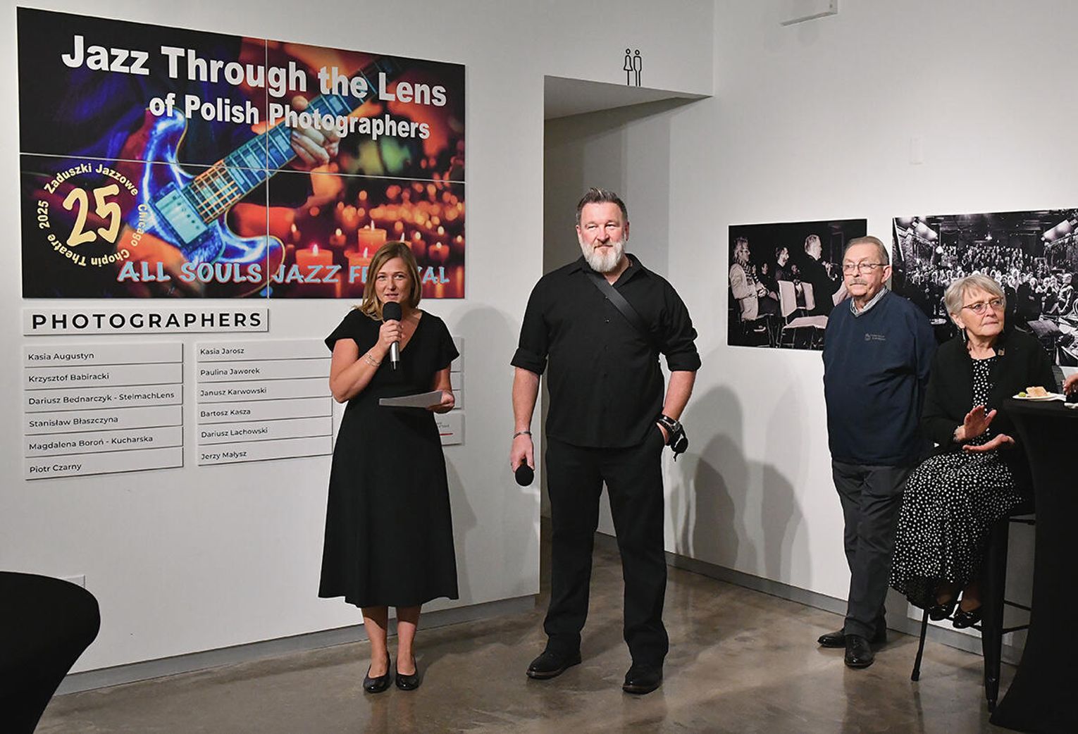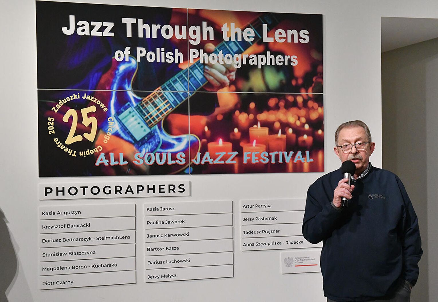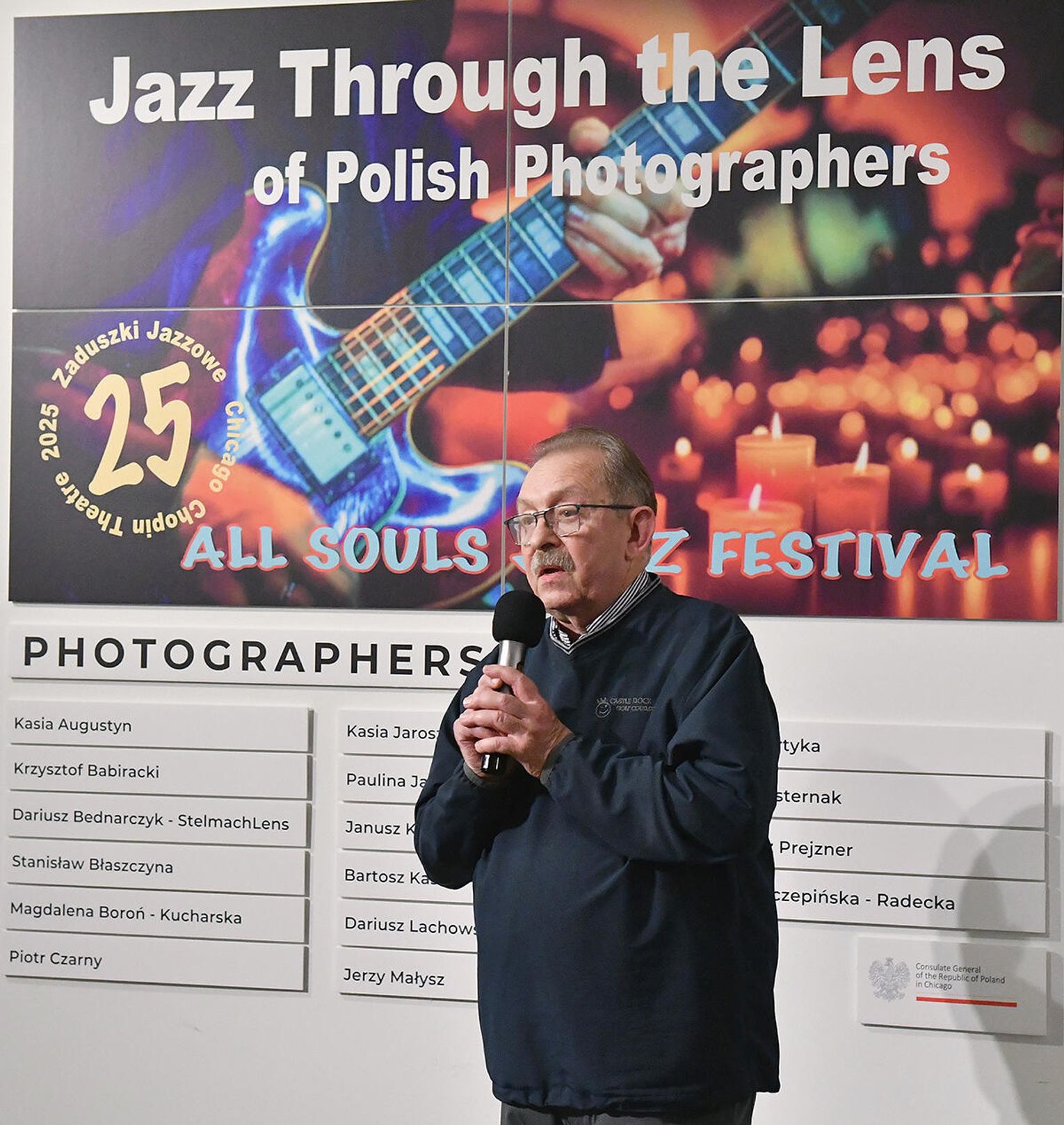 Podczas części oficjalnej otwarcia wystawy 31 października Maria Grzywacz z Dwell Studio serdecznie powitała licznie przybyłych gości, między innymi: wicekonsul Agatę Grochowską, fotografików oraz Tadeusza Żaczka – inicjatora, organizatora i menedżera Festiwalu „Zaduszki Jazzowe”. Opowiedział on czytelnikom naszej gazety historię genezy i ewolucji polonijnego festiwalu jazzowego w Chicago.
