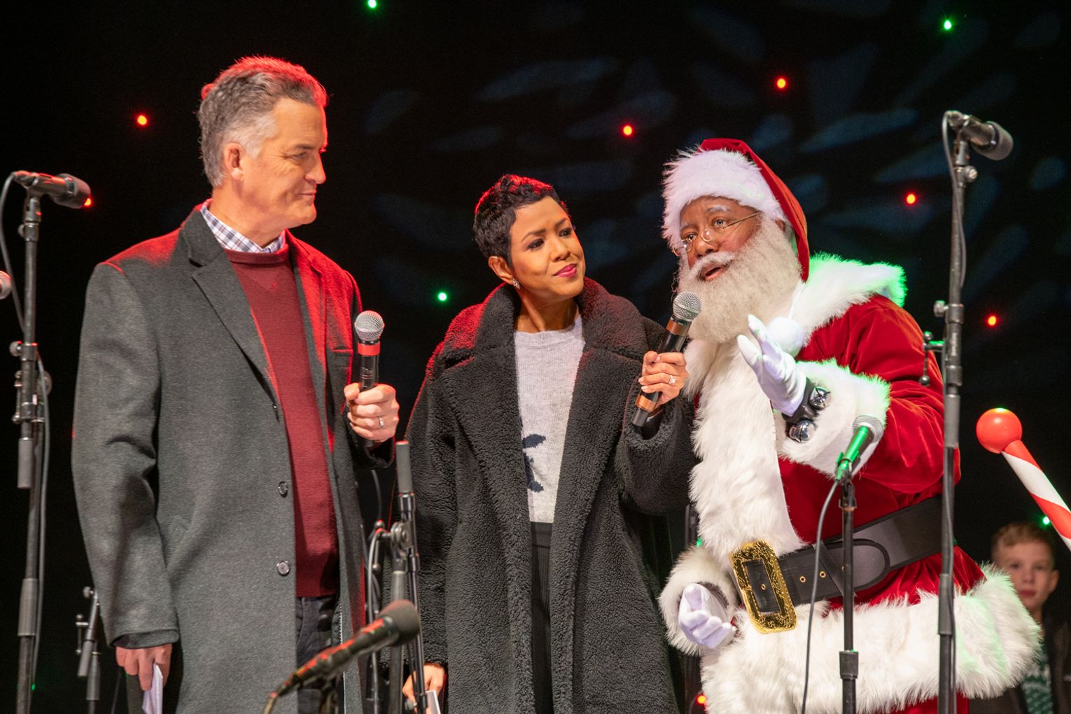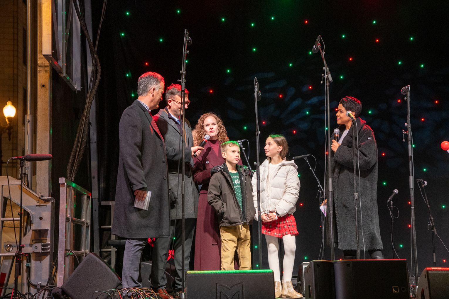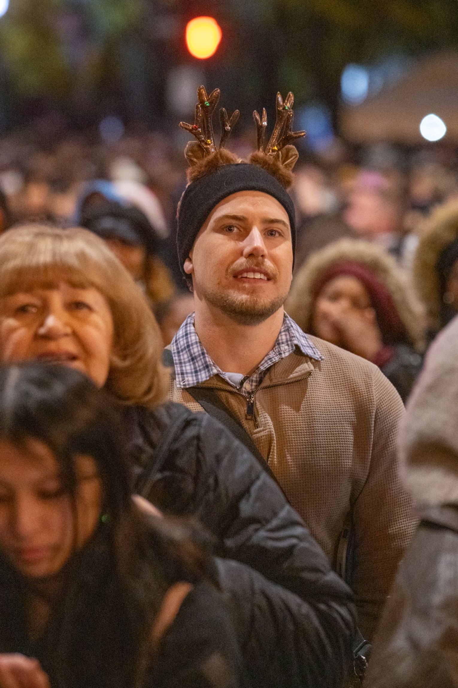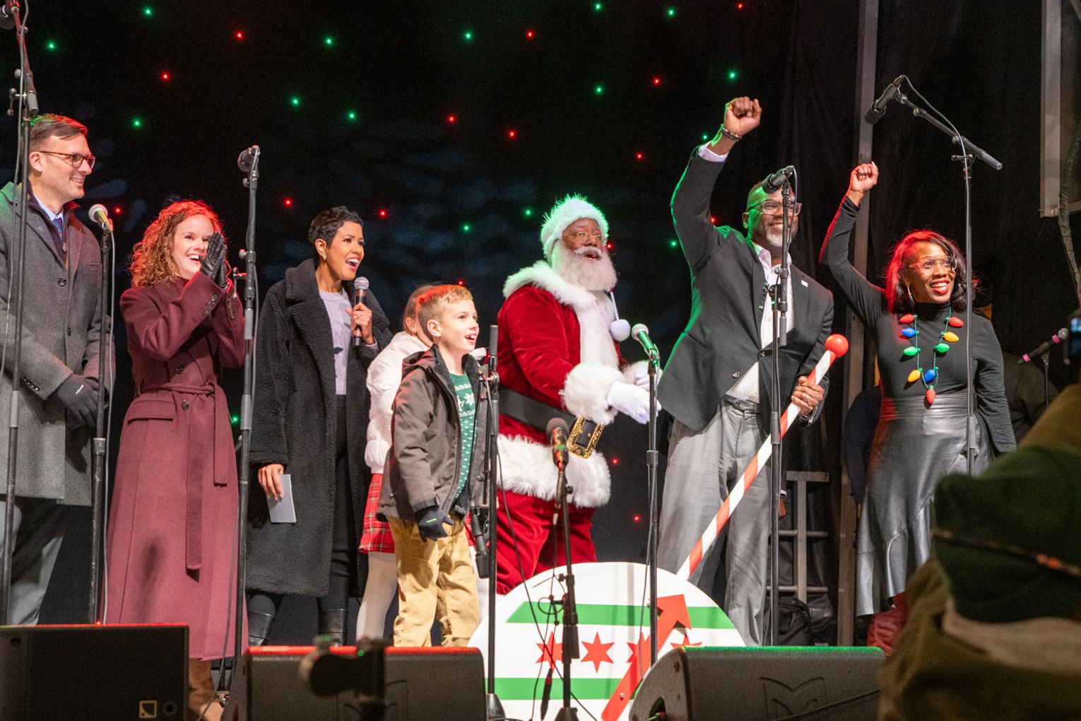 Imprezę prowadzili Irika Sargent i Joe Donlon z CBS 2 Chicago. Po godzinie 6 pm, na scenie zlokalizowanej przed wejściem do Chicago Cultural Center, pojawił się burmistrz Chicago Brandon Johnson i w towarzystwie św. Mikołaja i rodziny Mason zapalił lampki na choince. Towarzyszył temu krótki pokaz sztucznych ognii.