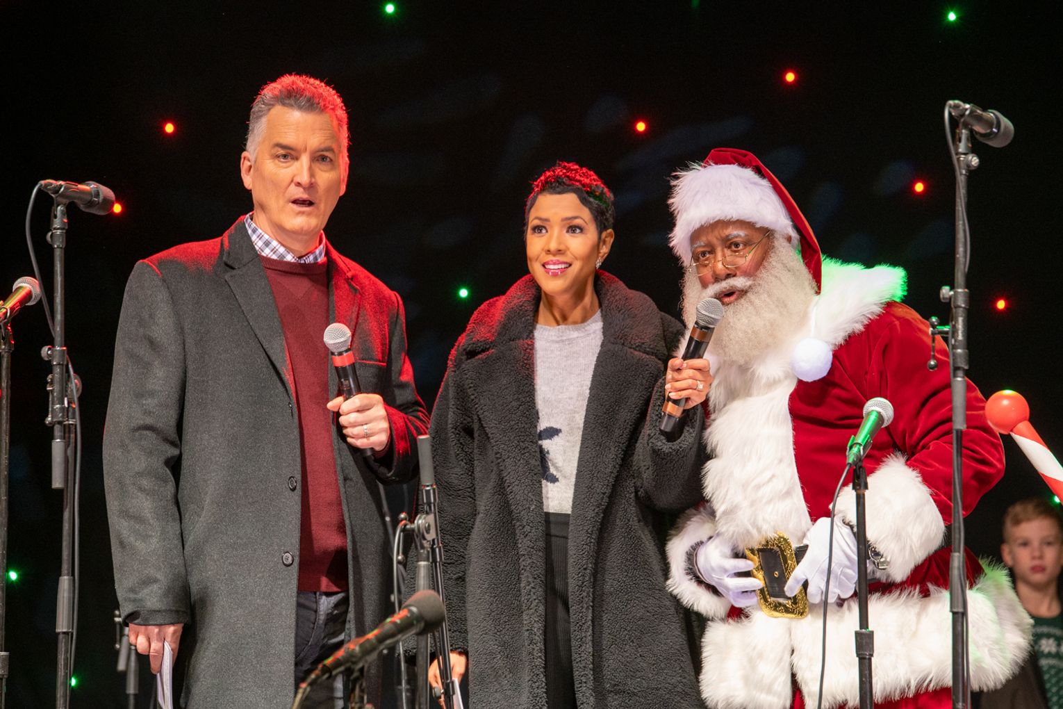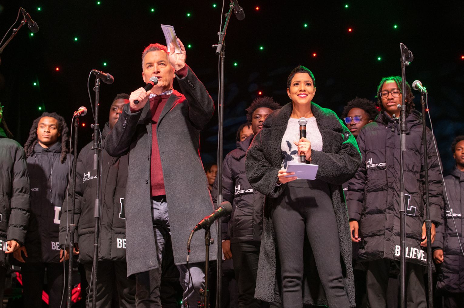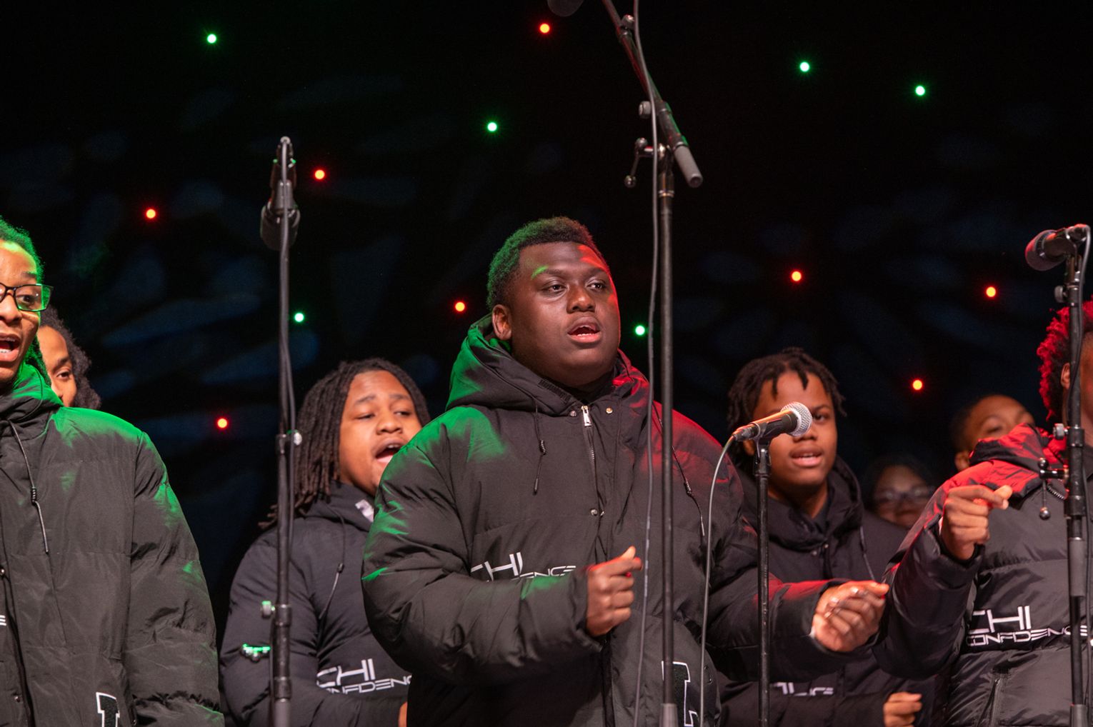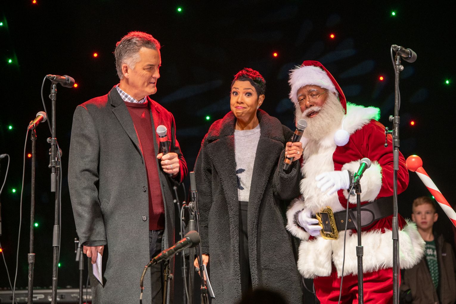 Imprezę prowadzili Irika Sargent i Joe Donlon z CBS 2 Chicago. Po godzinie 6 pm, na scenie zlokalizowanej przed wejściem do Chicago Cultural Center, pojawił się burmistrz Chicago Brandon Johnson i w towarzystwie św. Mikołaja i rodziny Mason zapalił lampki na choince. Towarzyszył temu krótki pokaz sztucznych ognii.
