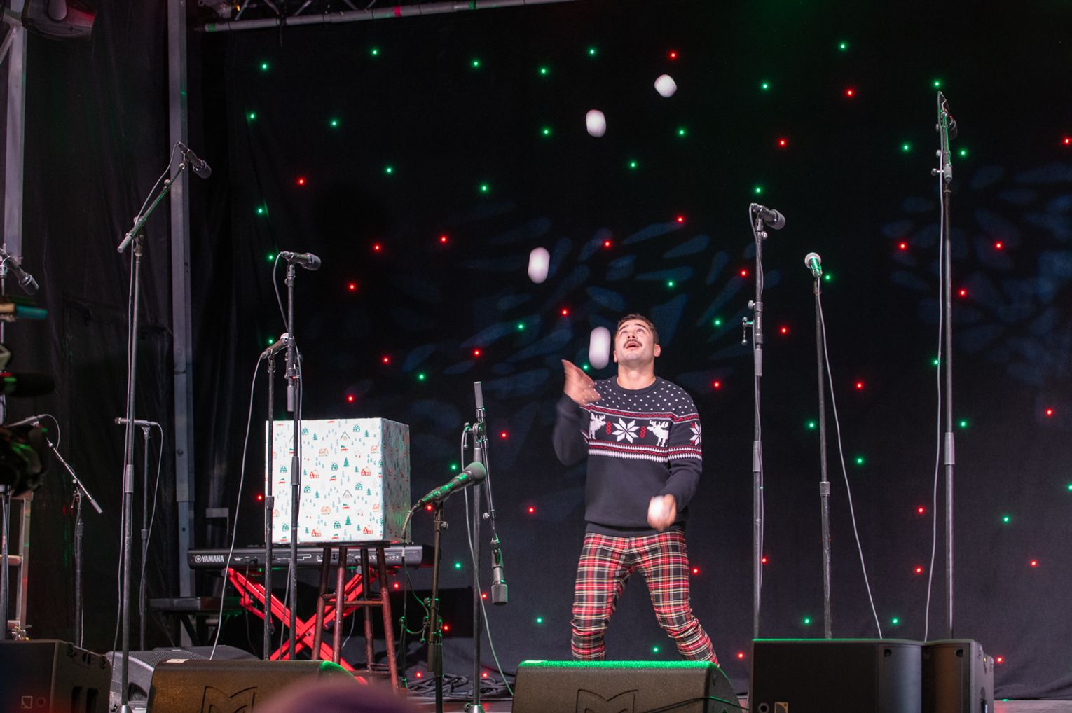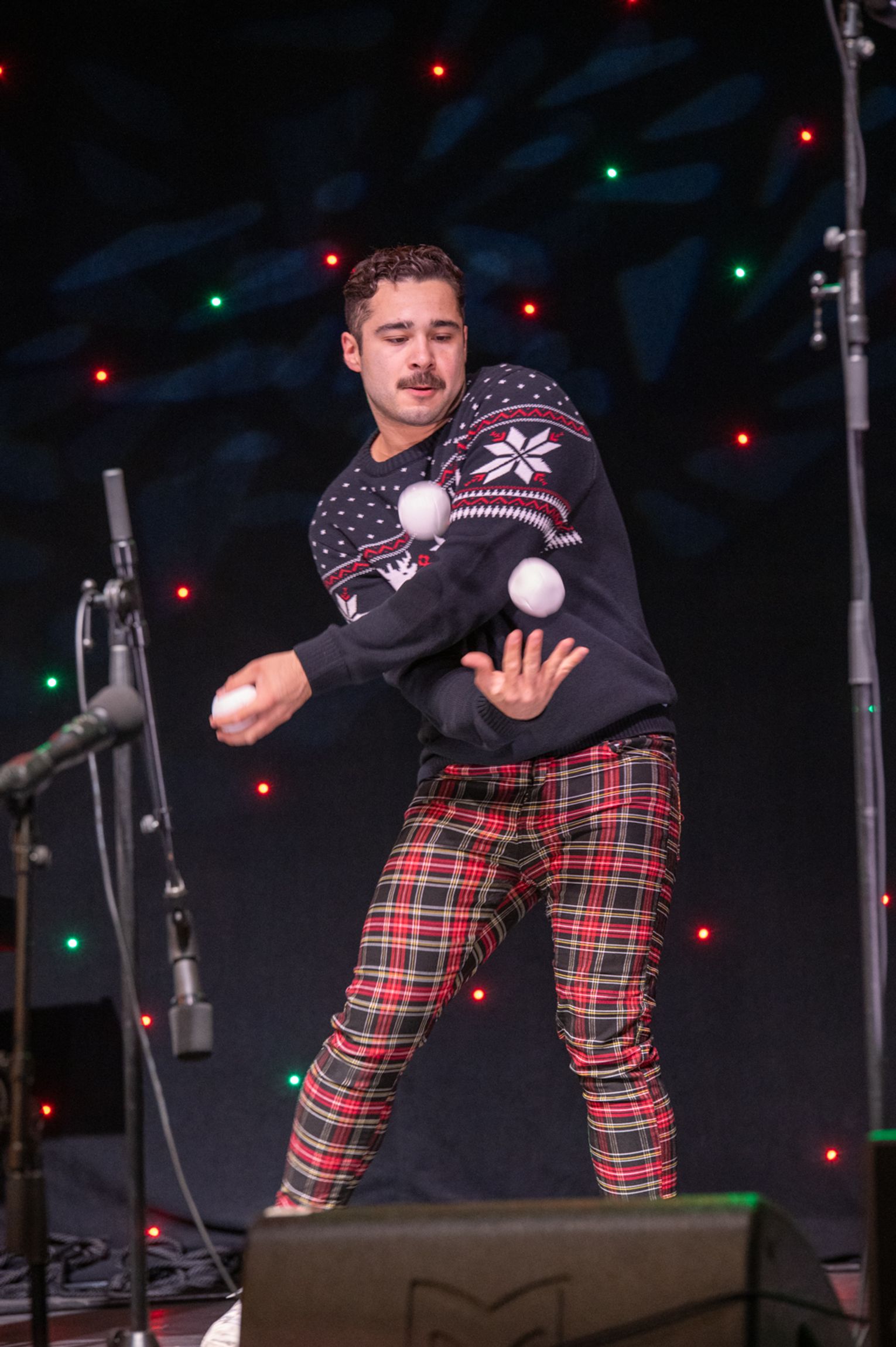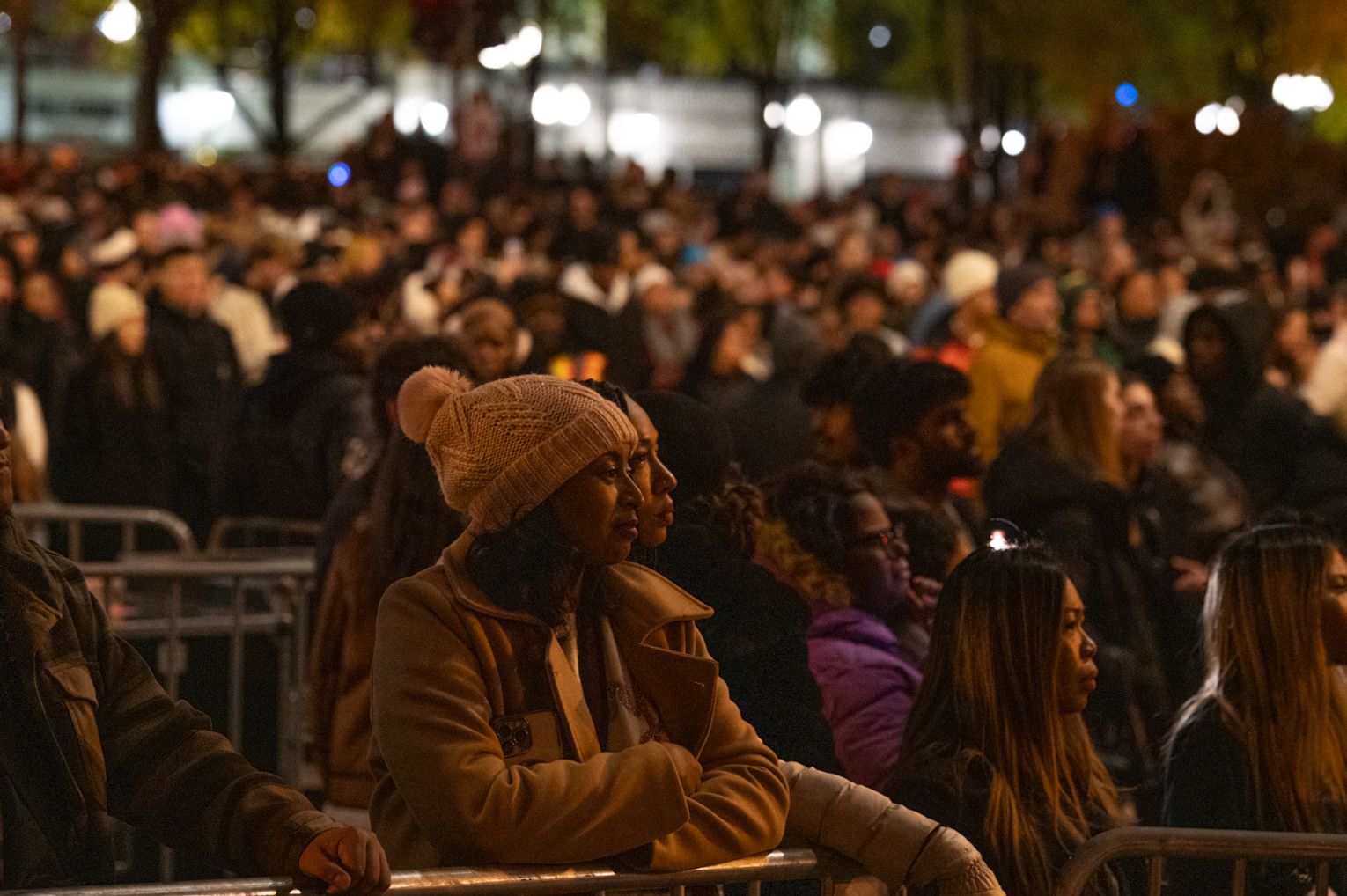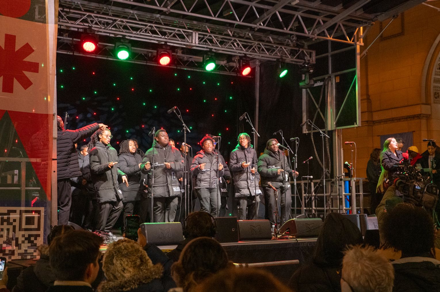 Imprezę prowadzili Irika Sargent i Joe Donlon z CBS 2 Chicago. Po godzinie 6 pm, na scenie zlokalizowanej przed wejściem do Chicago Cultural Center, pojawił się burmistrz Chicago Brandon Johnson i w towarzystwie św. Mikołaja i rodziny Mason zapalił lampki na choince. Towarzyszył temu krótki pokaz sztucznych ognii.
