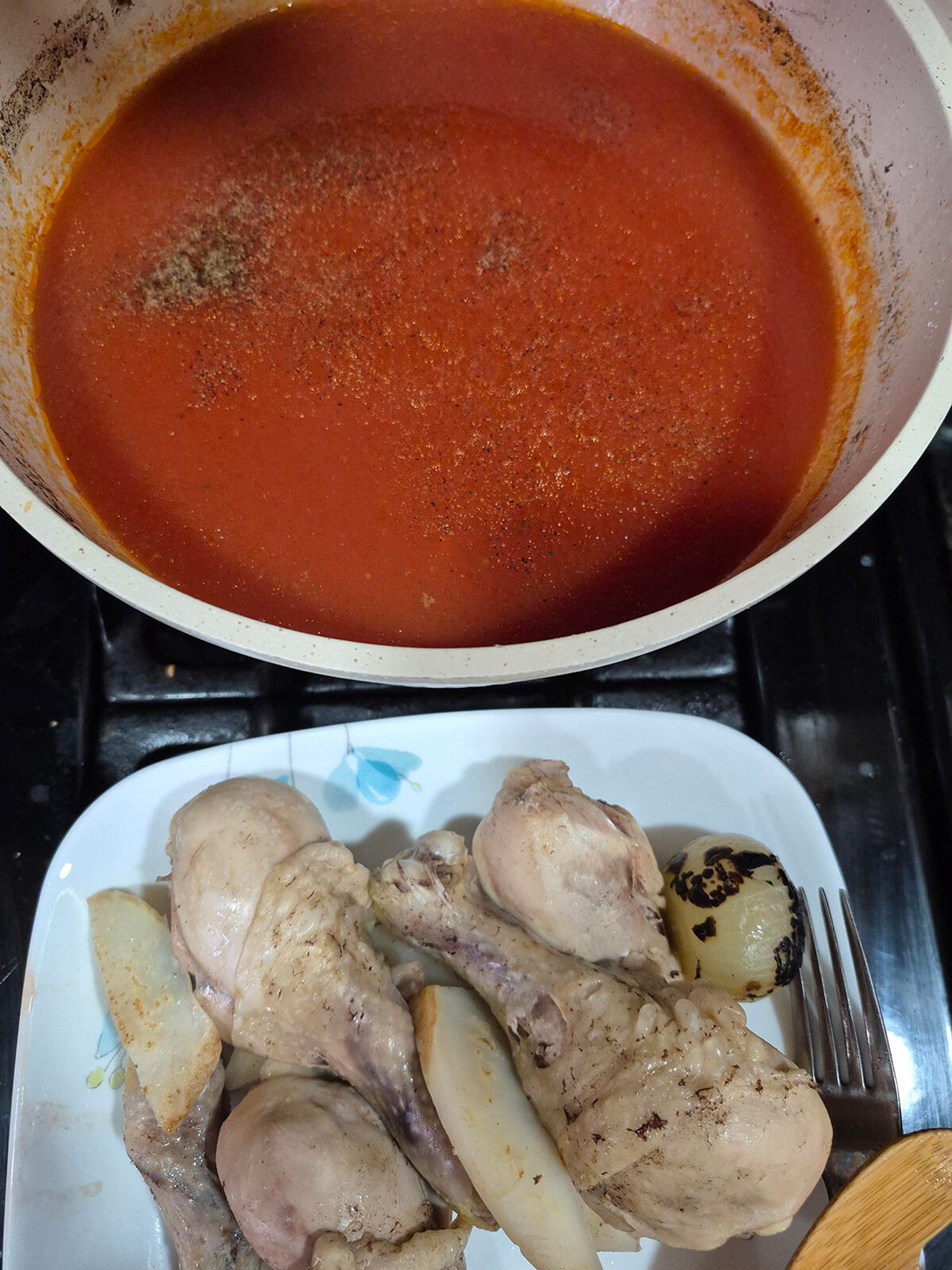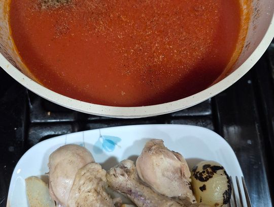 Posól lekko na start. Gotuj na małym ogniu 40-50 minut, aż mięso będzie miękkie. Wyjmij pałki, oddziel mięso od kości, pokrój lub porwij na kawałki i odłóż.