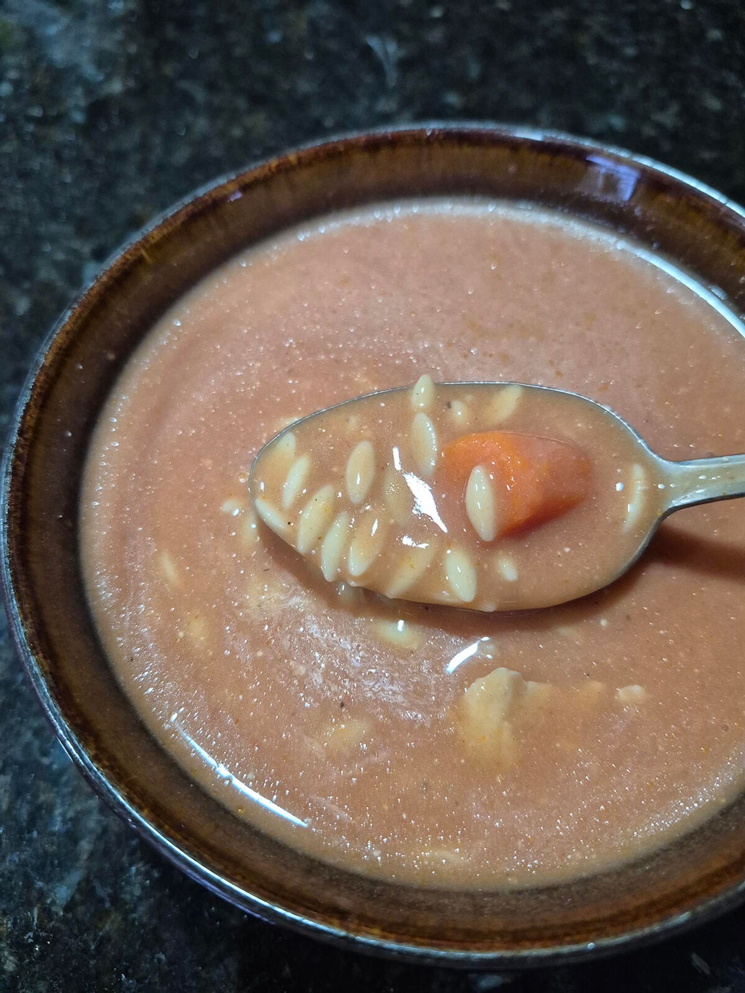I właśnie wtedy pojawia się ona – klasyczna, domowa pomidorówka, tym razem z delikatnym makaronem orzo. To takie danie, które nie wymaga od nas wysiłku, a smakuje jak ciepły, miękki koc w misce. Rozgrzewa, syci, uspokaja i daje chwilę oddechu pomiędzy jednym świątecznym szaleństwem a drugim. Idealna na spokojny, leniwy dzień, kiedy chcemy wrócić do czegoś prostego i domowego, zanim zacznie się wielkie pieczenie.