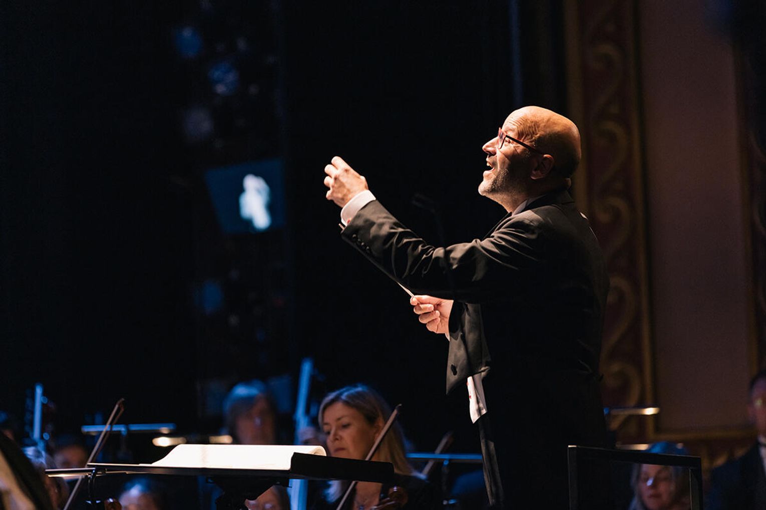 Choć wykonanie miało charakter koncertowy, nie zabrakło wrażeń wizualnych. Projekcje inspirowane sztuką średniowieczną, iluminacje manuskryptów i geometryczne ornamenty nadawały utworowi dodatkowej głębi.