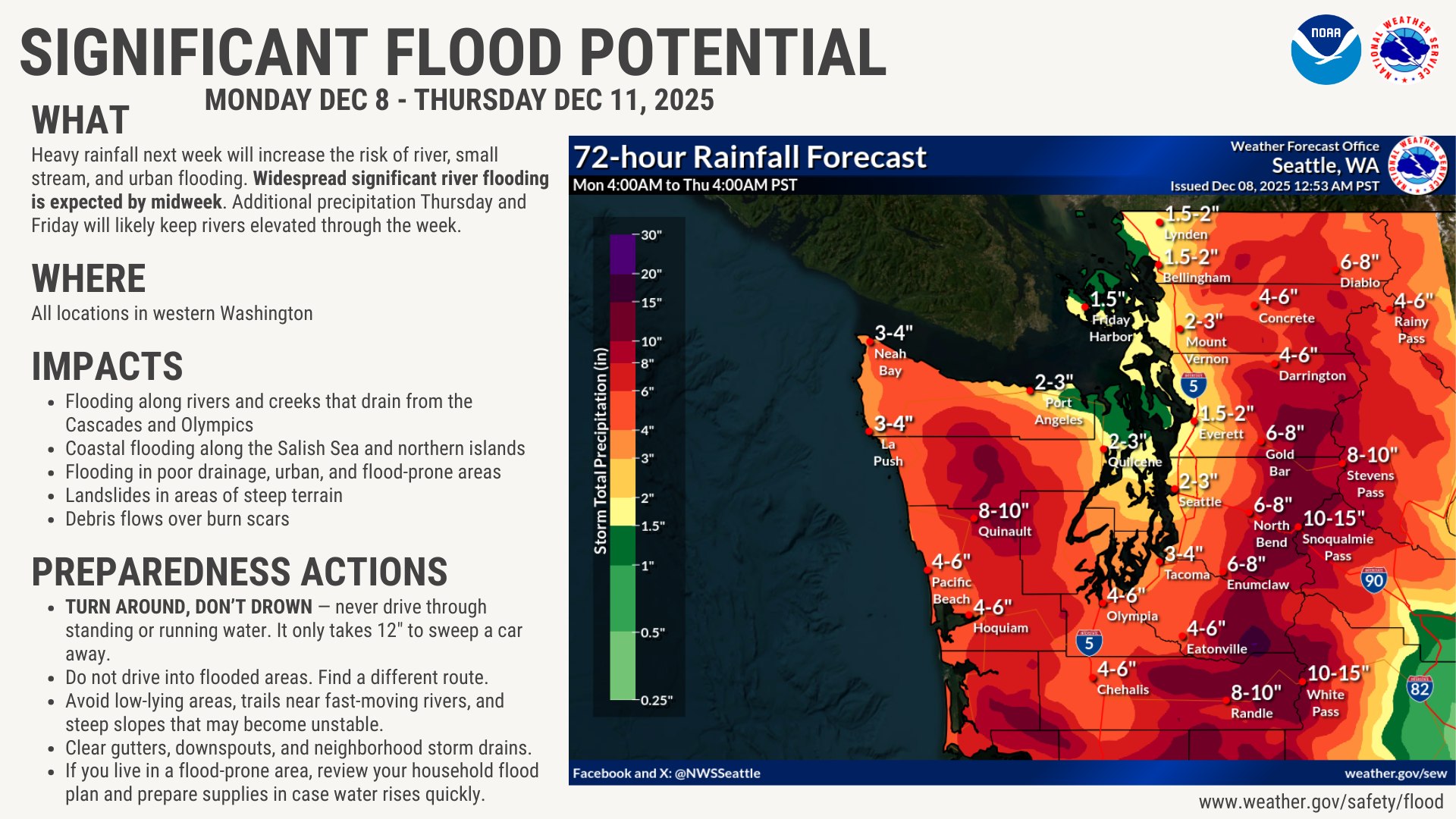Największe ryzyko dotyczy obszarów od miasta Mount Vernon przez które przepływa największa rzeka regionu, Skagit, po Everett i Redmond.