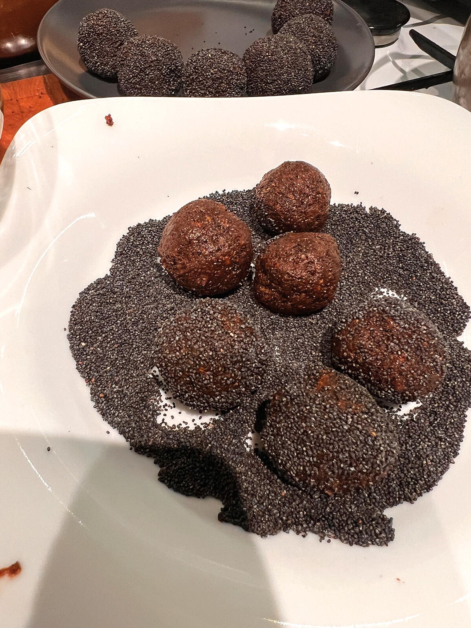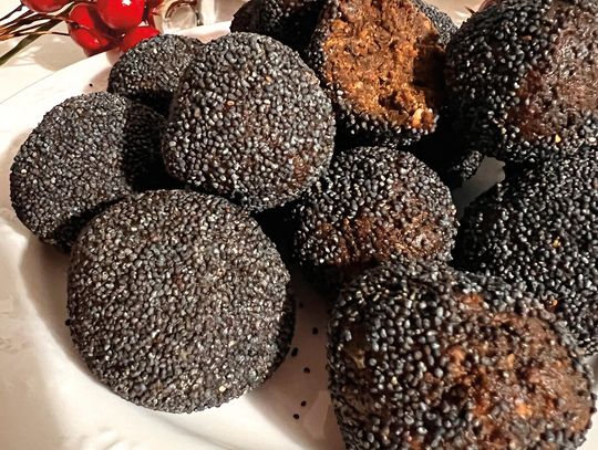 Formuj kulki wielkości orzecha włoskiego i od razu obtaczaj je w odłożonym maku, zanim masa zacznie wysychać.