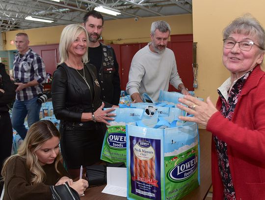 – Nad przygotowywaniem paczek pracowała liczna grupa naszych wolontariuszy. Dzięki hojności sponsorów przygotowaliśmy 325 paczek. Zawierają liczne produkty żywnościowe, słodkości, które można skonsumować w okresie świąt lub później – powiedziała Beata Rembielnicka z grupy motocyklowej Rajd Katyński, której członkowie wraz z koleżankami i kolegami z innych klubów czuwali nad ich wydawaniem.