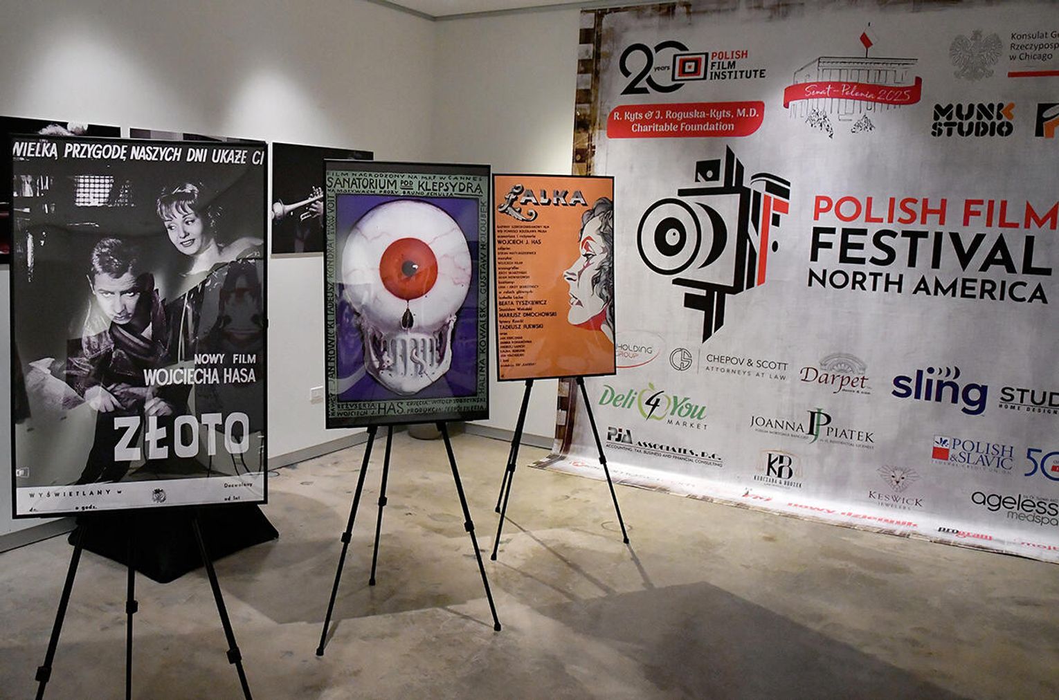 Na plakatach oglądający mogli odnaleźć wiele, cennych informacji o aktorach, dacie premiery, nagrodach lub festiwalach. Z plakatami korelował potężny afisz Polskiego Festiwalu Filmowego w Ameryce Północnej umieszczony na ścianie głównej Studia Dwell, podkreślający temat artystycznego wydarzenia.