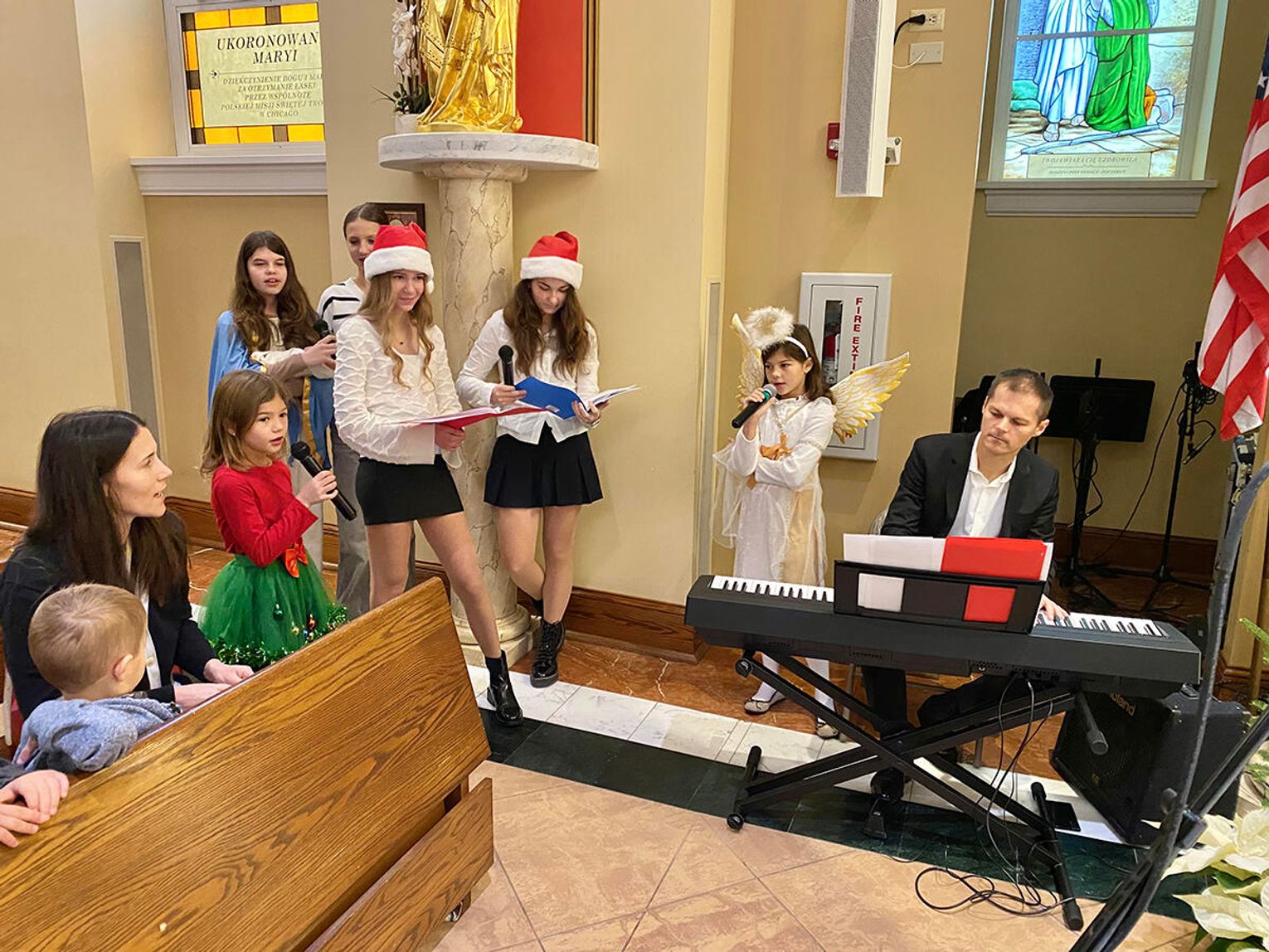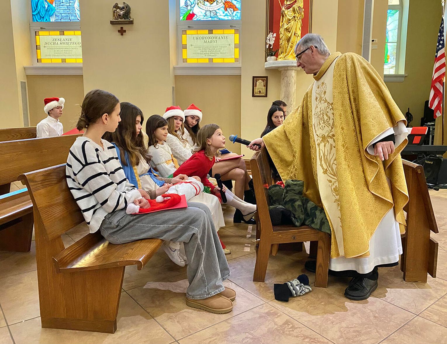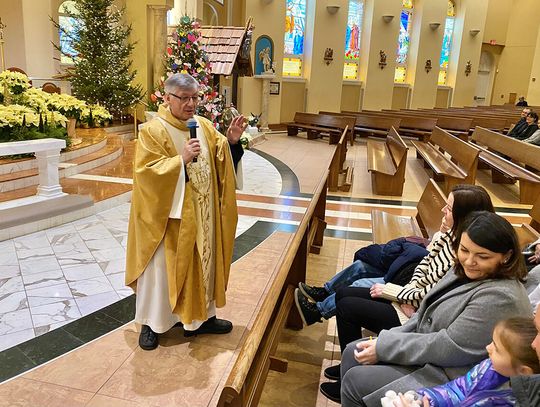 Noworoczną mszę świętą w intencji uczniów Polskiej Szkoły im. Czesława Miłosza w Kościele pw. Miłosierdzia Bożego w Lombard, gdzie dzieci przyjmują sakramenty święte, odprawił ksiądz proboszcz parafii Andrzej Maślejak SChr.