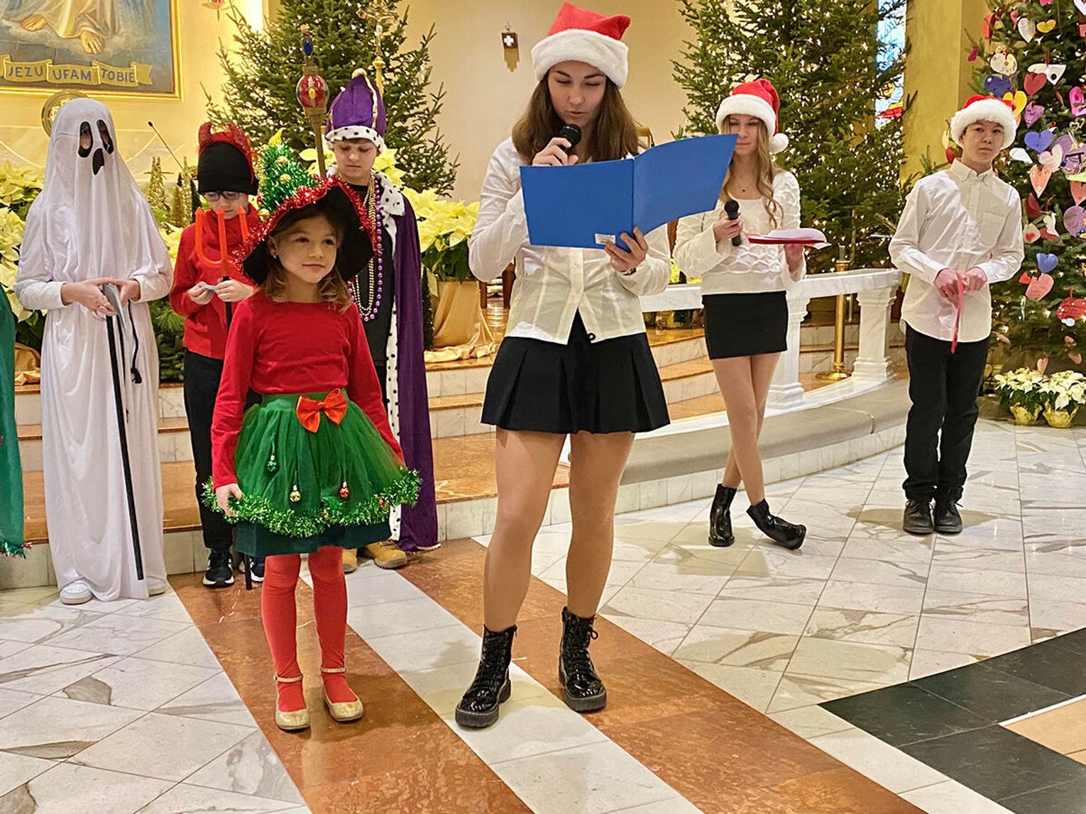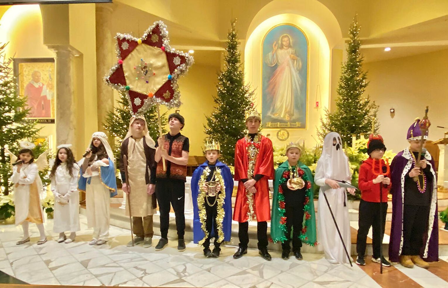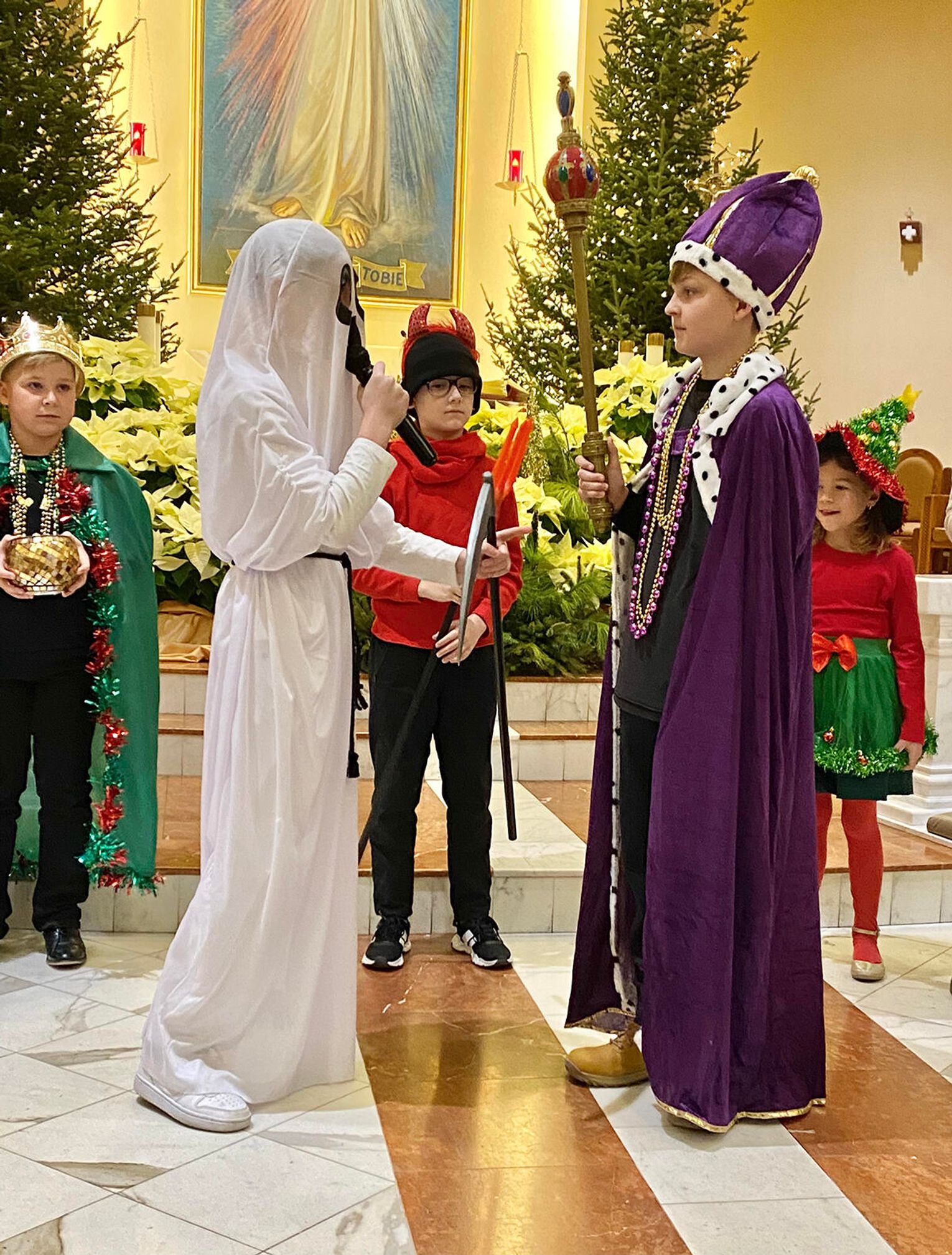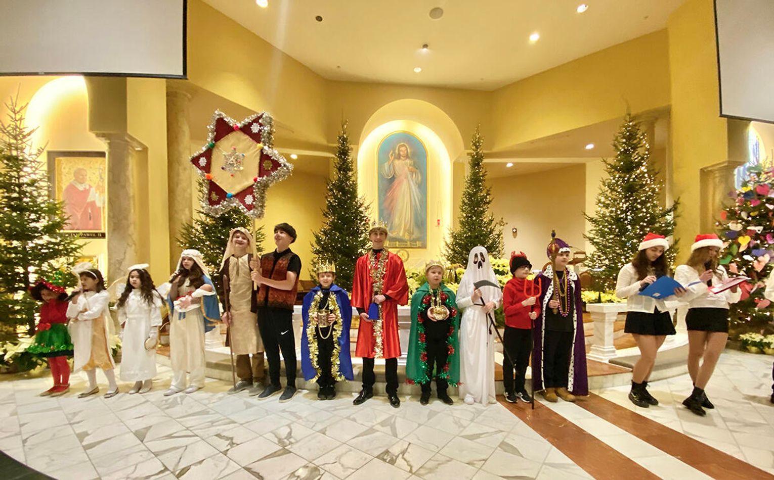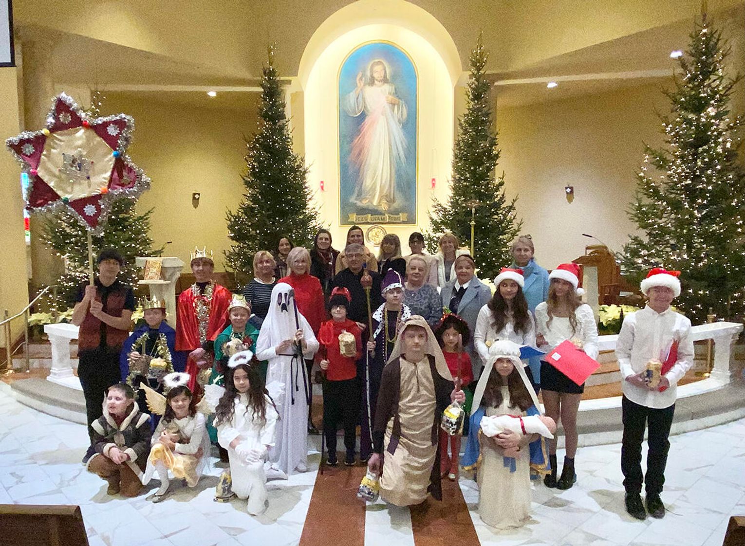 Po zakończeniu mszy świętej wierni zostali zaproszeni na jasełka przygotowane przez uczniów klas sobotnich szkoły. Przedstawienie od pierwszych chwil przyciągnęło uwagę publiczności i stworzyło ciepłą, świąteczną atmosferę.