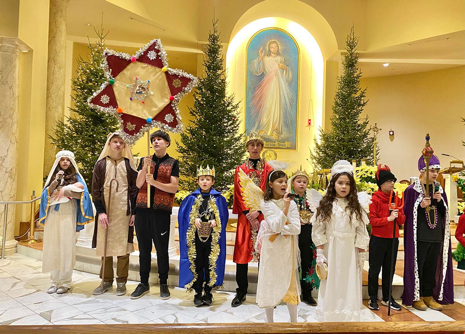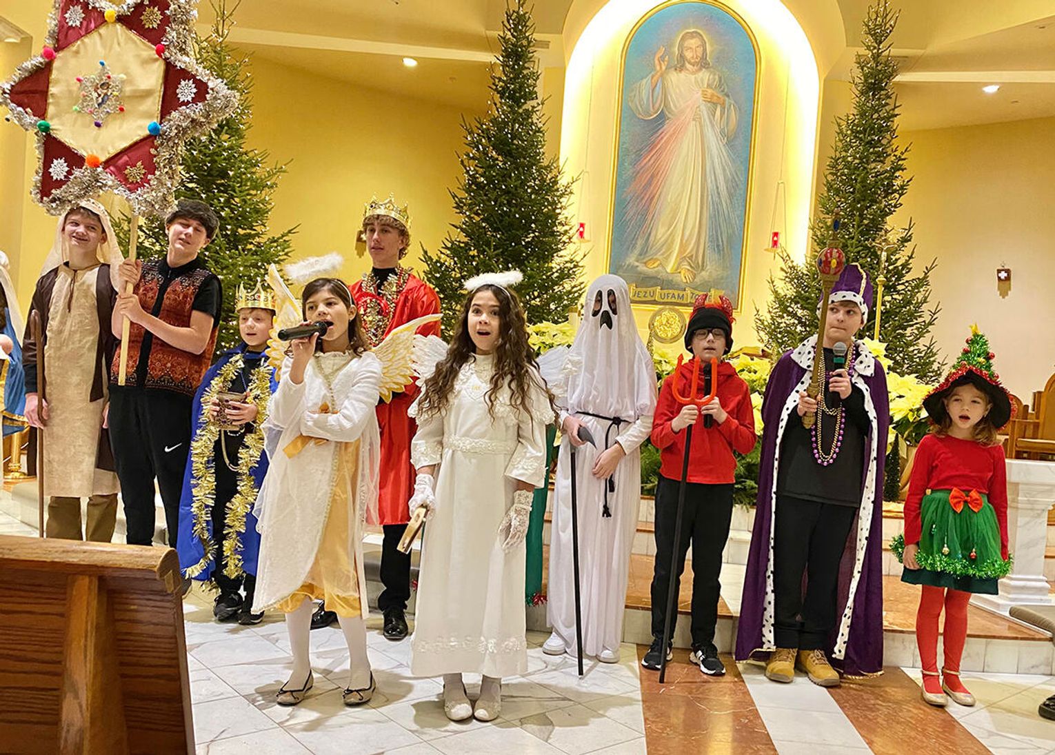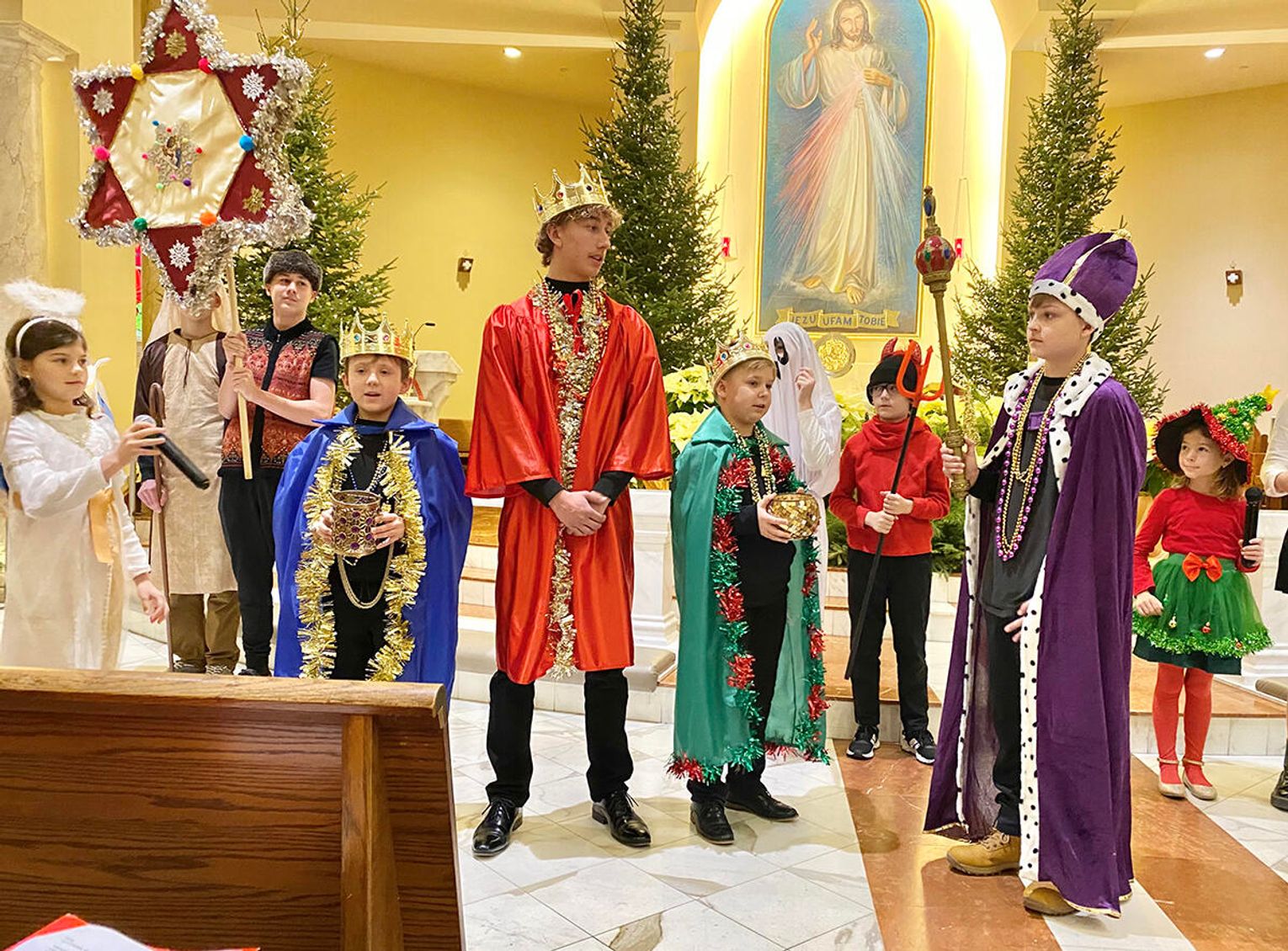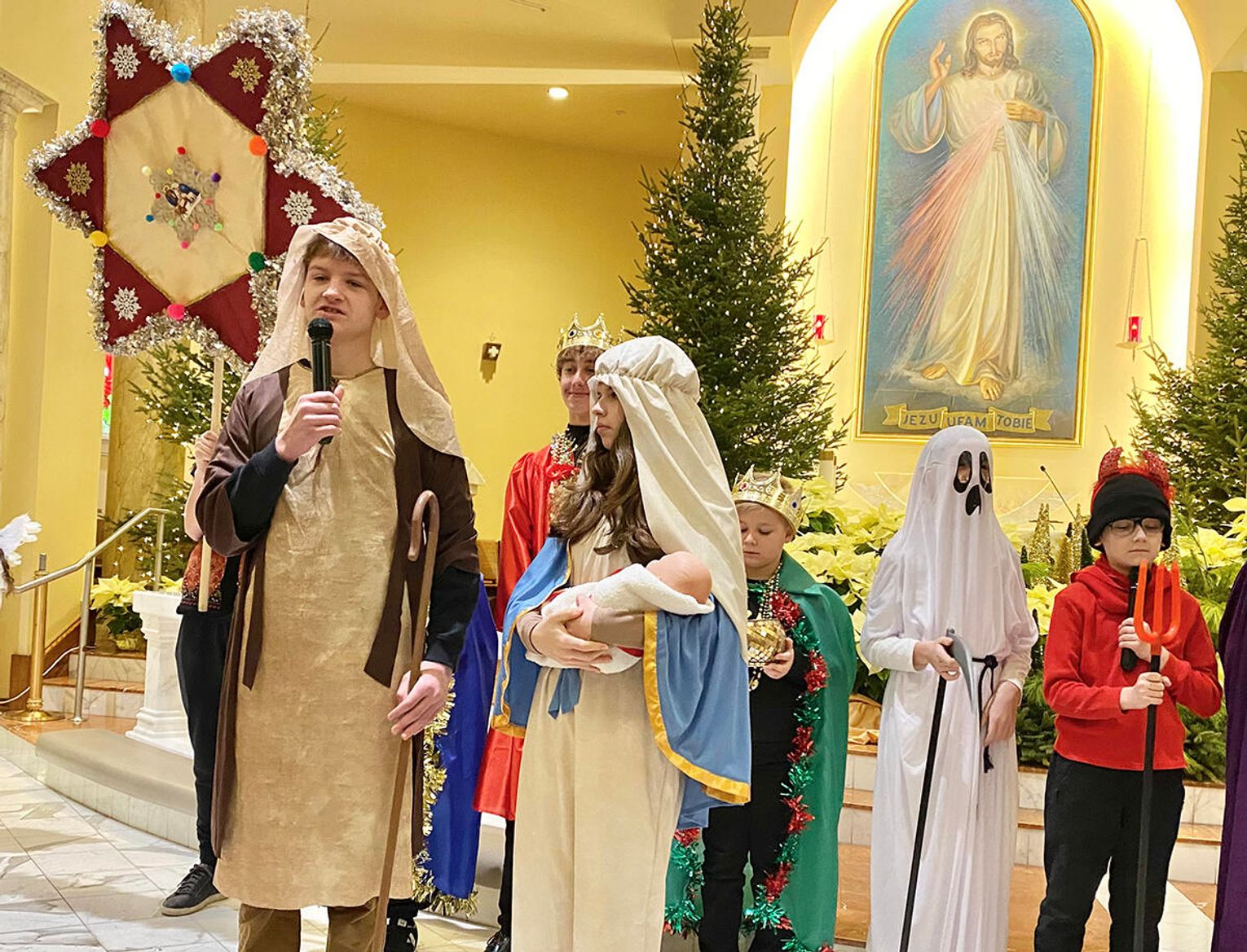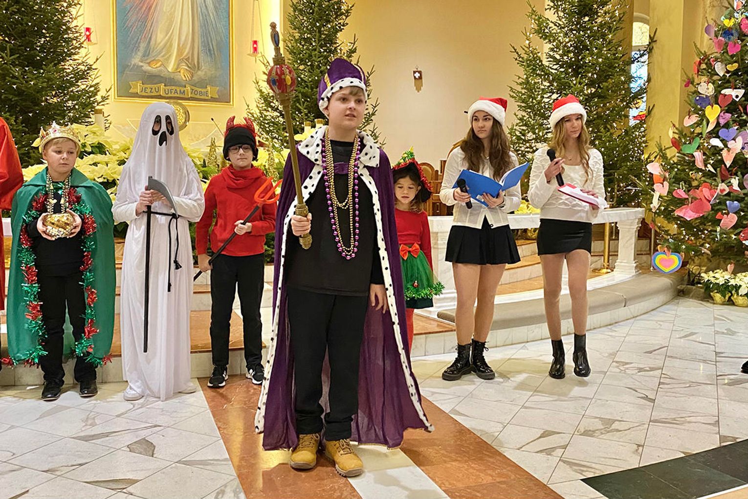 Po zakończeniu mszy świętej wierni zostali zaproszeni na jasełka przygotowane przez uczniów klas sobotnich szkoły. Przedstawienie od pierwszych chwil przyciągnęło uwagę publiczności i stworzyło ciepłą, świąteczną atmosferę.