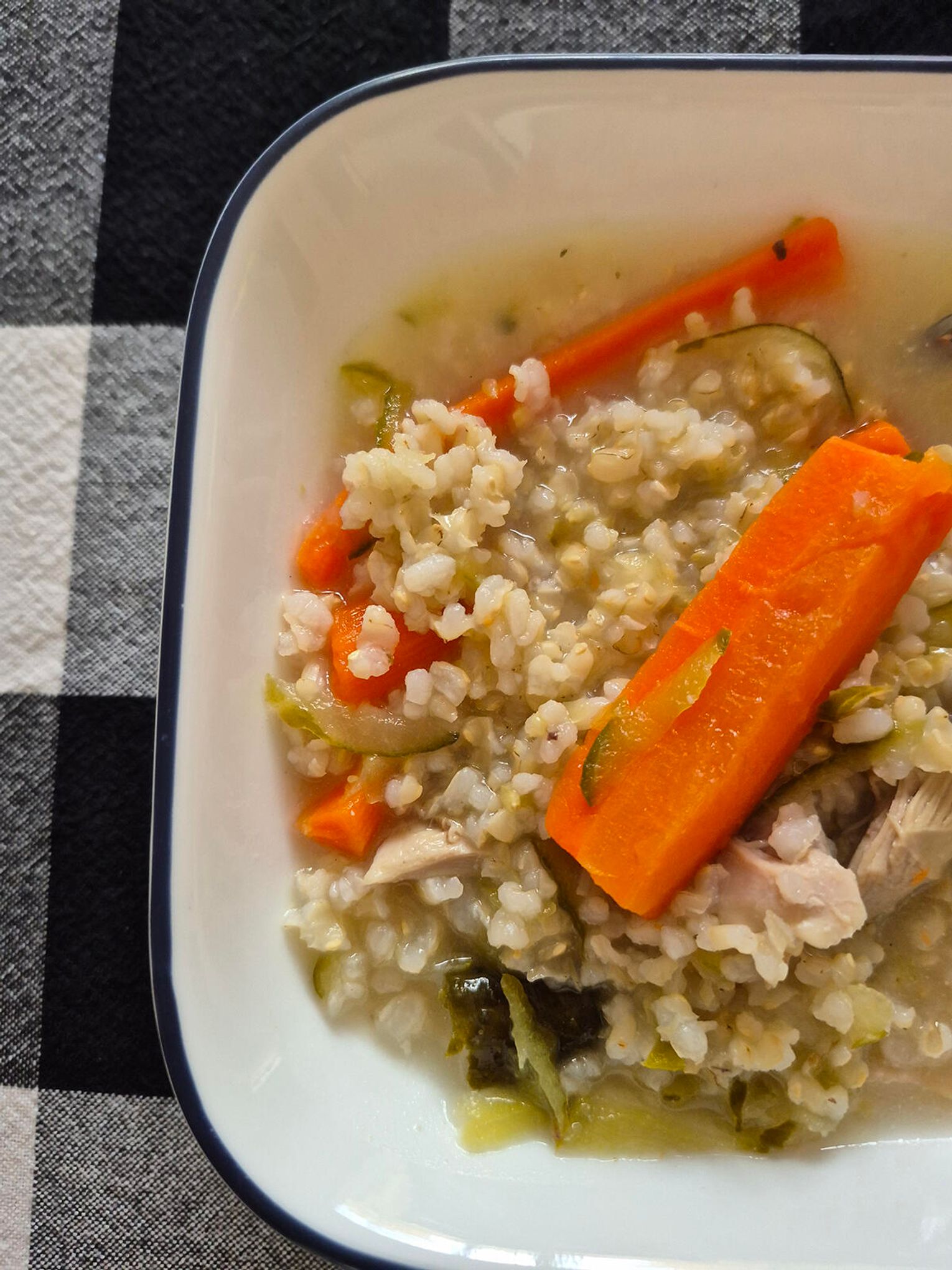 Zupa ogórkowa to jeden z tych klasyków, do których wracam szczególnie zimą. Gotowana na pałkach z kurczaka, z dodatkiem marchewki i ryżu zamiast ziemniaków, jest delikatna, a jednocześnie sycąca. Idealna dla całej rodziny – także dla dzieci. Lekko kwaśna, aromatyczna, taka „jak u mamy”, świetnie sprawdza się zarówno na szybki obiad w tygodniu, jak i wtedy, gdy chcemy się po prostu rozgrzać po długim, zimnym dniu.