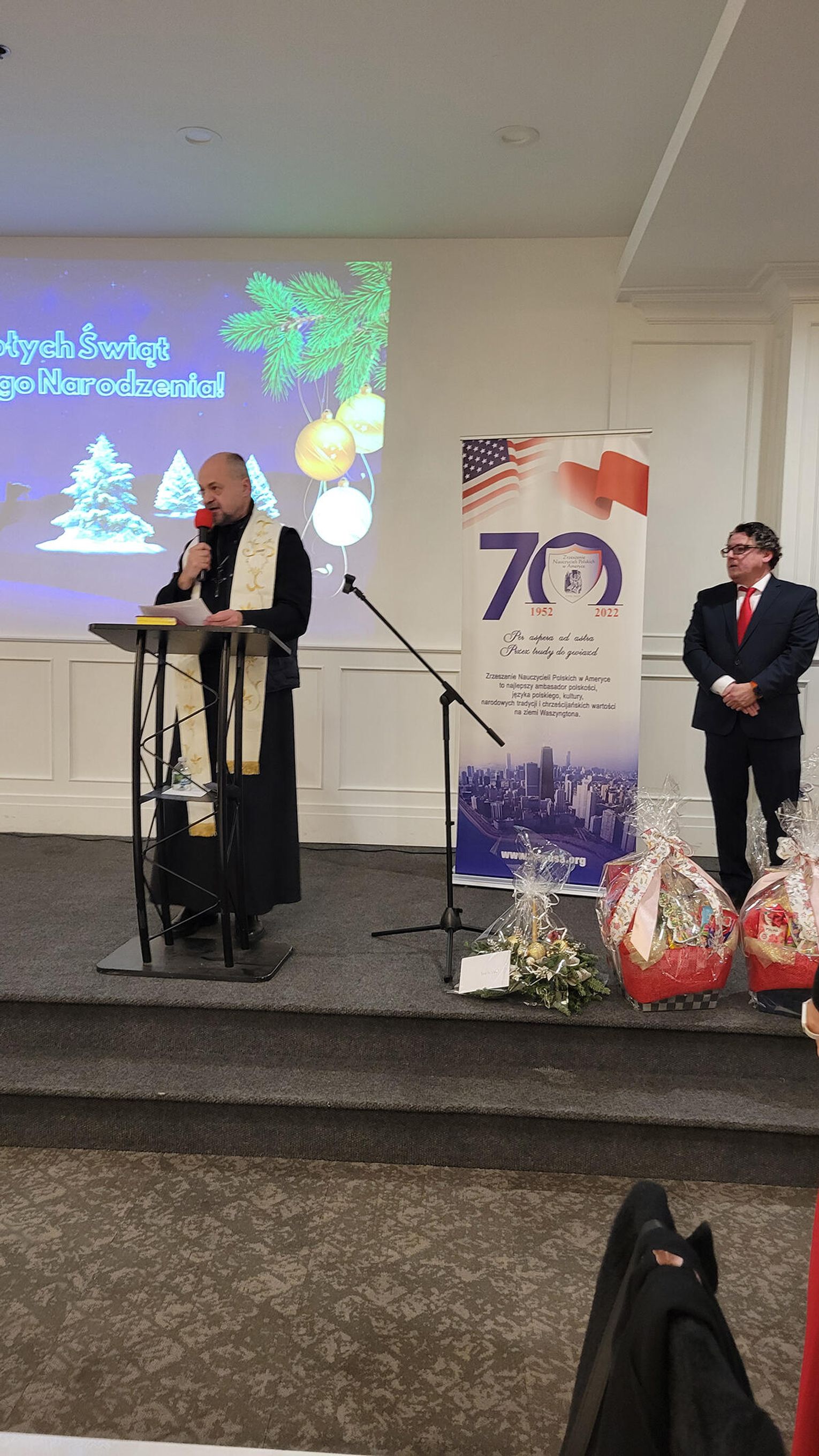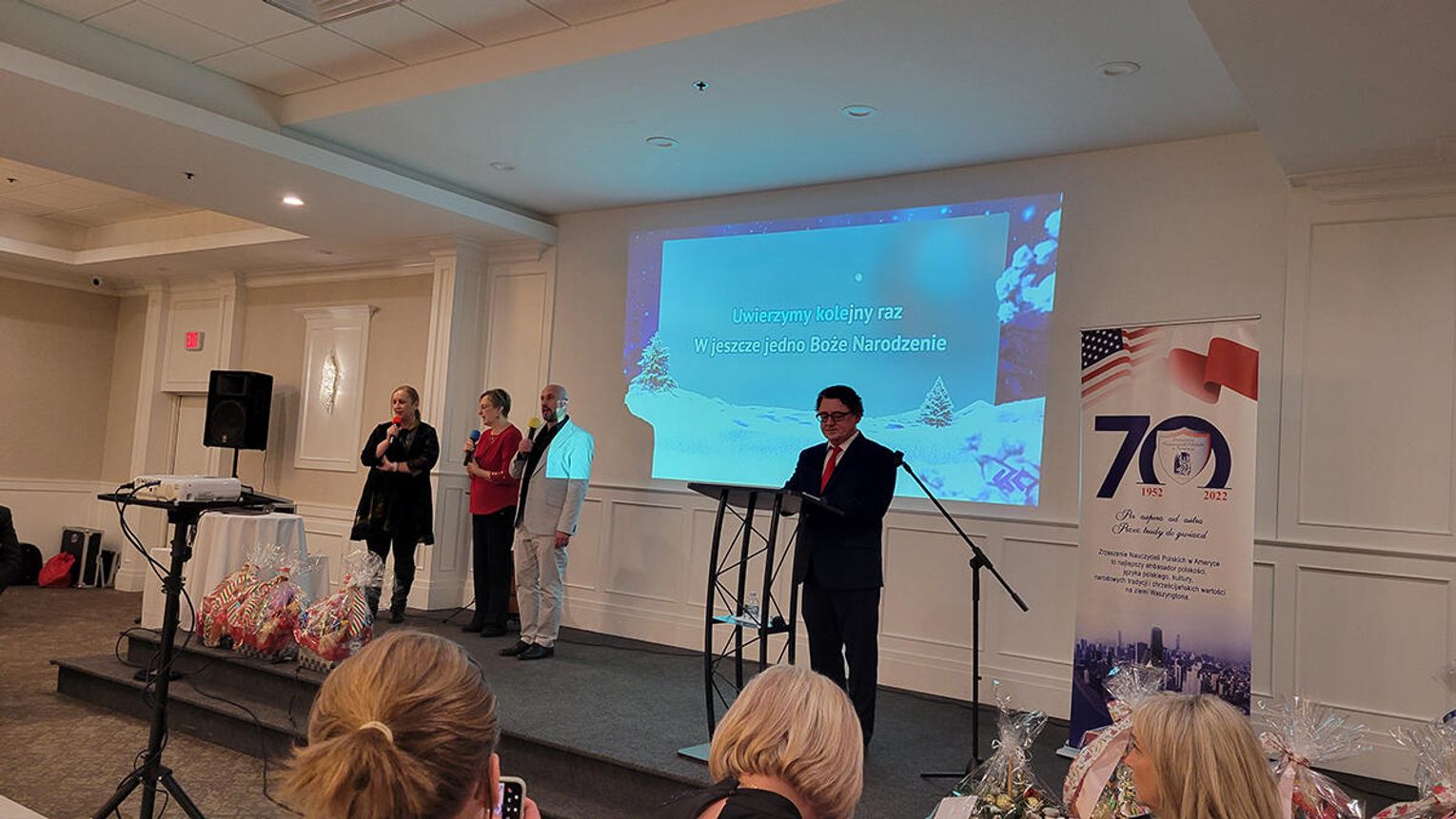 Konsul Jurkowska życząc nauczycielom radosnych i rodzinnych Świąt Bożego Narodzenia oraz pokoju i dostatku w Nowym Roku, zaakcentowała kluczową rolę jaką spełniają pedagodzy w środowisku Polonii amerykańskiej. Dzięki nim dzieci i młodzież mają szansę uczyć się języka polskiego, zdobywać wiedzę o Polsce, jej ponad tysiącletniej historii i wspaniałej kulturze. Prezes Zrzeszenie Nauczycieli Urszula Gawlik w swoim wystąpieniu podziękowała nauczycielom za ich ciężką, codzienną pracę, zaangażowanie w edukację dzieci i młodzieży, za piękną misję przekazywania polskiej kultury, historii, języka i wartości kolejnym pokoleniom. Podkreśliła, że praca nauczyciela to zdecydowanie coś więcej niż nauczanie i wychowywanie, „to budowanie mostów między Polską a Ameryką, między przeszłością a teraźniejszością, między marzeniami dzieci a ich możliwościami”.