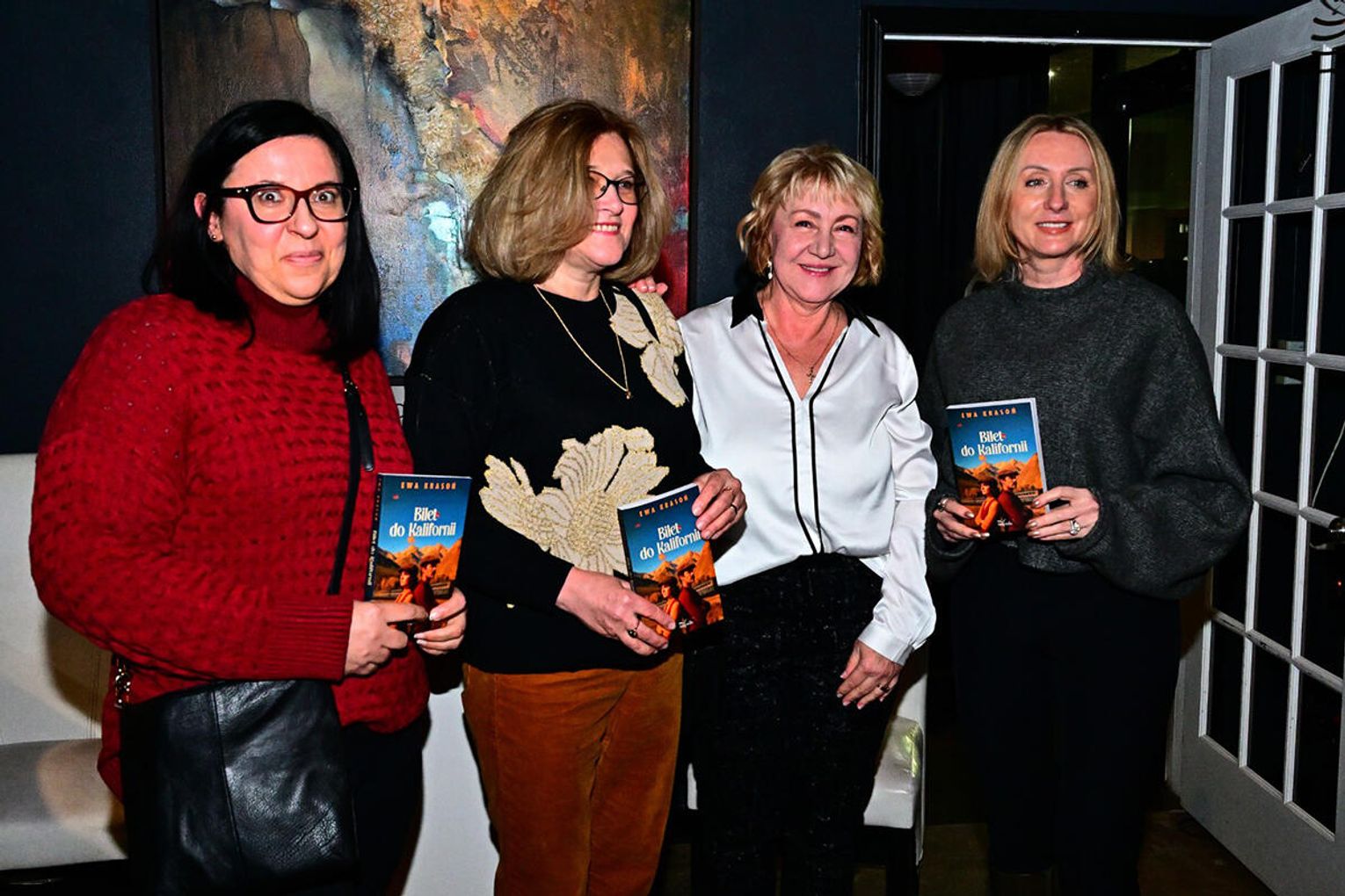 Wieczór autorski z Ewą Krasoń odbył się w niedzielne popołudnie 11 grudnia w Art. Gallery Kafe w podchicagowskim Wood Dale. W emocjonalnej wyprawie przez świat jej prozy – od marzeń o Kalifornii po dramat „skradzionej” młodości pisarce towarzyszył Bogdan Łańko, aktor, reżyser, radiowiec i animator kultury. Oprawę muzyczną wieczoru zapewnili Ania Włoch – szansonistka, wokalistka specjalizująca się w repertuarze francuskim, polskim kabarecie i piosence literackiej oraz Jan Zieńko- muzyk, gitarzysta i kompozytor, tworząc wspólnie kameralną atmosferę i nadając jej nostalgiczny, refleksyjny ton.