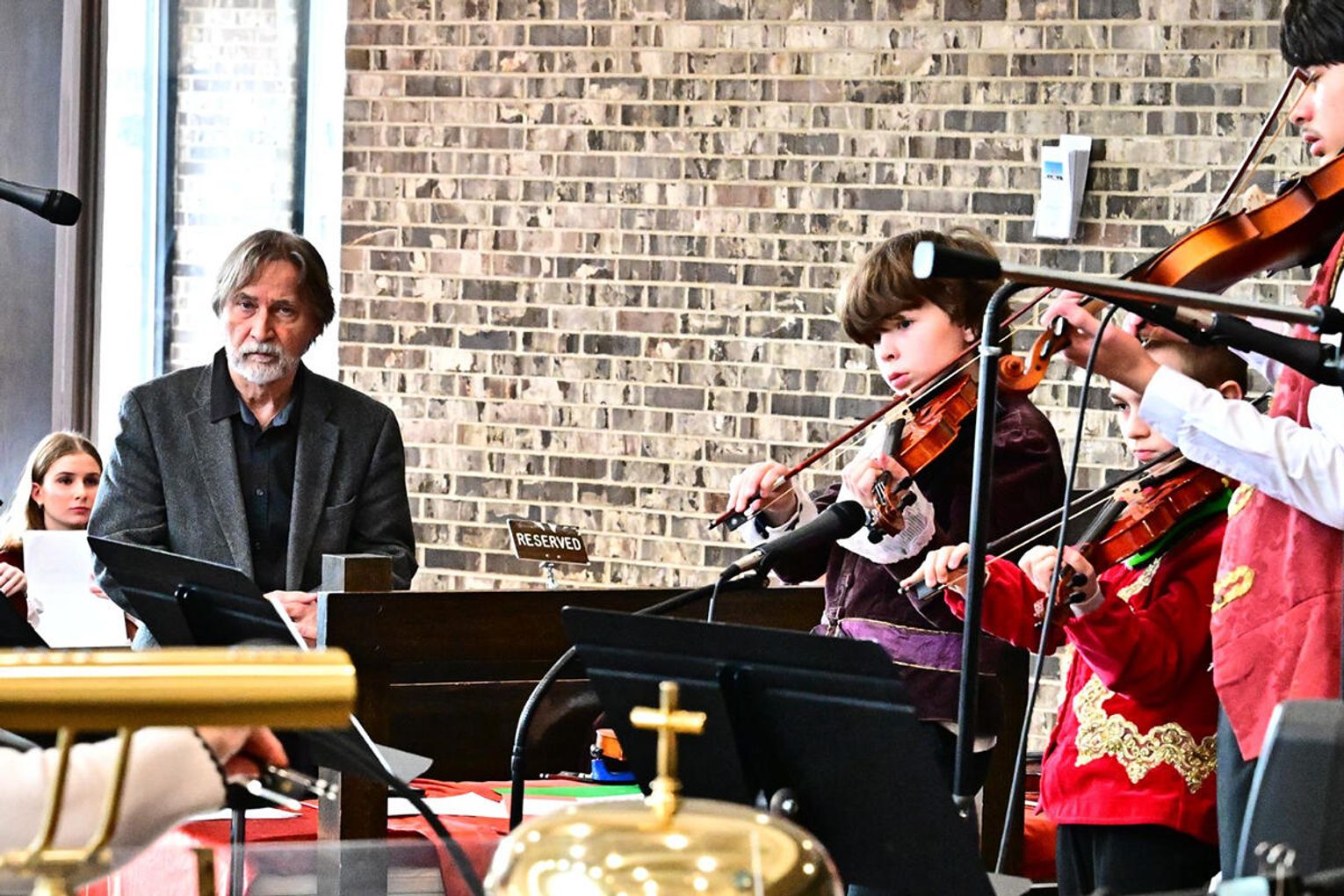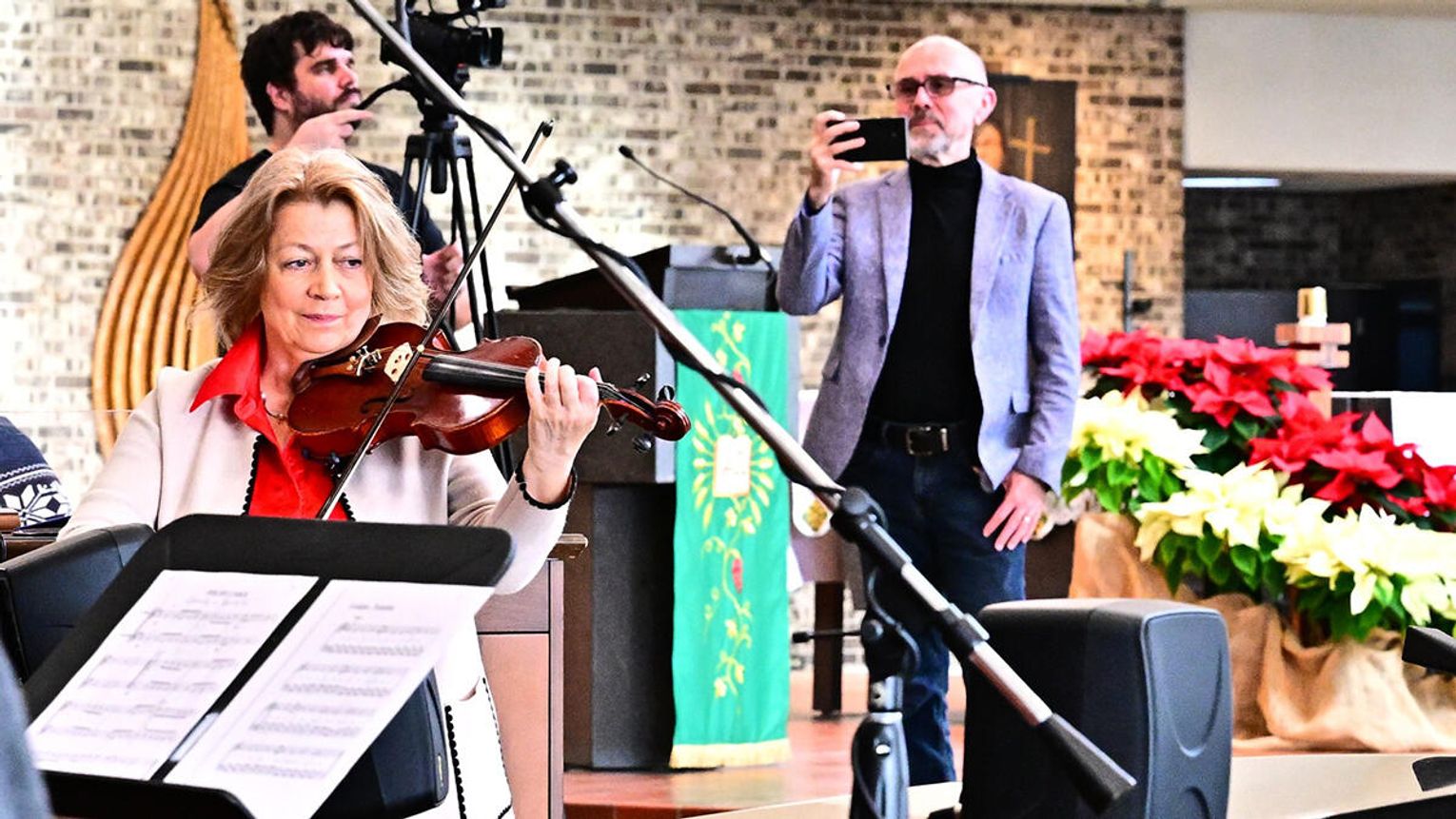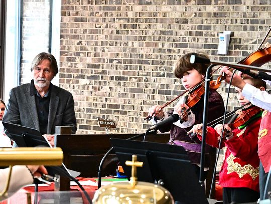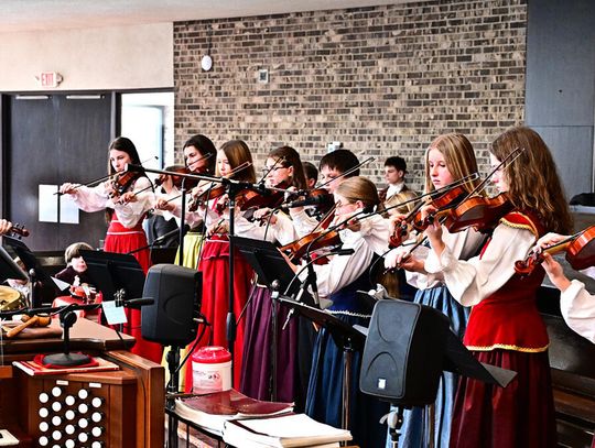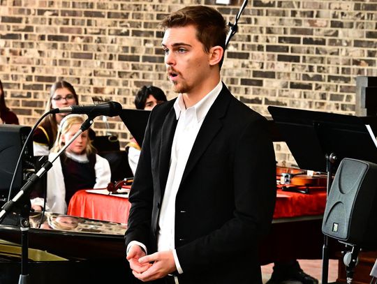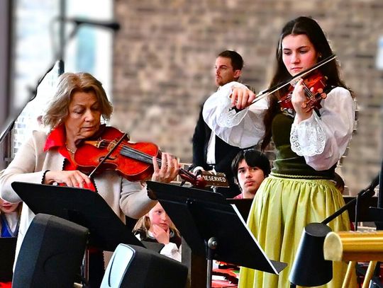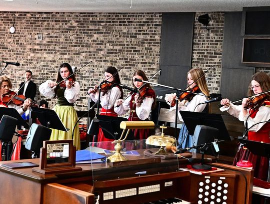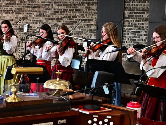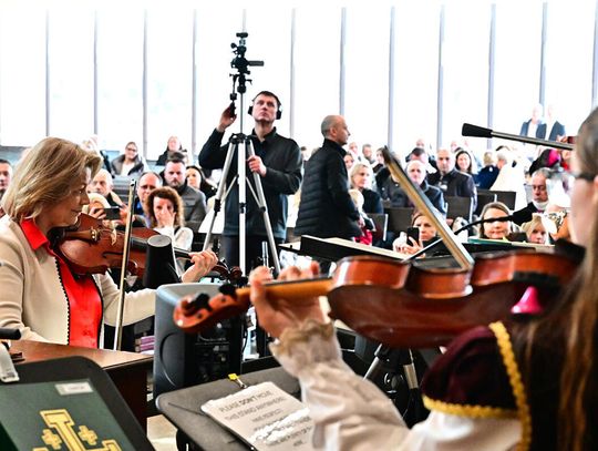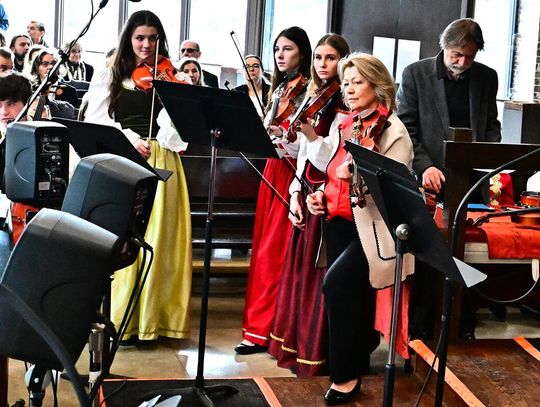 W wykonaniu orkiestry smyczkowej Akademii Muzyki PaSO zebrani wysłuchali m.in. utworu „One Winter Night” Johna Mossa, urzekającego delikatną liryką i subtelną melodyką. Z kompozycji inspirowanej kolędą „Cicha noc”. muzycy wydobyli ciepłe, emocjonalne tony, budując atmosferę spokojnej zimowej nocy i poruszając publiczność dojrzałością i techniczną elegancją. Artyści z orkiestry akompaniowali również młodym chórzystom akademii w wykonaniu kolęd: „Lulajże Jezuniu” “, której kołysankowy charakter zyskał na delikatności dzięki miękkim, falującym smyczkom orkiestry i „Dzisiaj w Betlejem” – z radosną dynamiką budowaną delikatnym wejściem instrumentów i pełnym wigoru chórem, tworząc jednolitą całość.