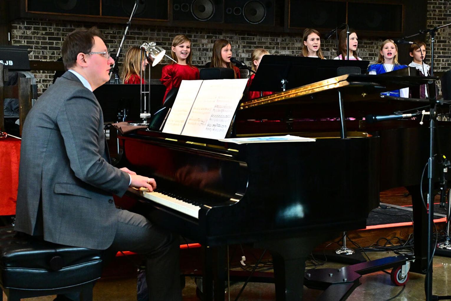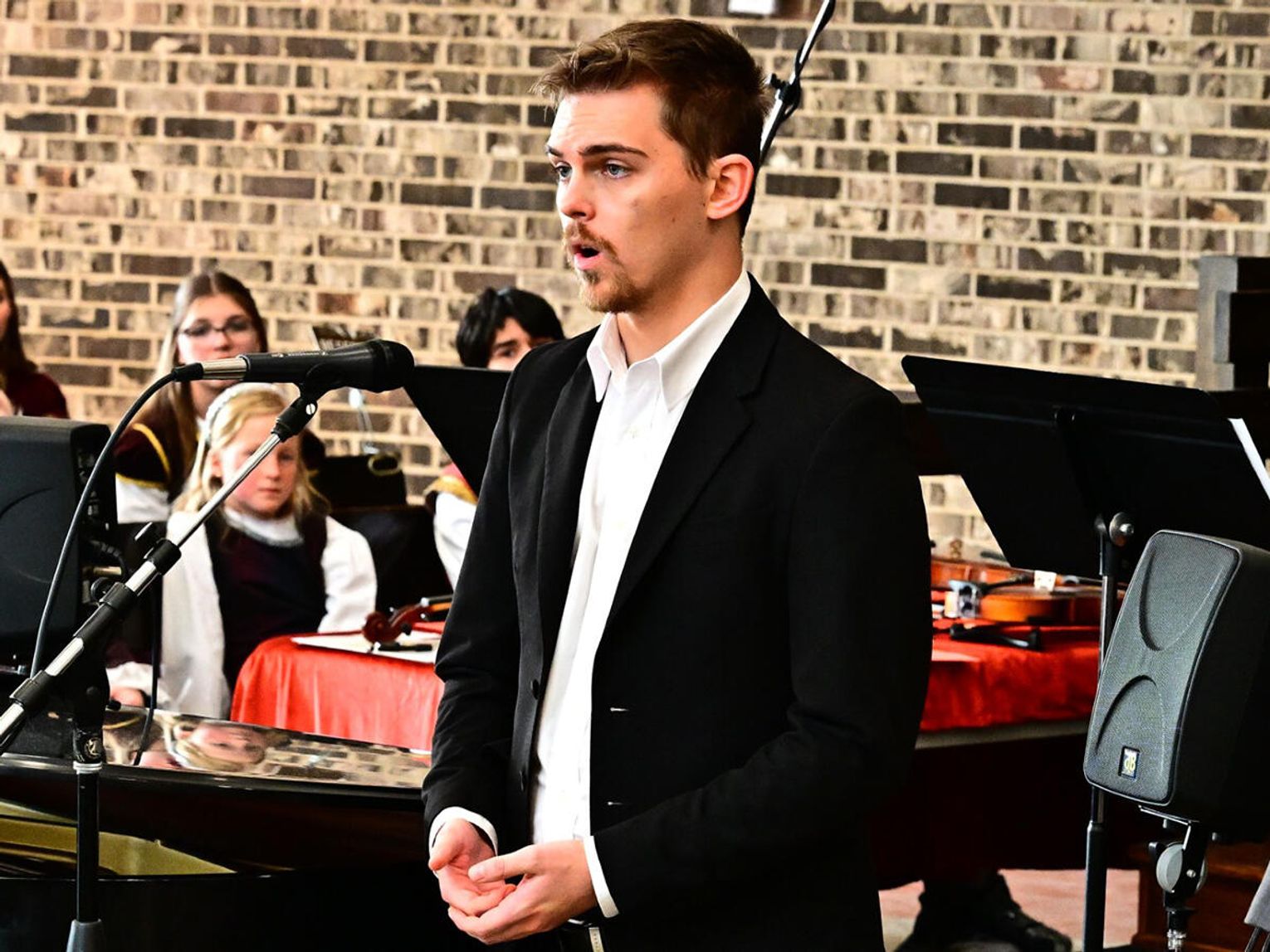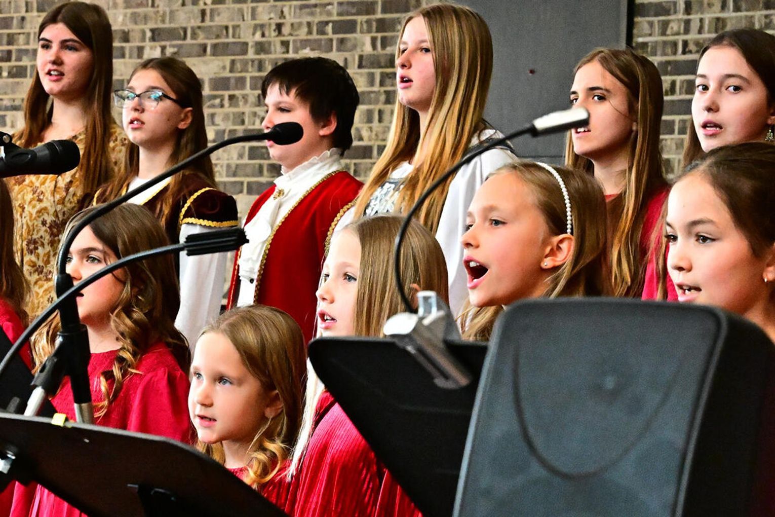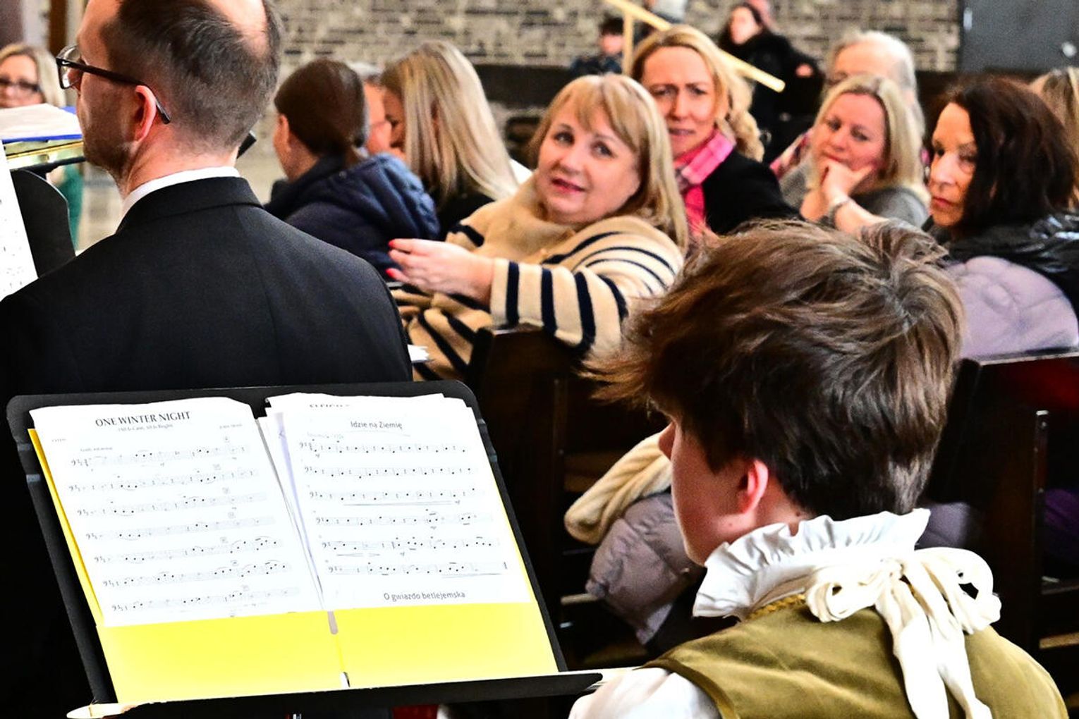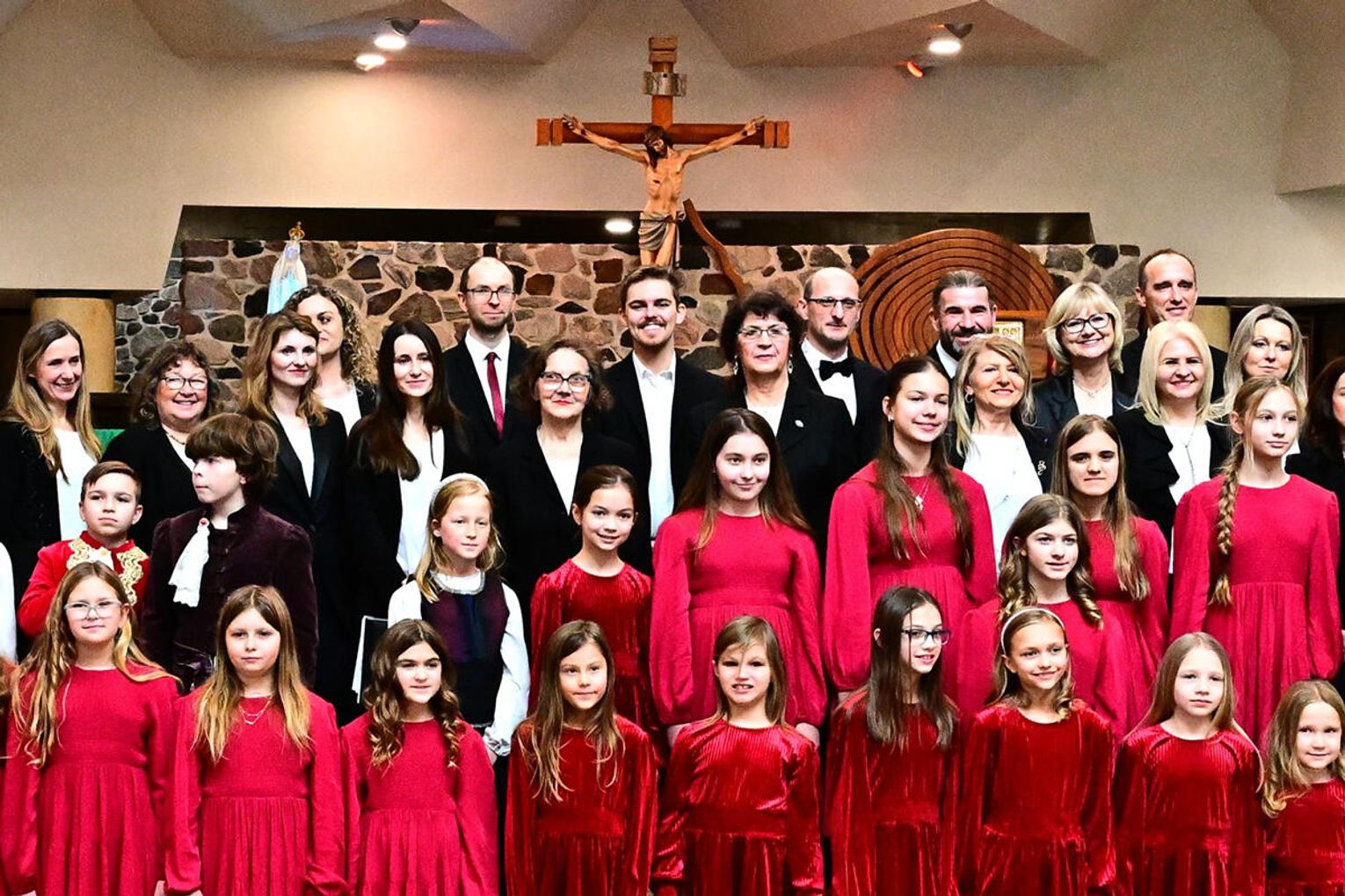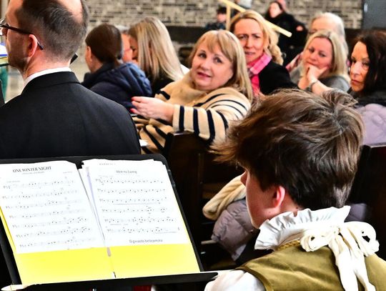Świąteczne śpiewanie rozpoczął chór dziecięcy który urzekł publiczność dojrzałością brzmienia i naturalną radością śpiewu. „Gdy śliczna Panna”, jedna z najstarszych polskich kolęd, została wykonana miękko, z dziecinną czułością, która idealnie korespondowała z kołysankowym charakterem tego utworu. Chór młodzieżowy akademii zaprezentował publiczności pełne pasji i precyzji wykonanie m.in. angielskiej wersji „Gloria in excelsis Deo”. Jej świąteczny blask i dynamika zabrzmiały ożywczo, a młodzieżowa energia nadała interpretacji autentyczności unikając sztywnej liturgii na rzecz radosnego uniesienia.