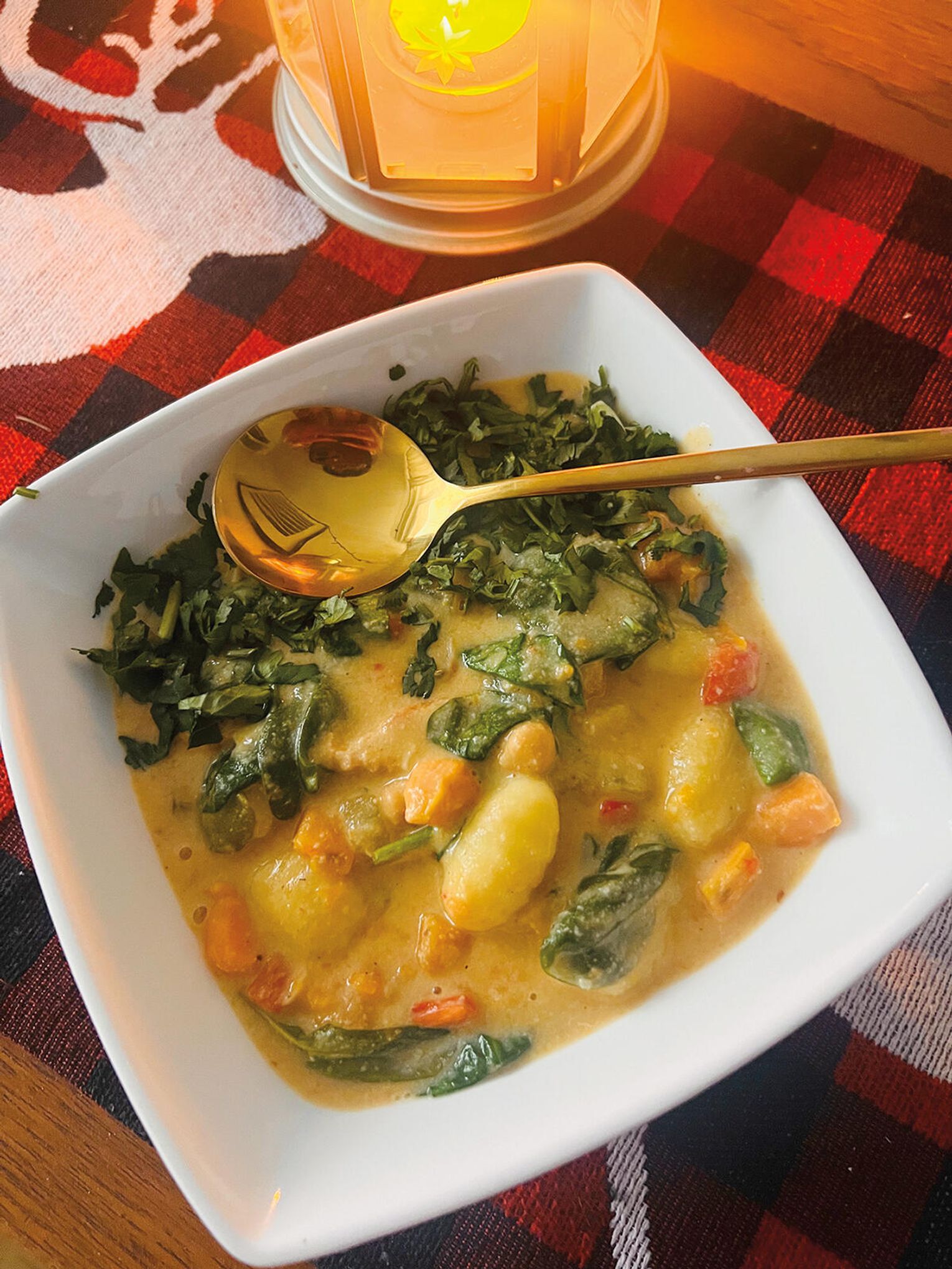 To danie syci porządnie, rozgrzewa od środka i działa jak kulinarny koc. Jest kremowe, gęste, pełne warzyw, mięsa i miękkich kluseczek, które robią robotę. Kolory są tak intensywne, że zimowy dzień nagle robi się mniej ponury. A smaki? Głębokie, lekko pikantne, z nutą cytrusowej świeżości na końcu.