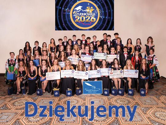 Po przemówieniach gości nadeszła chwila na prezentację najlepszych uczniów z poszczególnych szkół. 52 wyróżnionych uczniów otrzymało pamiątkowe medale, dyplomy oraz flagi polsko-amerykańskie od Zrzeszenia Nauczycieli Polskich w Ameryce oraz upominki od szkoły organizującej uroczystość. Organizatorom Studniówki 2026 udało się zebrać na stypendia 40 tysięcy dolarów dzięki hojności polonijnych organizacji i biznesów, którym składamy serdeczne podziękowania. Wśród sponsorów, którzy ufundowali stypendia w kwocie 1000 dolarów i więcej znalazły się, między innymi takie organizacje i biznesy, jak: Zrzeszenie Nauczycieli Polskich w Ameryce, Polsko-Słowiańska Federalna Unia Kredytowa, Związek Młodych Polek w Ameryce, Sling TV, wydawnictwo Wisdom – Małgorzaty i Andrzeja Pawlusiewiczów, Związek Narodowy Polski, Zjednoczenie Polskie Rzymsko-Katolickie w Ameryce, Związek Klubów Polskich, Youth Camp Association i Związek Podhalan w Ameryce. Niepisaną tradycją studniówek jest zwyczaj, że szkoła organizująca to wydarzenie otrzymuje stypendium dla swojego ucznia. W tym roku stypendia po 1000 dolarów otrzymały uczennice Laura i Lena Turek. W dalszej kolejności odbyło się losowanie 10 stypendiów w wysokości 1000 dolarów. Oto nazwiska tych „szczęśliwców”: