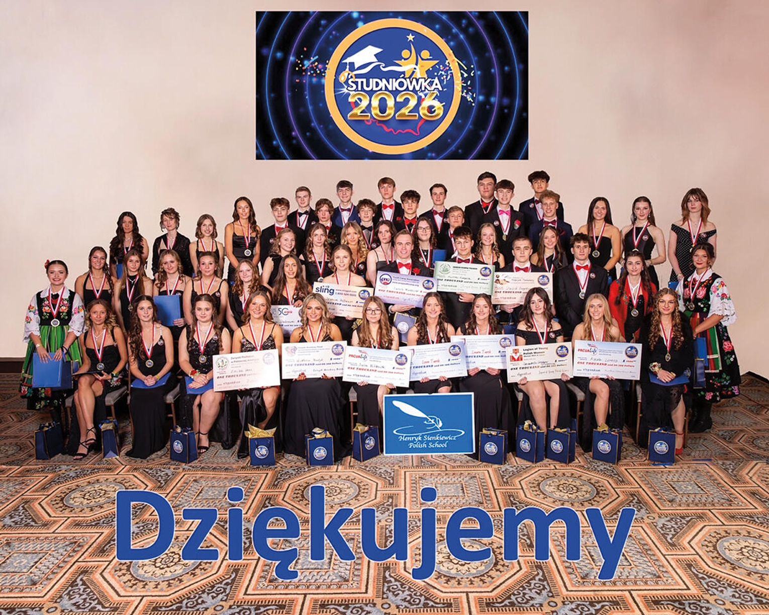 Gratulujemy organizatorom wspaniałego przedsięwzięcia, dziękując Dyrekcji, Gronu Pedagogicznemu, Rodzicom-Wolontariuszom Polskiej Szkoły im. Henryka Sienkiewicza oraz całemu Komitetowi Organizacyjnemu Studniówki 2026 za ogrom pracy, osobiste zaangażowanie i czas poświęcony w przygotowanie i przeprowadzenie studniówkowego balu. Podziękowania składamy również członkom Zrzeszenia za pomoc podczas uroczystości: Bernadetcie Ciurej, Małgorzacie Jagodzie, Danielowi Lachowi, Barbarze Mianowany i Annie Wilczek. Wszystkim uczniom klas maturalnych życzymy powodzenia w egzaminach maturalnych i do zobaczenia w maju na mszy graduacyjnej.