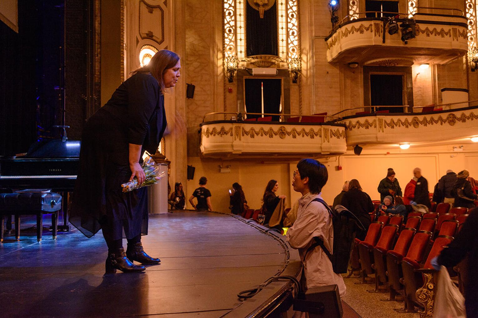 Koncert „In America’s Embrace” był drugim koncertem z cyklu „Discovery Concerts” zorganizowanym przez Chicago Opera Theater w sezonie 2025-26. To wyjątkowe muzyczne wydarzenie odbyło się 18 stycznia 2026 w zabytkowym wnętrzu Studebaker Theater w Chicago. W repertuarze znalazły się utwory i piosenki skomponowane przez twórców, którzy przybyli do Stanów Zjednoczonych jako emigranci w różnym wieku, czasie i okolicznościach.