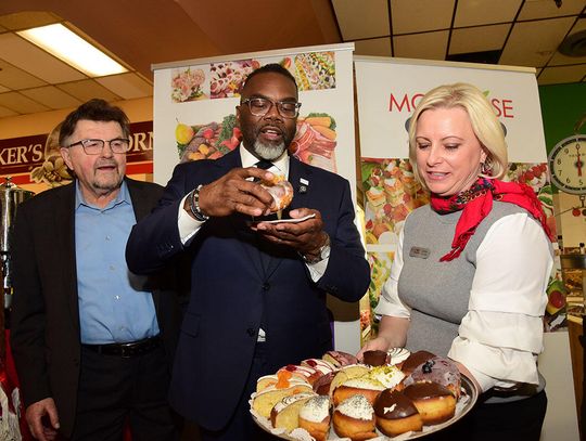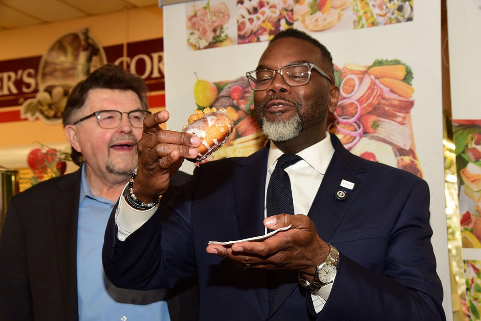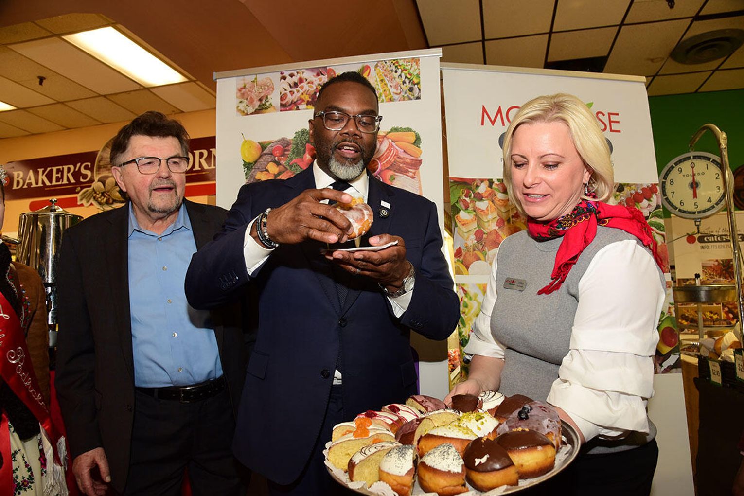 Włodarza chicagowskiej metropolii – któremu towarzyszyli senator stanowy Robert Martwick, radny miejscowego okręgu miejskiego (38th Ward) Nicholas Sposato oraz dyrektor biura miejskiego urzędu Kevin Barszcz z personelem i działacz polonijny Daniel Pogorzelski – o godzinie 5 po południu powitał właściciel delikatesów Stanisław Urbaniak w asyście syna Łukasza oraz manager ds. PR firmy Anny Dudzińskiej. Manager przed degustacją pysznych wypieków zaprezentowała gościom historię sieci sklepów Montrose Deli, które od 35 lat służą Polonii oferując szeroką gamę produktów spożywczych z Polski i całego świata oraz wiele wyrobów własnej produkcji, których najlepszą wizytówką – obok szerokiego wachlarza wyrobów garmażeryjnych – są pączki i inne wyroby ciastkarsko-cukiernicze.