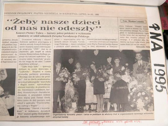 – Moim największym szczęściem i osiągnięciem jest to, że wypracowałam wielu wspaniałych tancerzy, którzy przez lata szkolenia, ukończone studia wyższe są wspaniałymi ludźmi. Nie dalej jak pięć lat temu większość moich tancerek z pierwszego składu była w ciąży. Obecnie po pięciu latach ich dzieci tańczą u nas w najmłodszej grupie krakowiaków. Zespół Pieśni i Tańca „Lajkonik” to rodzina. Z tego zespołu wywodzą się cztery królowe Parady 3 Maja. Może być ich więcej. Biorąca udział w tegorocznych wyborach (królowej parady) Pola Kozikowski była także tancerką zespołu. Jedna z nich Monika Zajączkowska, Królowa Parady z roku 2008, tak wspomina swoją przygodę: „Najbardziej w Lajkoniku doceniam przyjaźnie. Poznałam tutaj nie tylko męża, ale przyjaciół na całe życie. Mamy sporo małżeństw w zespole. Moje serce się cieszy, kiedy widzę przyjaciół, z którymi tańczyłam, przyprowadzających swoje pociechy na taneczne zajęcia do zespołu”. Lajkonik to ‘biuro matrymonialne’, które skojarzyło kilkanaście par małżeńskich. Ich dzieci również należą do zespołu. Przez roztańczoną lajkonikową rodzinę w ciągu tych lat przewinęło się ponad pięciuset tancerzy. Chociaż wydorośleli, pozakładali domowe ogniska, zostali rodzicami i dziadkami, to zawsze wspierają swoich młodszych następców na scenie. Ściskają kciuki i biją brawa. Bo jak rodzina, to rodzina, zawsze razem w czasach dobrych czy też złych. Rodzinna jedność to największa siła Lajkonika, która pozwoliła mu przetrwać ponad trzy dekady i dalej się rozwijać. Chociaż w okolicach Trójcowa, siedziby zespołu, nie mieszka już wielu Polaków, to tancerze ich rodziny z pokolenia na pokolenie, jak bociany wracają do gniazda, by kultywować tradycję, polska kulturę, a nade wszystko dozgonne przyjaźnie – podsumowała swoje wystąpienie wzruszona liderka zespołu.