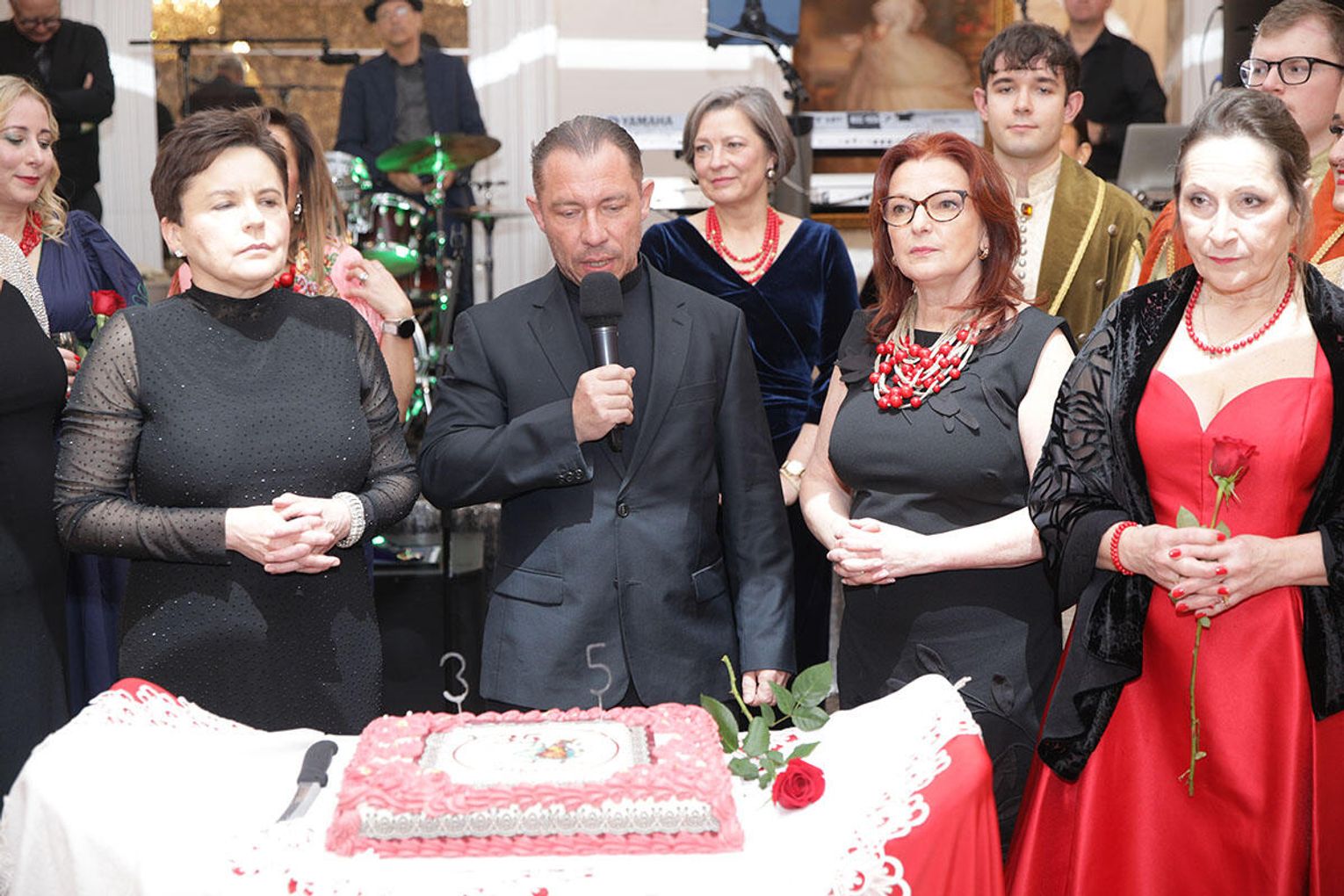 Prowadzące bal Natalia Cisowski i Paula Grzebień, jak przy każdej rocznicy, przedstawiły zebranym kalendarium. Tegoroczna impreza zaczęła się mazurem w wykonaniu grupy reprezentacyjnej zespołu, ale to był tylko przedsmak atrakcji wieczoru, jaki czekały na gości.