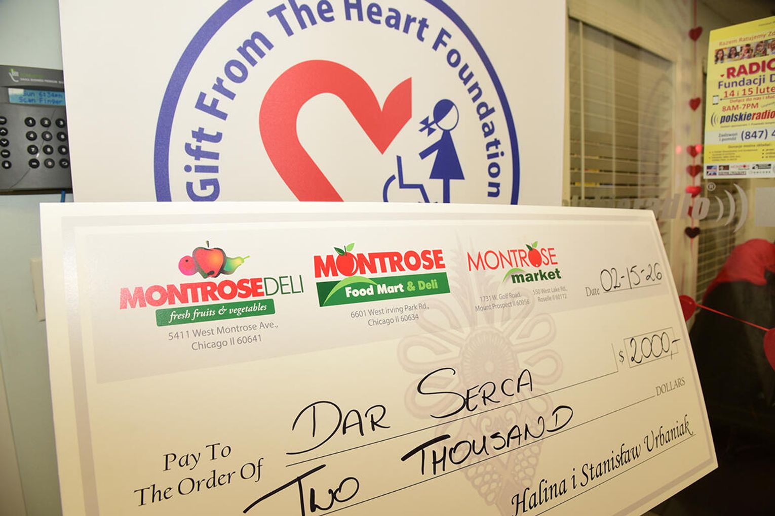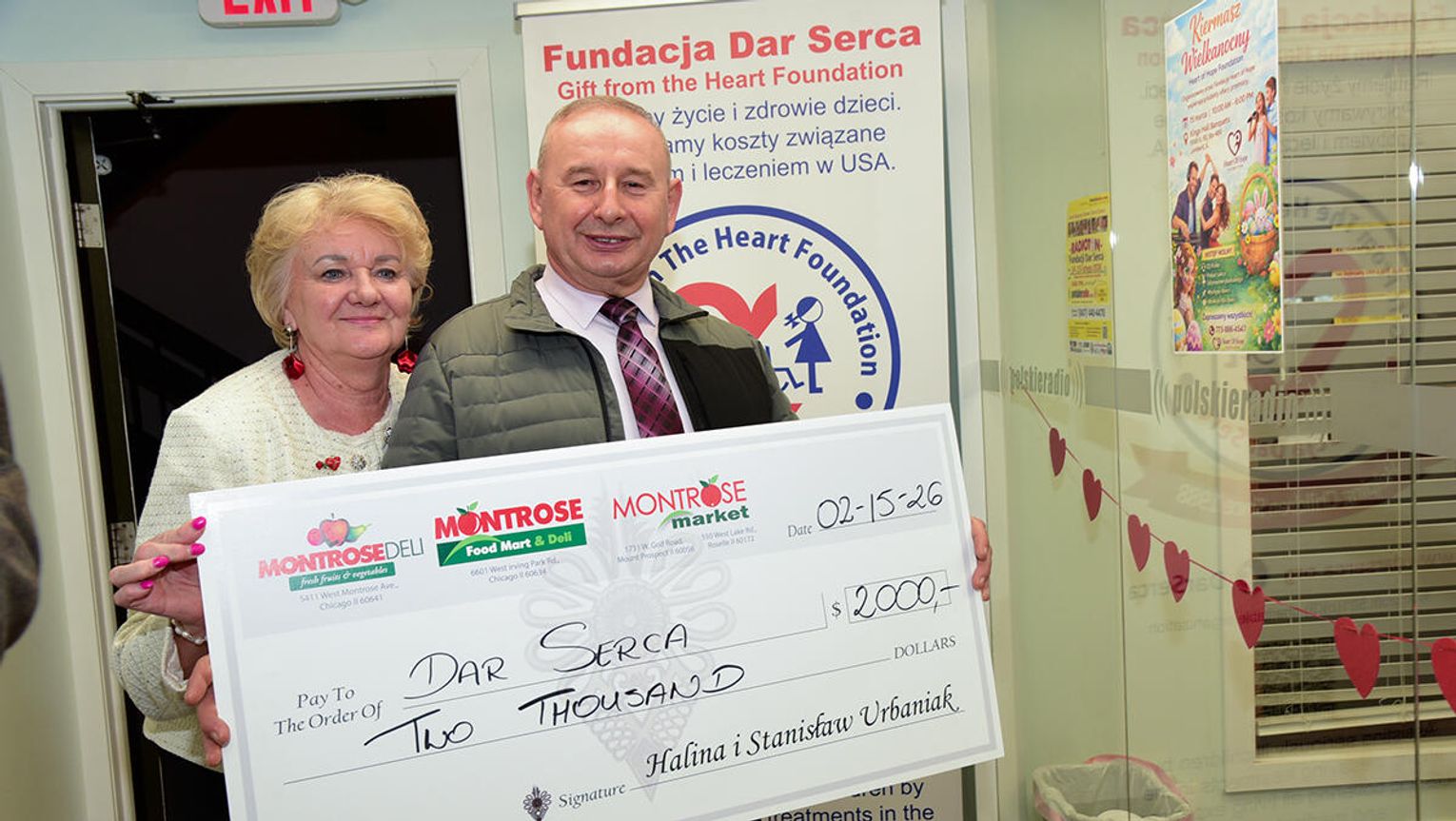 Obok indywidualnych darczyńców w tym gronie były również różnego rodzaju polonijne instytucje, organizacje i biznesy. W czasie trwania programu wolontariusze czytali nazwiska ofiarodawców. Jednym z nich byli właściciele sieci sklepów Montrose Deli Halina i Stanisław Urbaniakowie, którzy przekazali czek na 2 tys. dolarów oraz jedzenie dla grupy wolontariuszy pracujących przy przyjmowaniu zgłoszeń, gości przybywających do studia i realizujących rozmowy na radiowej antenie, którą w niedzielę prowadziła red. Agnieszka Wrocławska dzielnie zastępując zmarłego przed rokiem wieloletniego propagatora tej akcji Krzysztofa Arsenowicza.