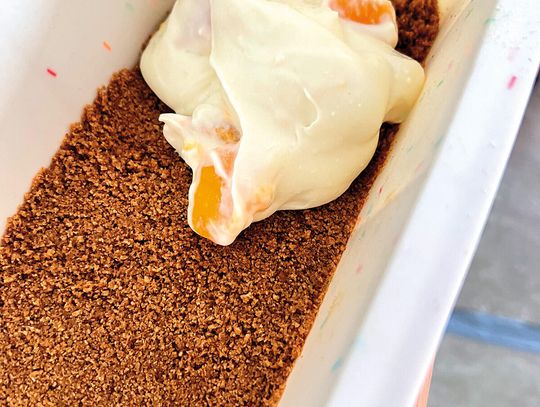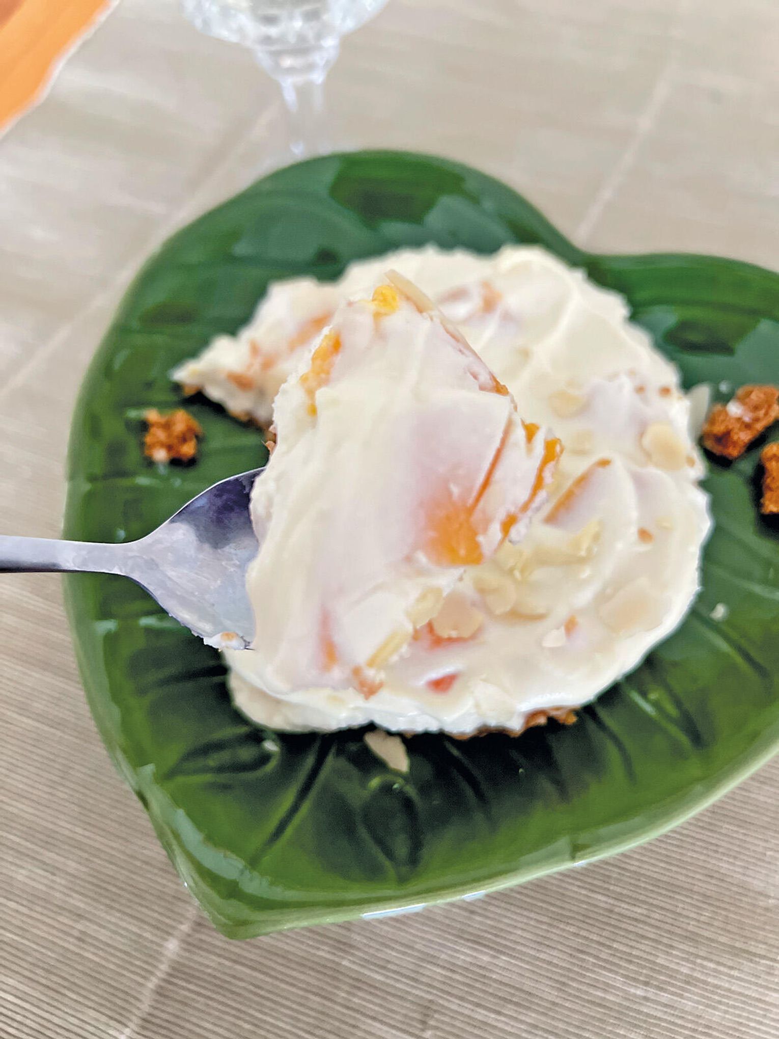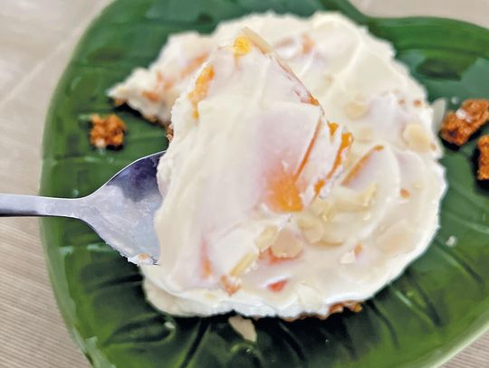 Biała czekolada otula twaróg i mascarpone, brzoskwinie wchodzą z lekką soczystością, a migdały na wierzchu robią teksturalny twist. To deser, który wygląda niewinnie, a smakuje jak coś, za co w kawiarni płacisz absurdalne pieniądze. Jest słodko, ale nie mdło. Jest kremowo, ale nie ciężko. I jest ten moment przy krojeniu, kiedy nóż przechodzi jak przez masło – satysfakcja na wysokim poziomie