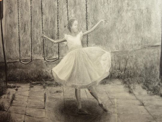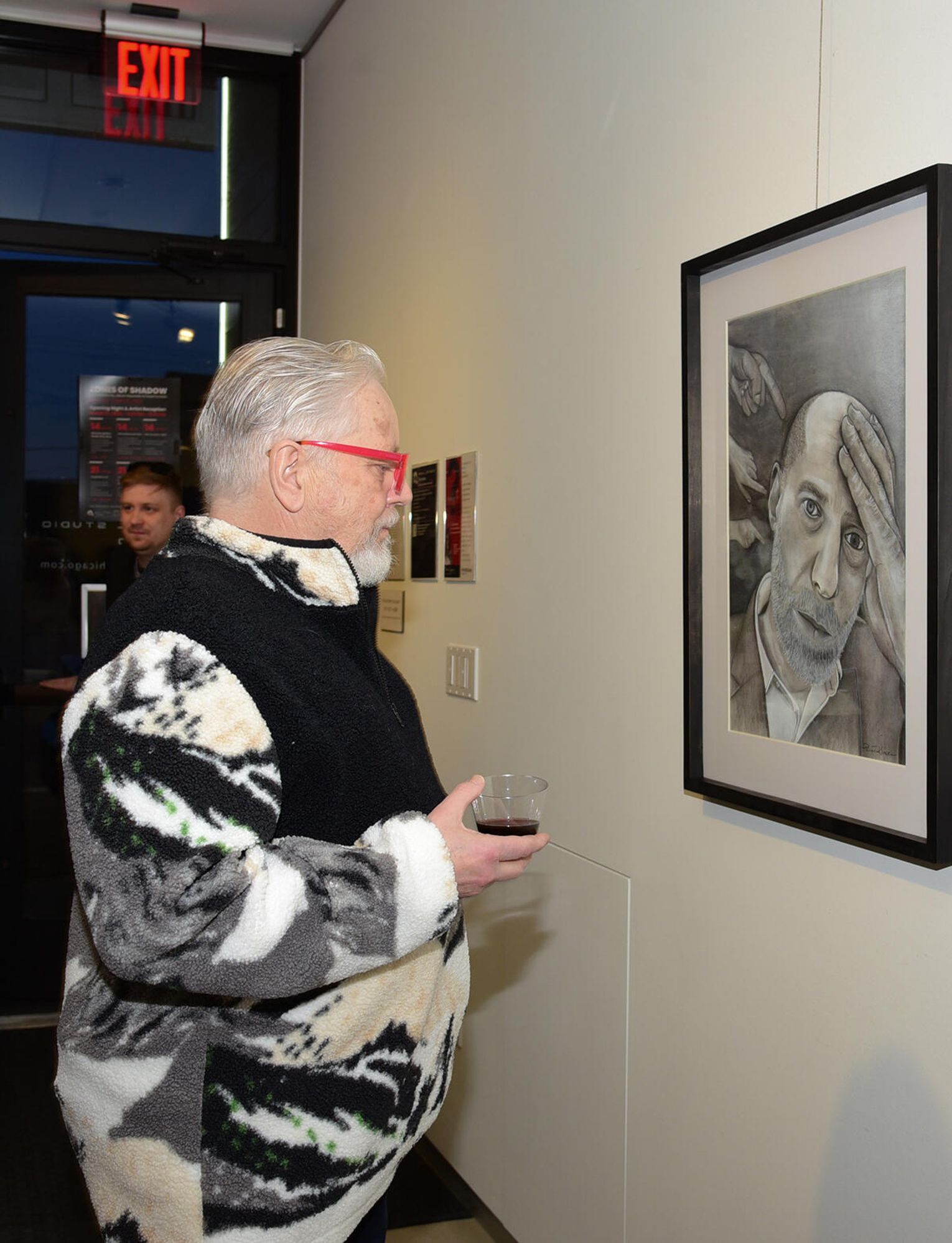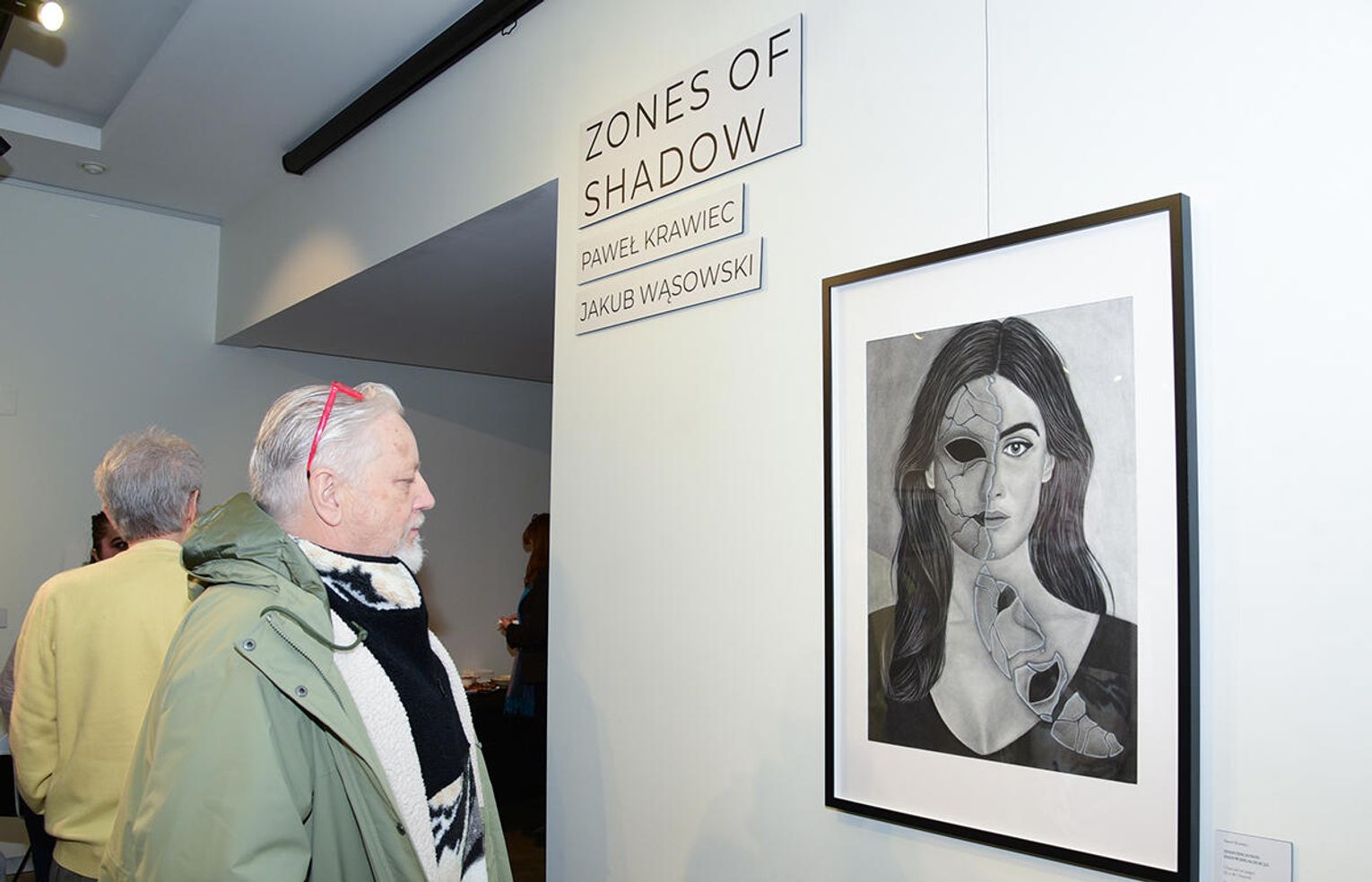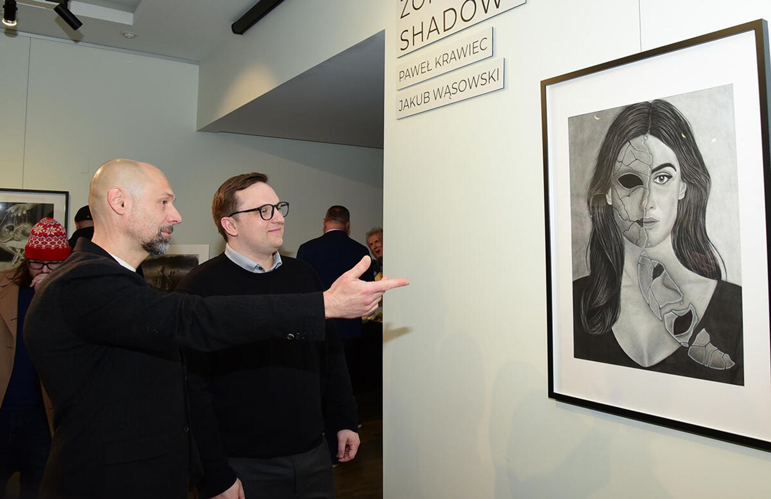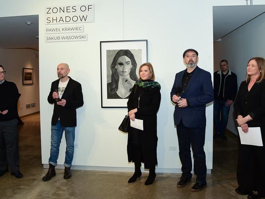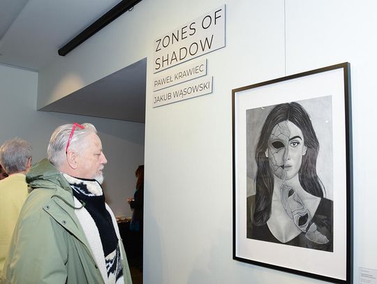– Chodziło mi o uchwycenie cienia, który gdzieś tam w nas drzemie i za nami podąża. Do wyrażenia tego najlepiej chyba nadaje się węgiel, który starałem się użyć, a tematami poszczególnych prac są różne sytuacje życiowe, często są to odniesienia do innych ludzi. Chciałbym w tym miejscu podziękować panu Grzegorzowi Dziedzicowi, który zorganizował grupową terapię razem z Aleksandrą Świerc. W wyniku tej terapii w moim wnętrzu zaistniała potrzeba pokazania tych cieni swojej duszy, zmaterializowania ich na papierze i ukazania szerszej publiczności. Te prace są często efektem osobistych przeżyć tu i teraz, ale również emocji, które się pojawiły we wcześniejszych etapach mojego życia – powiedział Jakub Wąsowski.