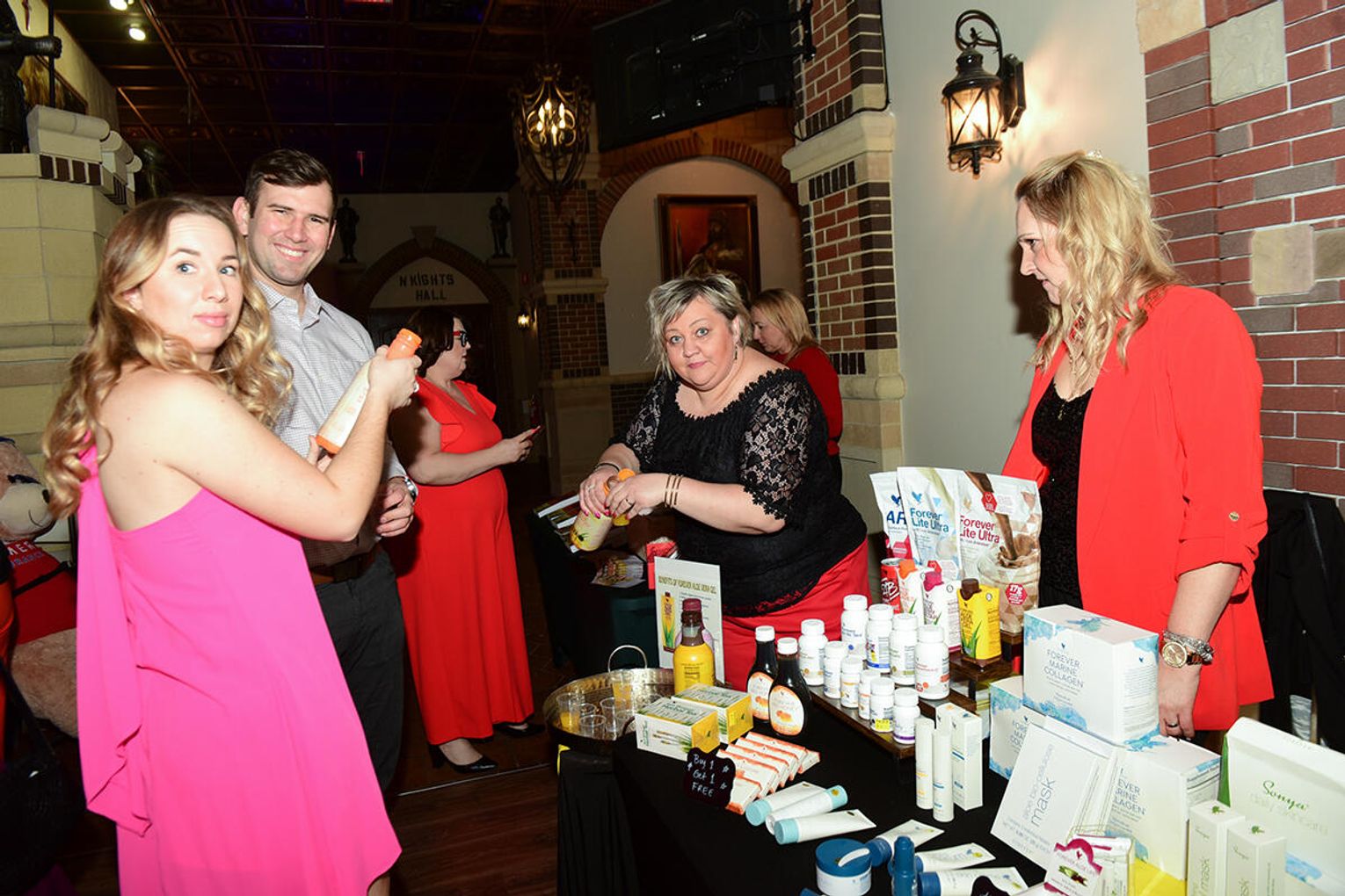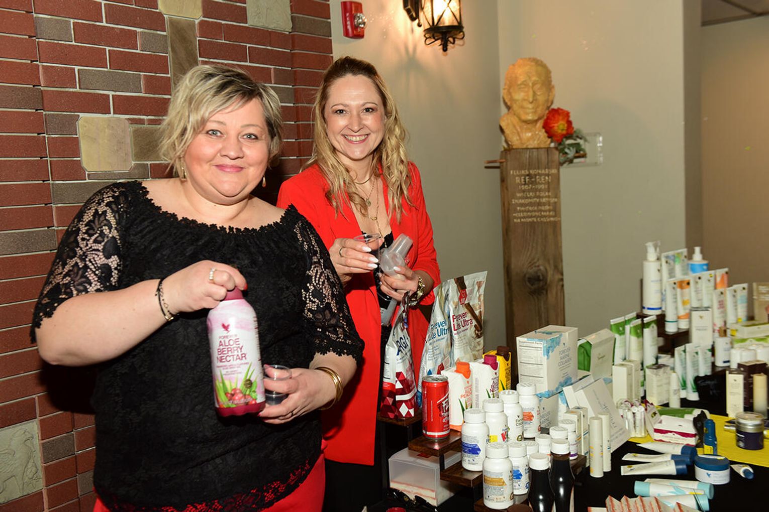 W kuluarach sali bankietowej, na licznych stoiskach można było zaopatrzyć się w eleganckie i modne sukienki, domowe nalewki, pyszne wyroby wędliniarskie, kosmetyki, stroiki wielkanocne, a nawet książki, które polecała autorka Jagoda Bloch.