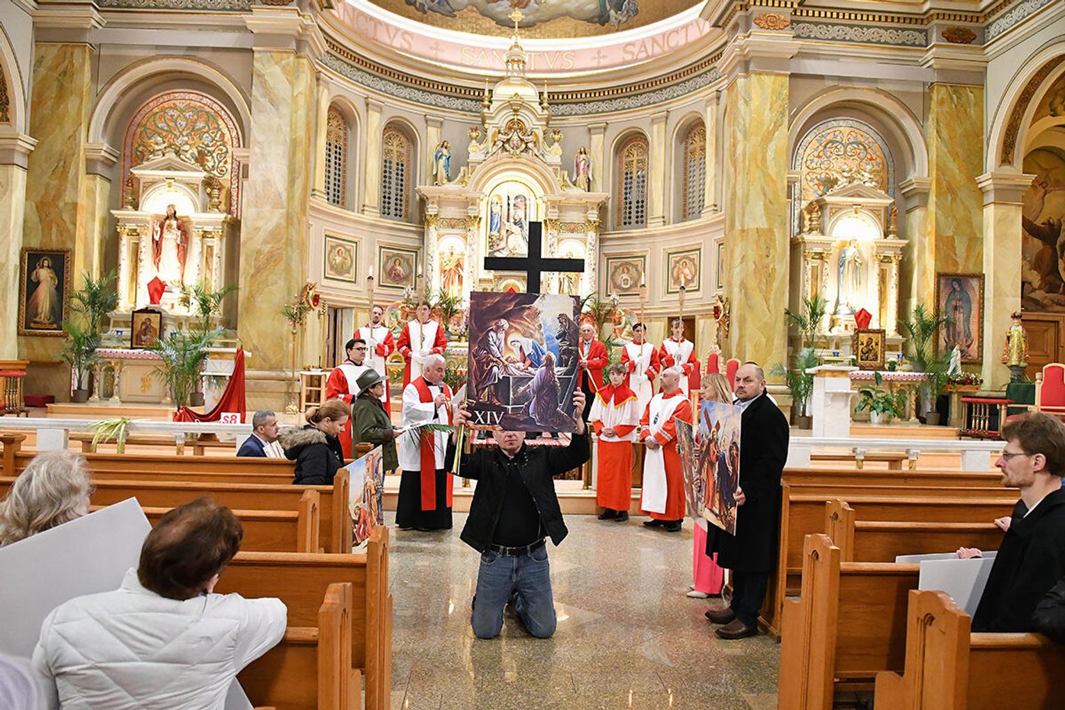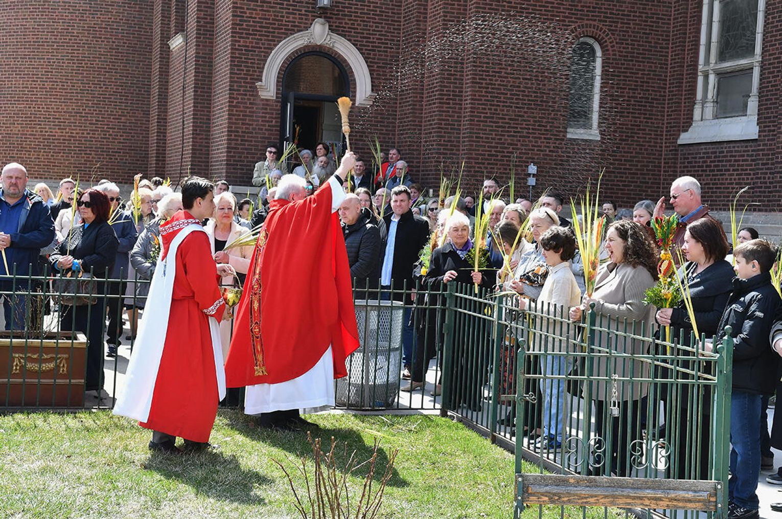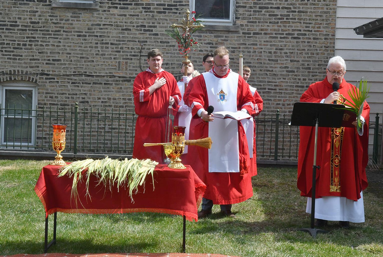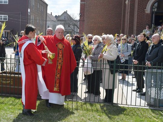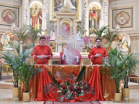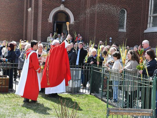 Nabożeństwo wielkopostne rozpoczęło się 29 marca poświęceniem palm przy pomniku św. Jana Pawła II i mszą świętą. Eucharystię odprawił ksiądz Antoni Dziorek, CR. Homilię wygłosił ksiądz Stanisław Jankowski CR – proboszcz parafii. Historię Męki Pańskiej z podziałem na role odśpiewali zmartwychwstaniec ksiądz Jacek Praski i organista Piotr Mrugała.