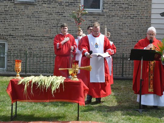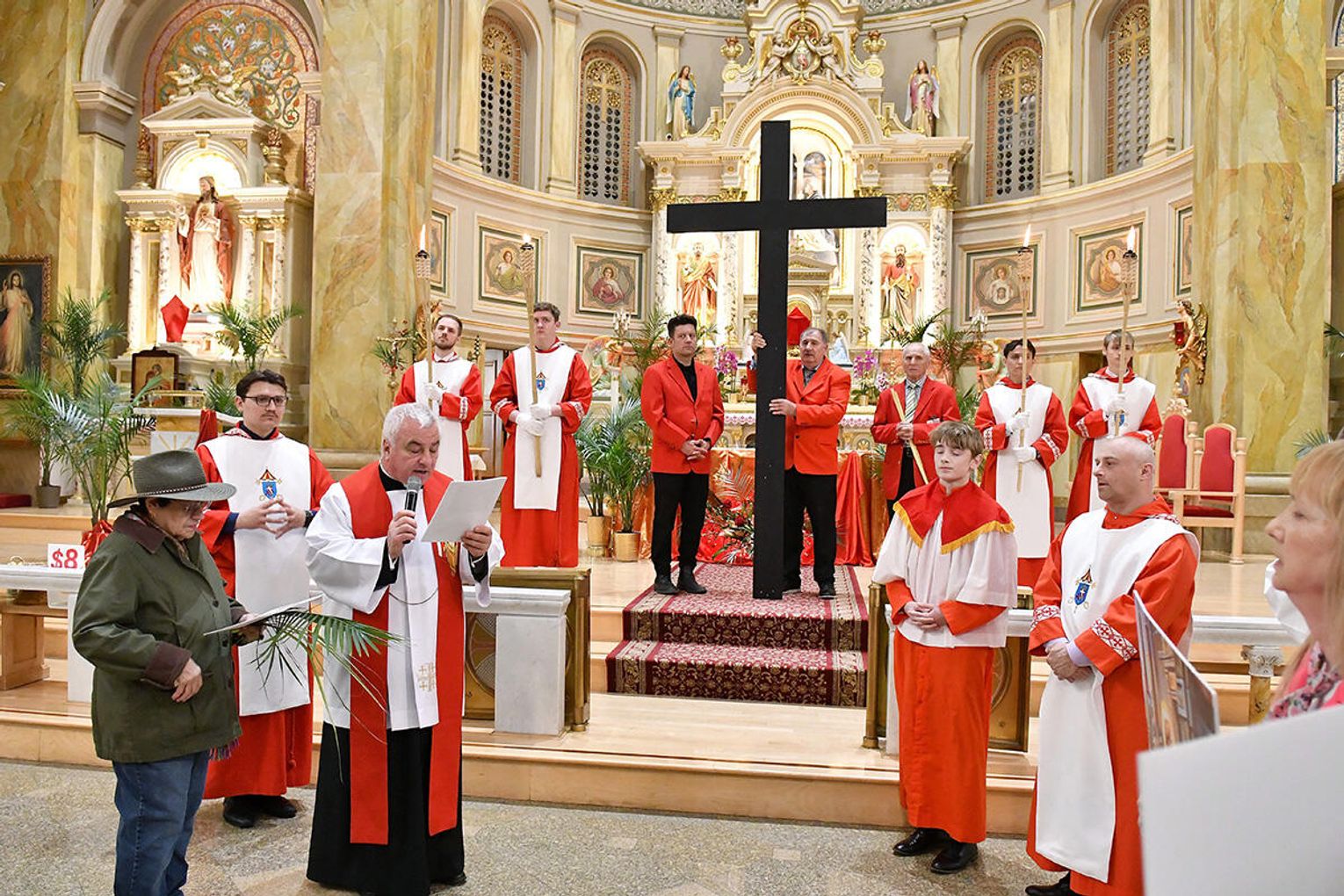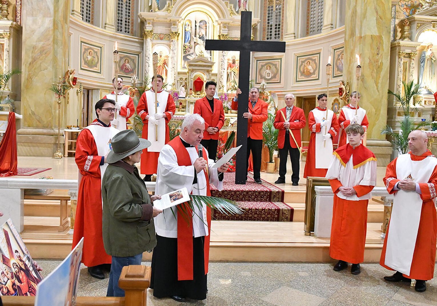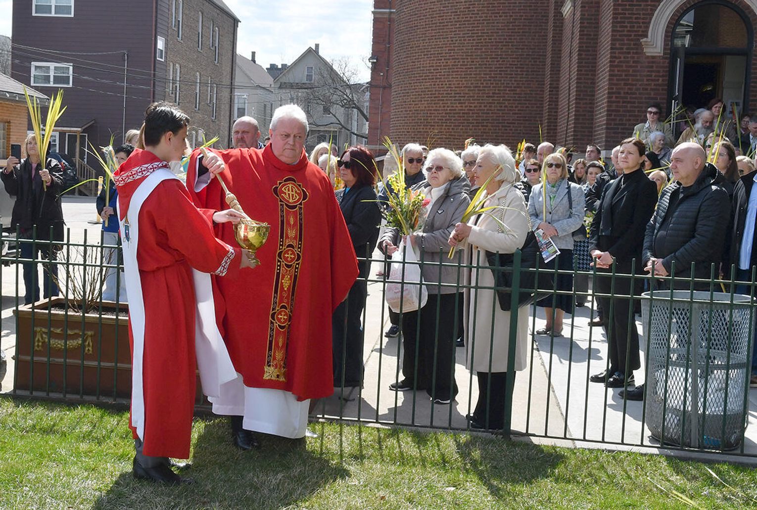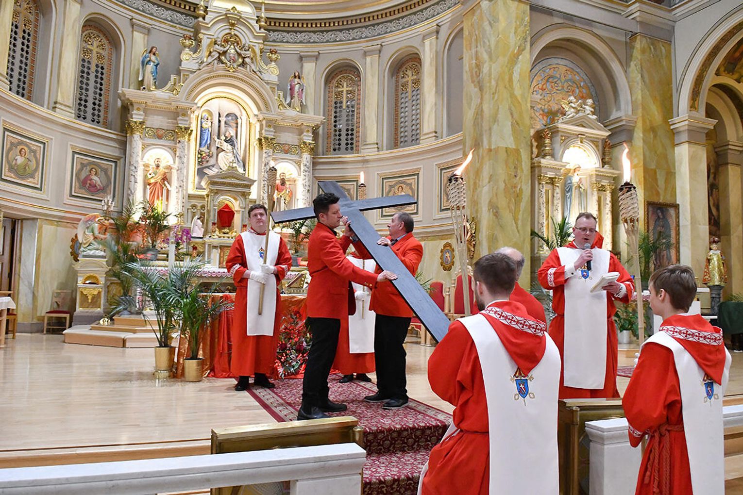 Nabożeństwo wielkopostne rozpoczęło się 29 marca poświęceniem palm przy pomniku św. Jana Pawła II i mszą świętą. Eucharystię odprawił ksiądz Antoni Dziorek, CR. Homilię wygłosił ksiądz Stanisław Jankowski CR – proboszcz parafii. Historię Męki Pańskiej z podziałem na role odśpiewali zmartwychwstaniec ksiądz Jacek Praski i organista Piotr Mrugała.