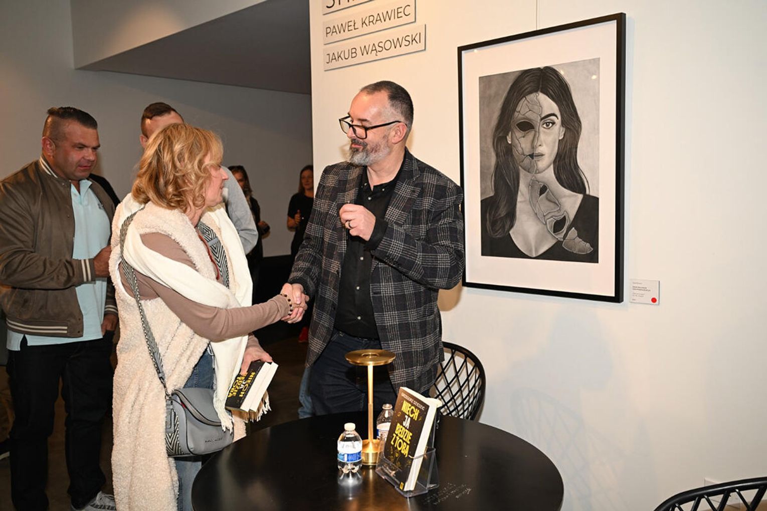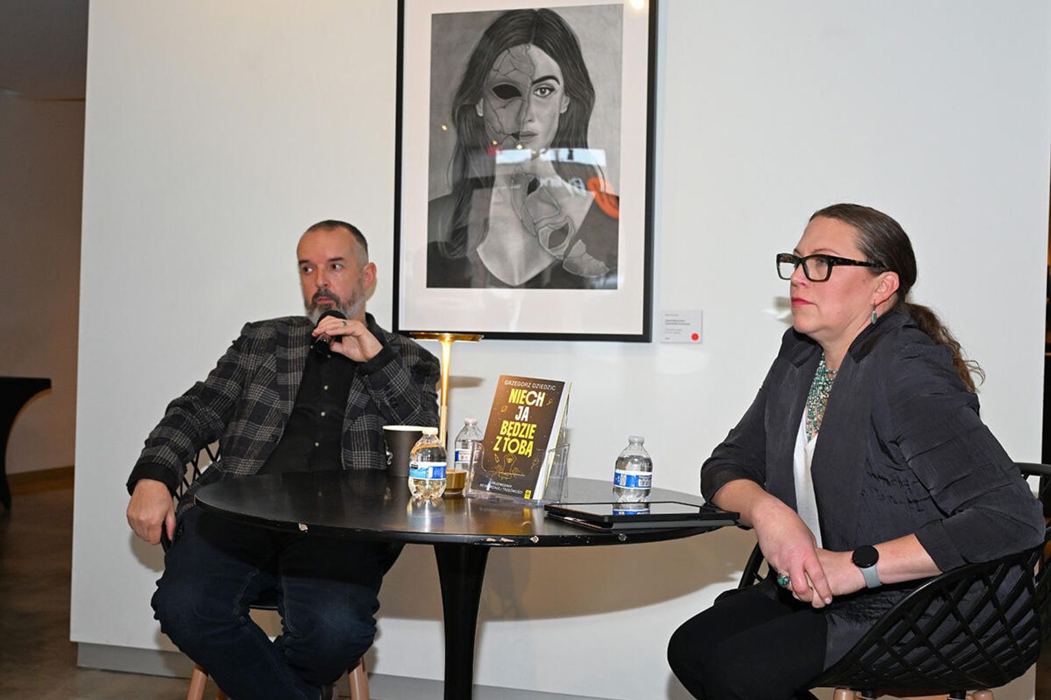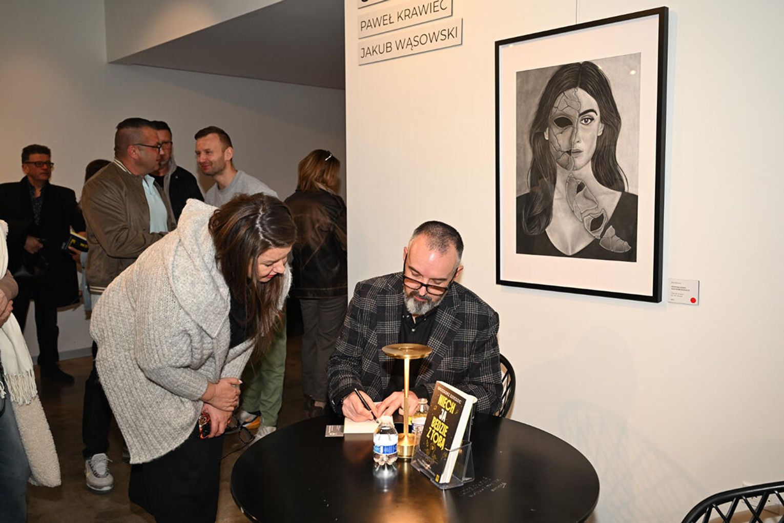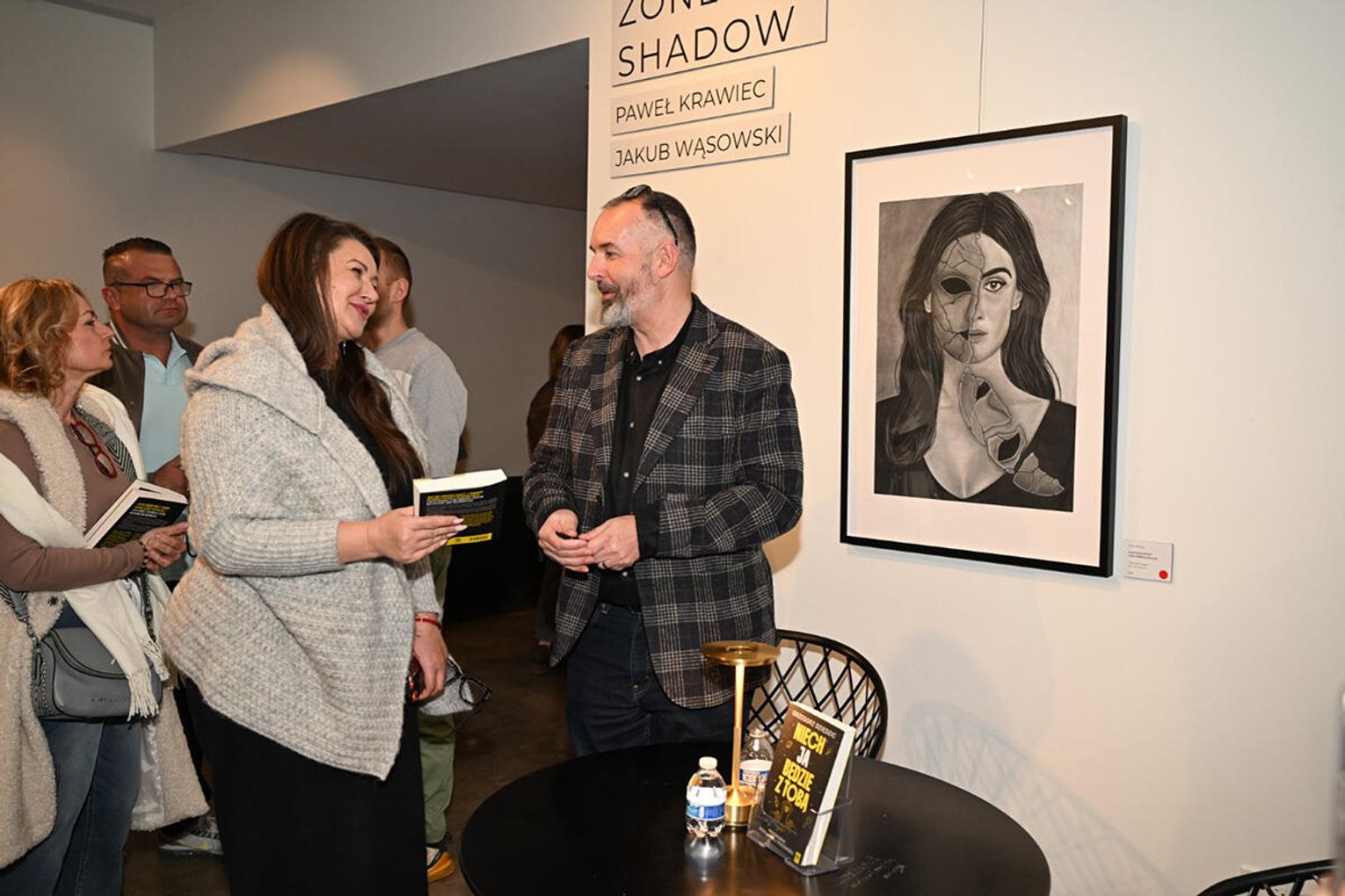 Dodajmy, iż wieczór autorski Dziedzica odbywał się w galerii Dwell Studio w której eksponowane były obrazy „Strefa cienia” autorstwa Jakuba Wąsowskiego i Pawła Krawca. Są to prace stworzone ołówkiem i węglem, do których artyści zostali zainspirowani przebytą grupową terapią schematów, prowadzoną przez terapeutów z Wielokulturowego Centrum Terapeutycznego Angeliki Danek i Gray Owl Psychotherapy Grzegorza Dziedzica. Treść wystawy znakomicie uzupełniła prezentację książki „Niech JA będzie z Tobą”, co podkreślił w swoim wystąpieniu jej autor dziękując gospodarzom studia Marii i Grzegorzowi Grzywaczom za udostępnienie pomieszczeń studyjnych.