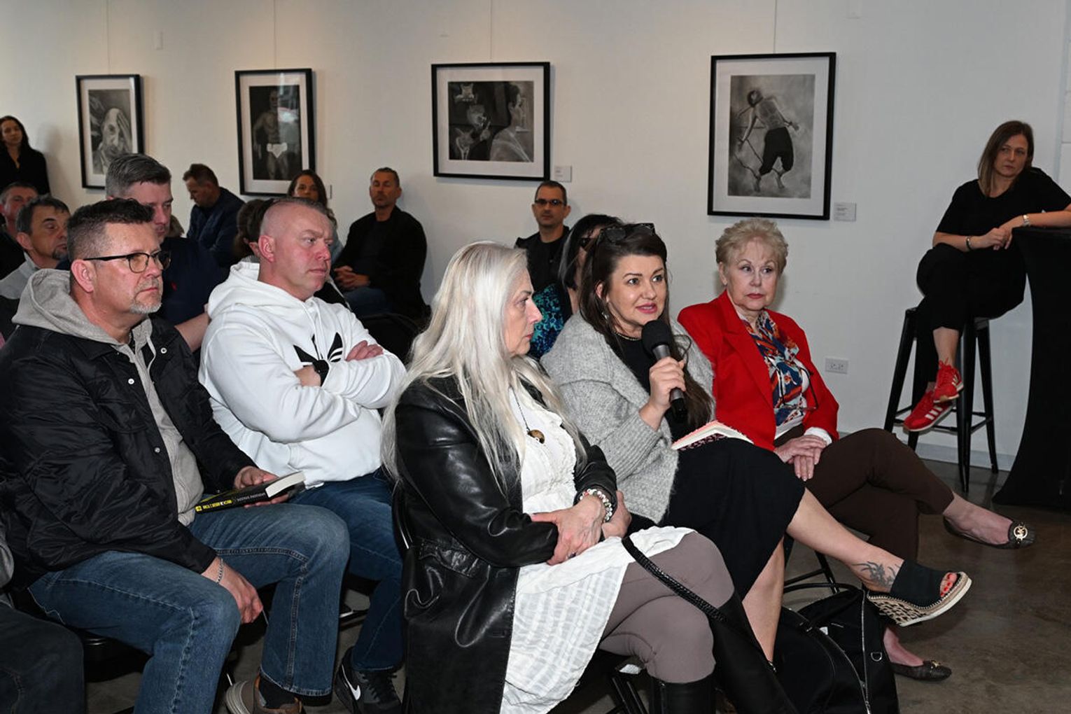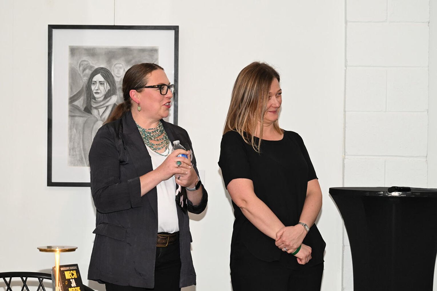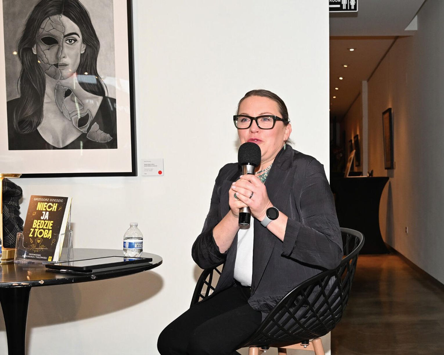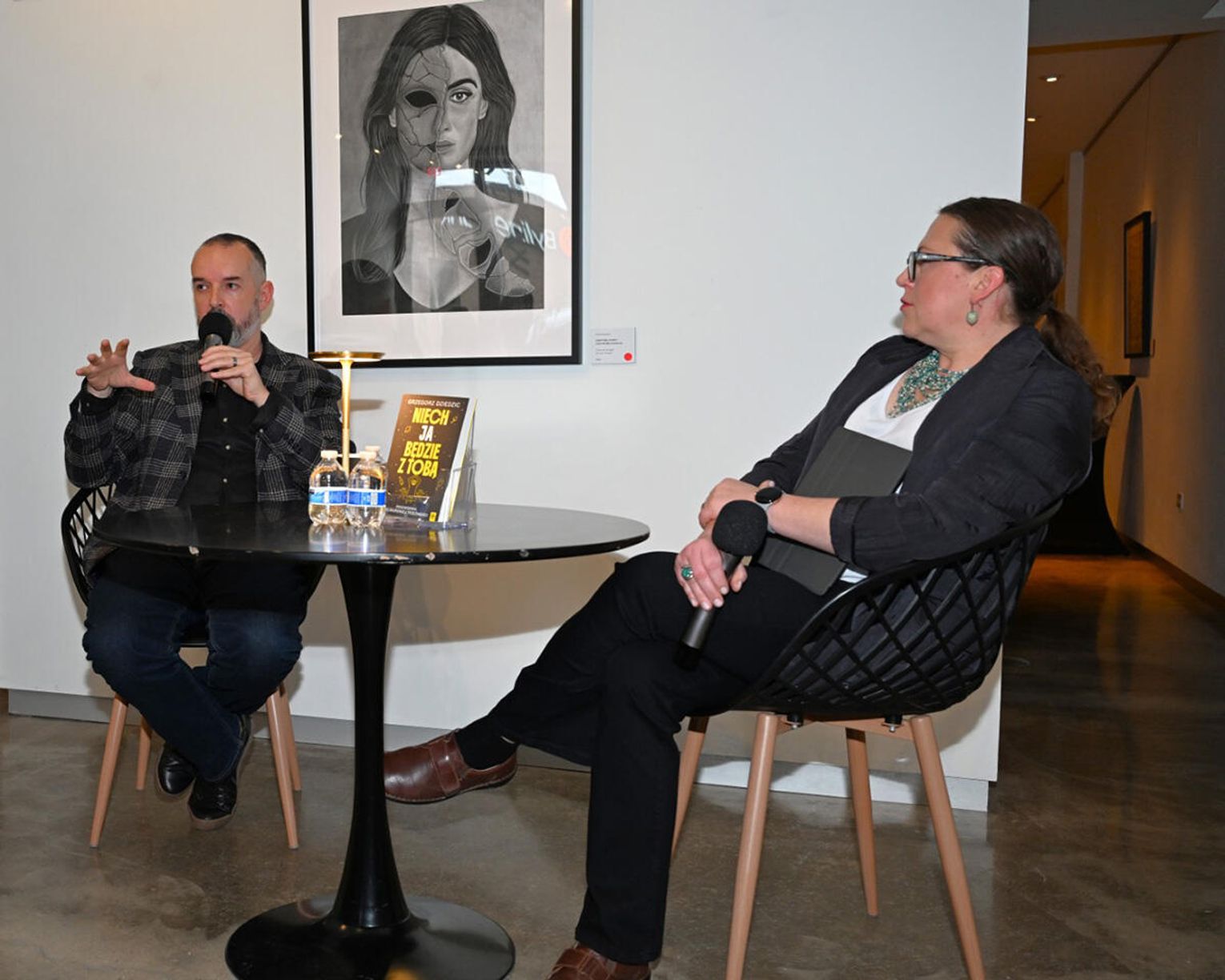 Dodajmy, iż wieczór autorski Dziedzica odbywał się w galerii Dwell Studio w której eksponowane były obrazy „Strefa cienia” autorstwa Jakuba Wąsowskiego i Pawła Krawca. Są to prace stworzone ołówkiem i węglem, do których artyści zostali zainspirowani przebytą grupową terapią schematów, prowadzoną przez terapeutów z Wielokulturowego Centrum Terapeutycznego Angeliki Danek i Gray Owl Psychotherapy Grzegorza Dziedzica. Treść wystawy znakomicie uzupełniła prezentację książki „Niech JA będzie z Tobą”, co podkreślił w swoim wystąpieniu jej autor dziękując gospodarzom studia Marii i Grzegorzowi Grzywaczom za udostępnienie pomieszczeń studyjnych.