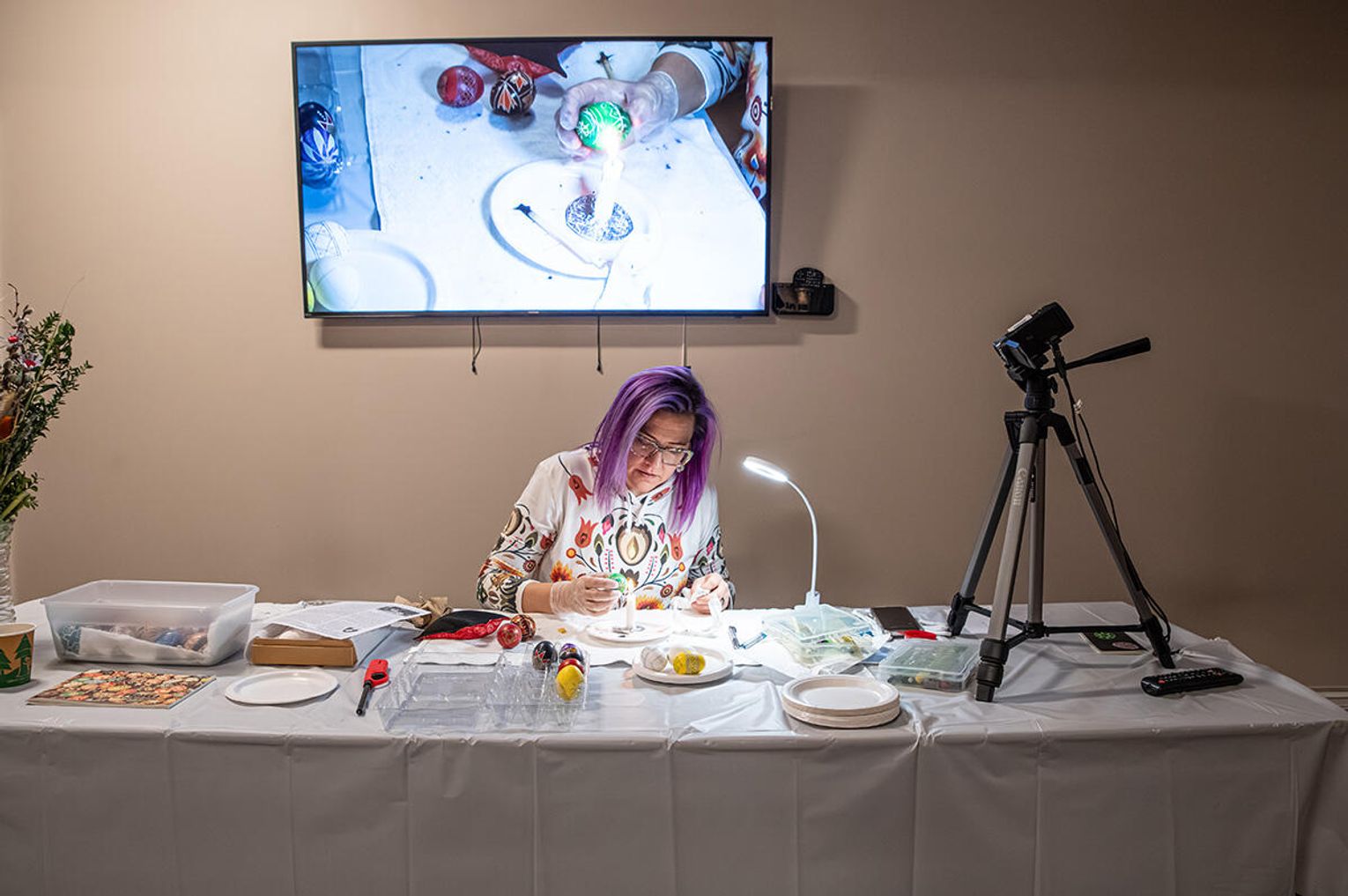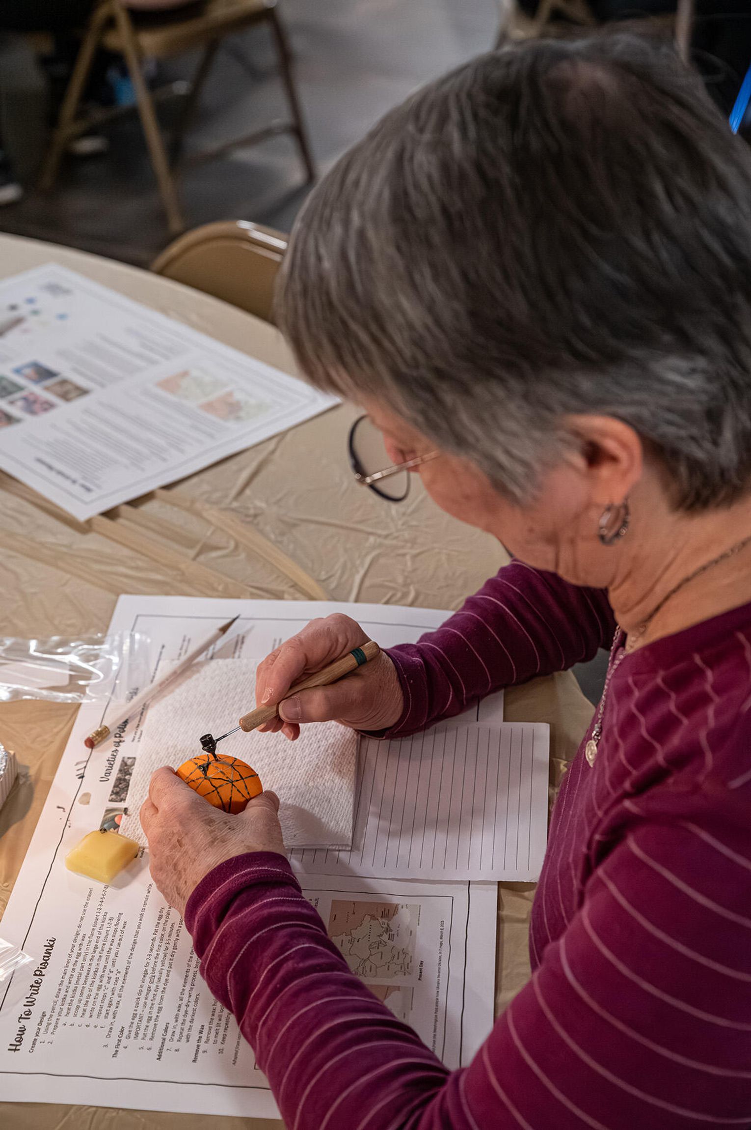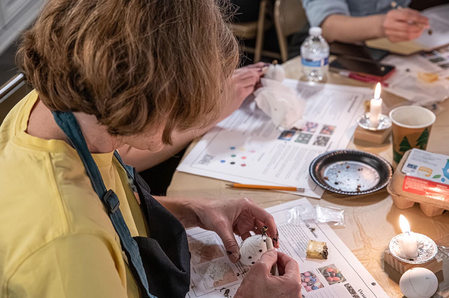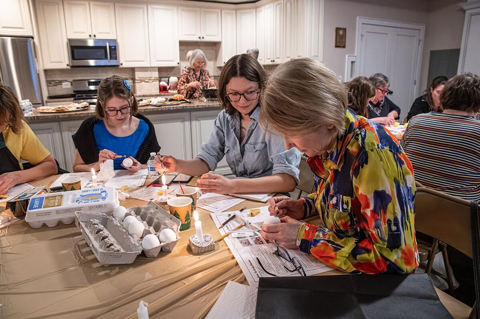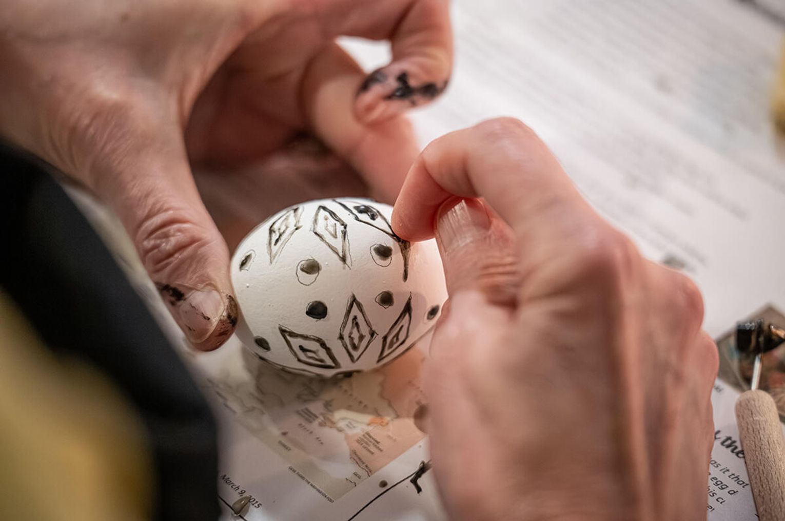 To kolejna tradycja tych warsztatów, że przy stołach zasiada kilka pokoleń. I tak dzieje się od ponad 20 lat! Tradycją jest także osoba prowadząca je – Christine Frankowicz-Burd, doświadczona instruktorka, córka polskich emigrantów. Wychowana została w domu wśród polskich tradycji, którym jest wierna. Sama najchętniej rysuje swoje pisanki na jajkach gęsich, bo wtedy do wykorzystania jest większa powierzchnia i wzór może być bardziej precyzyjny. Co roku przynosi też swoje pisanki na warsztaty, by służyły jako inspiracja.