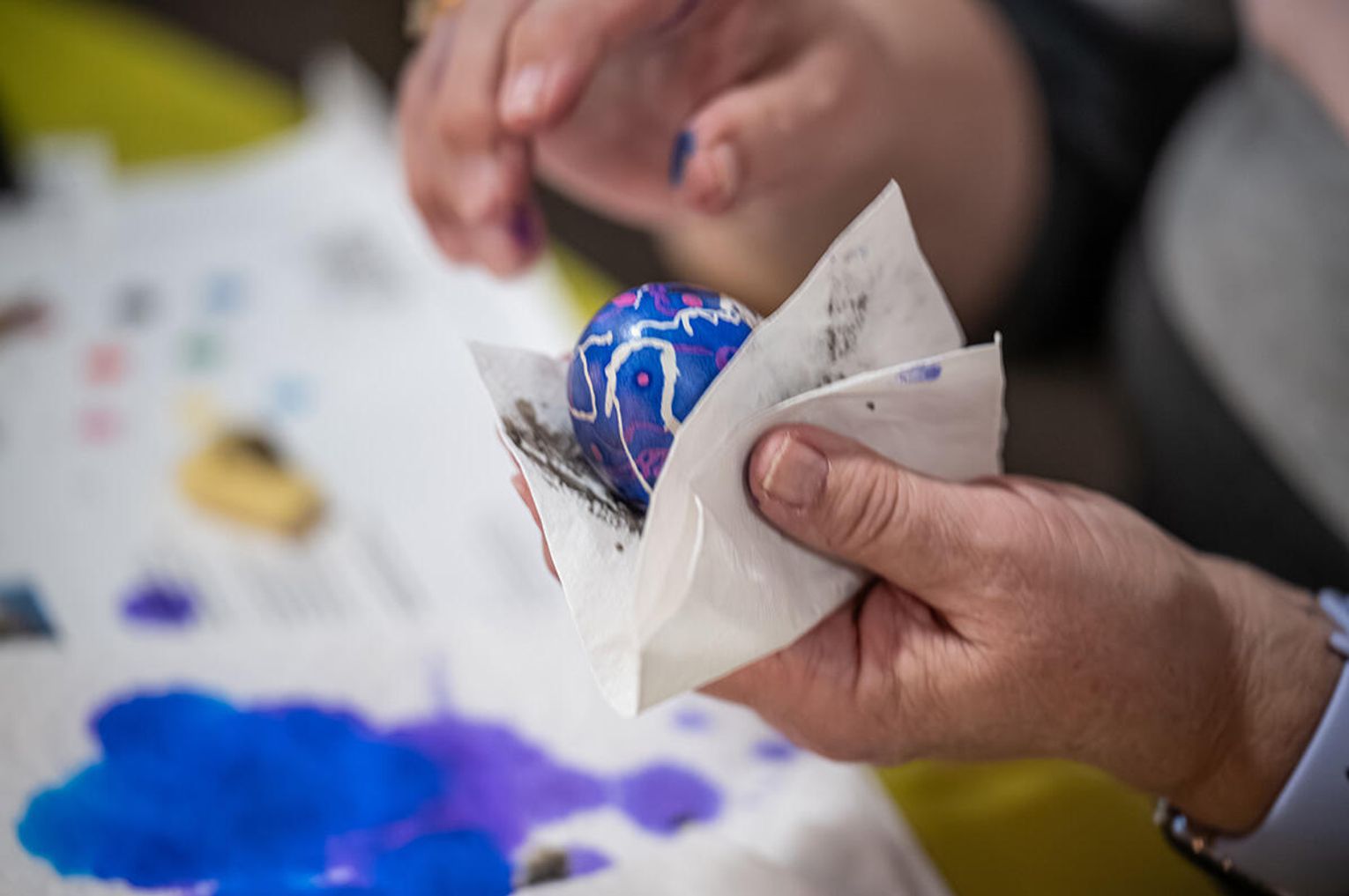 – Dzień dobry, przyprowadziłem wnuczkę, która chce zrobić pisanki – uśmiecha się przy wejściu starszy pan. Małgorzata Kot, dyrektor wykonawcza Muzeum Polskiego w Ameryce, sadza dziadka razem z wnuczką przy jednym ze stolików i obu wręcza kistki, czyli specjalne „pisaki”, którymi nabiera się i nakłada wosk na skorupki. – To ja też mogę? – pyta zaskoczony starszy pan. – Warsztaty są dla wszystkich, nie tylko dla dzieci – odpowiada z uśmiechem Małgorzata Kot.