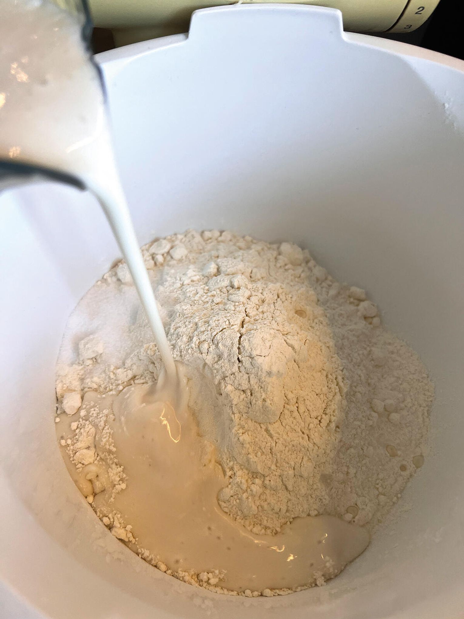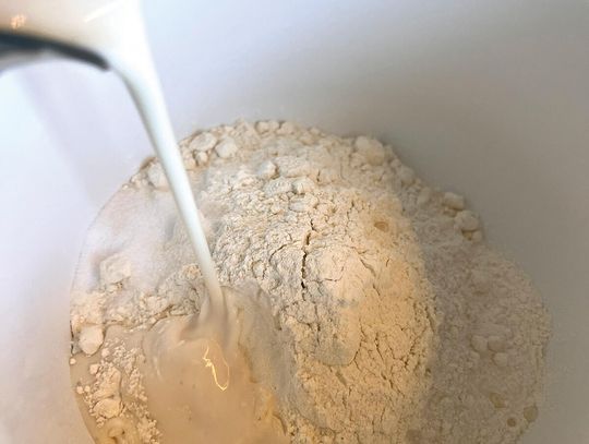 Zrób zaczyn: drożdże rozpuść w maślance z cukrem i odstaw na ok. 15 min.