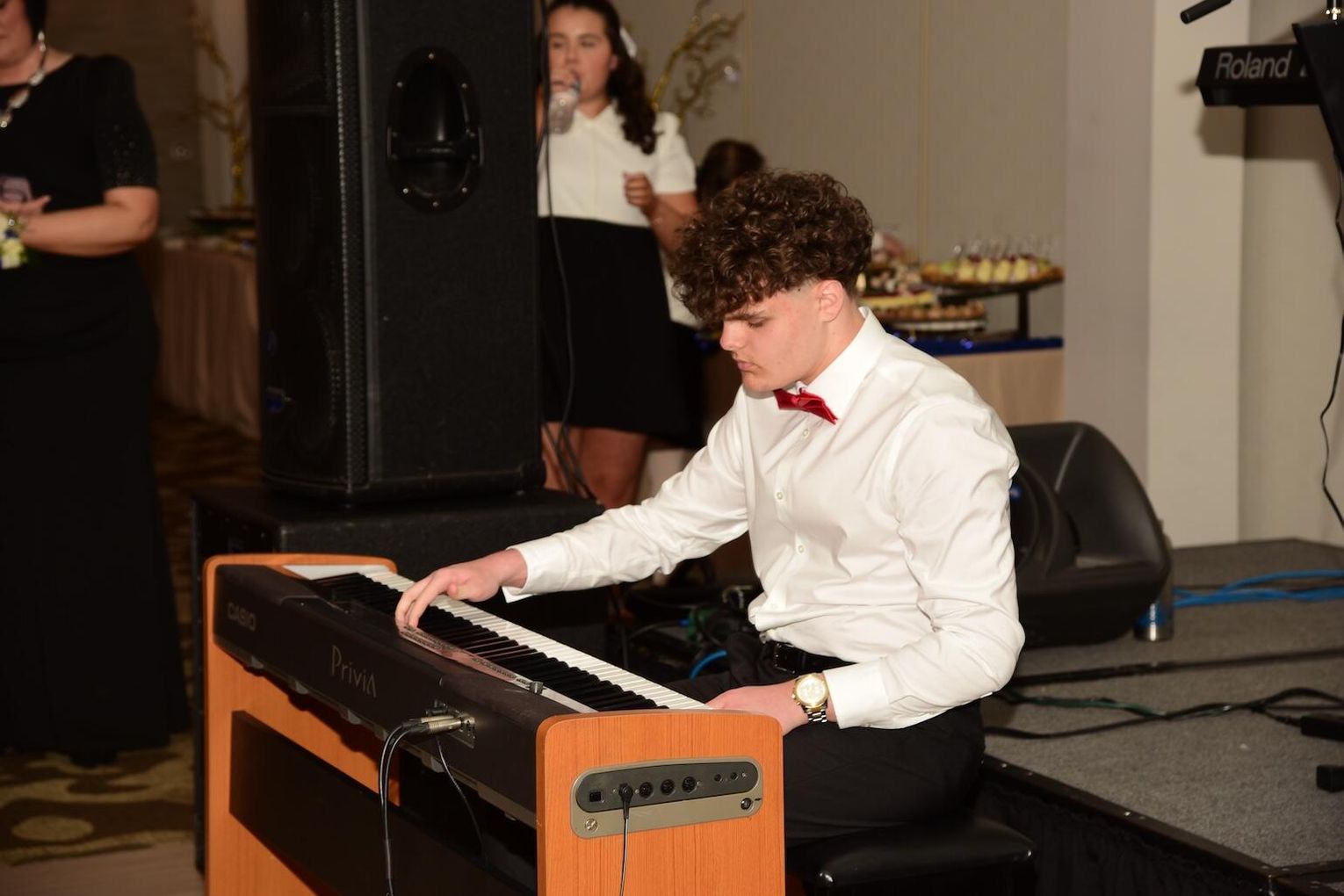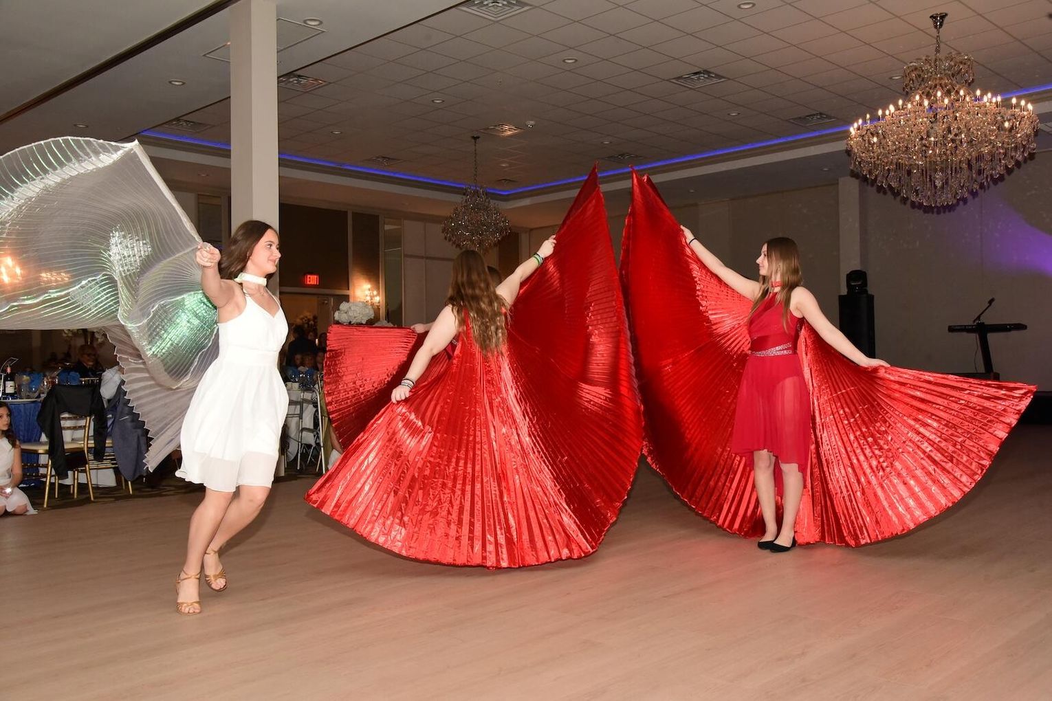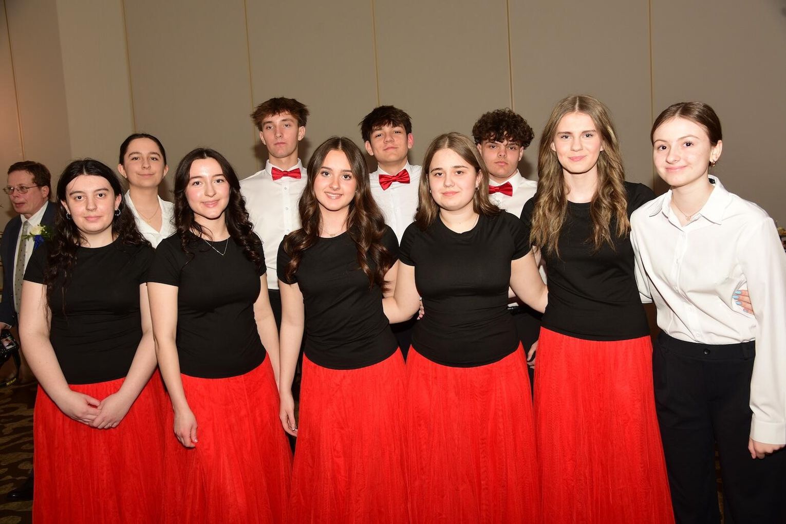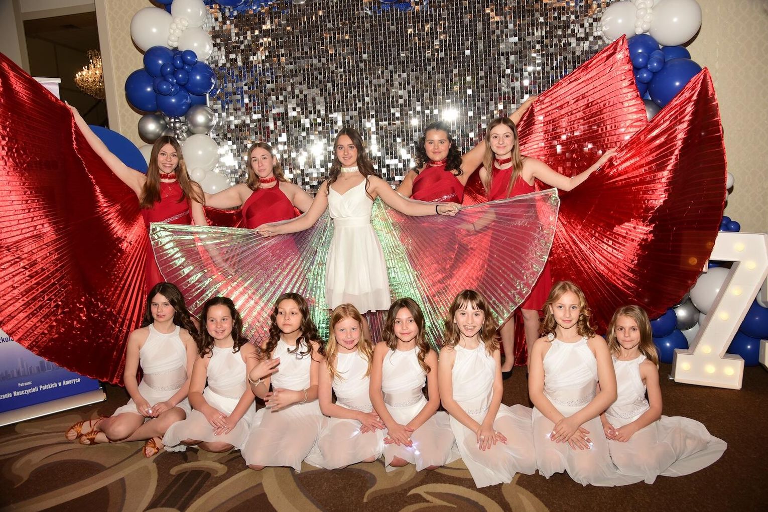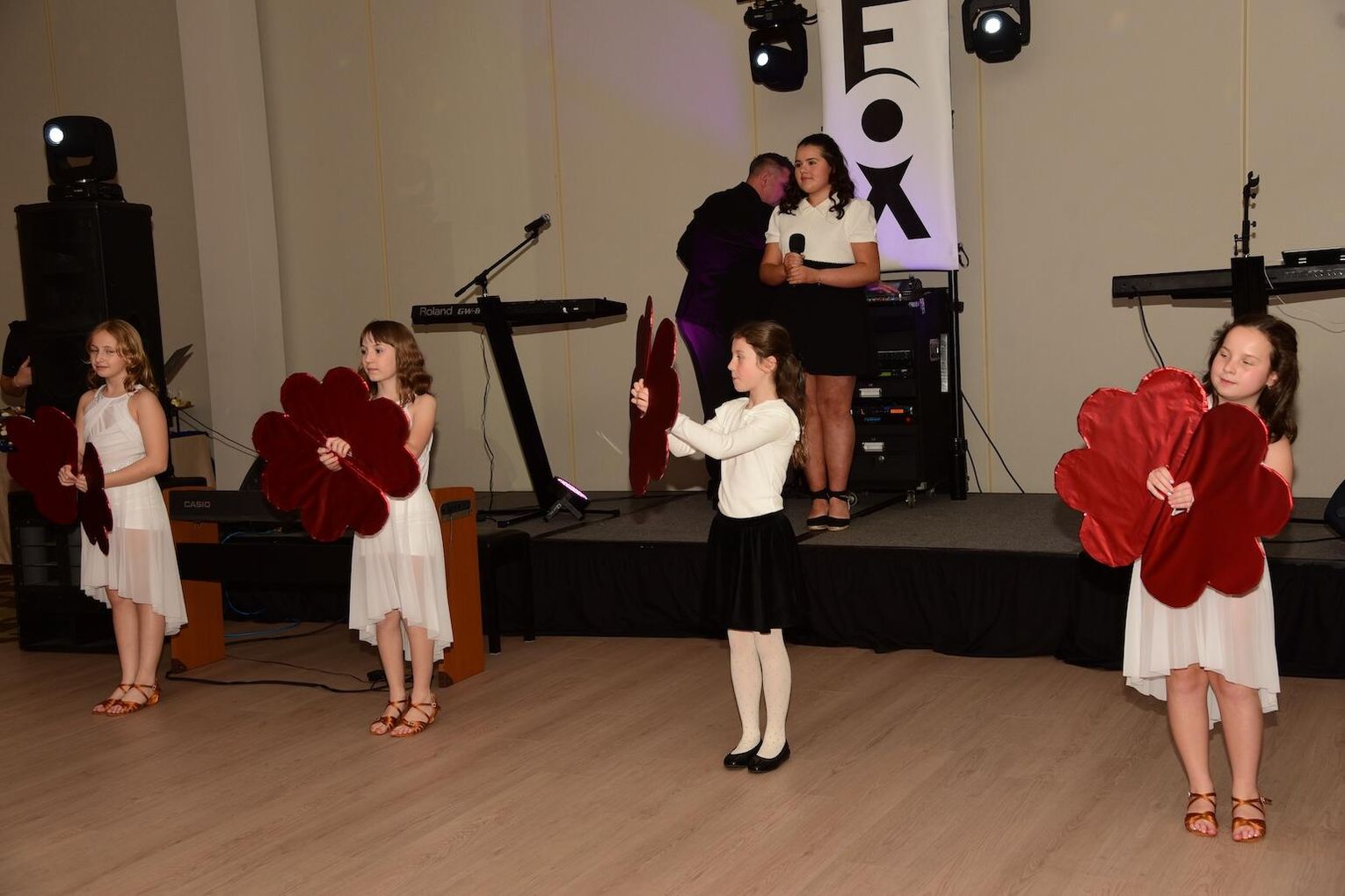 Rozpoczynając wieczór pełen wspomnień, wzruszeń i radości ze wspólnie spędzonych chwil mistrzowie ceremonii Wioletta Pietrzak i Tomasz Popławski zaprosili gospodarzy oraz gości do wspólnej celebracji zapraszając do obejrzenia układu tanecznego w wykonaniu członkiń szkolnej grupy Orzeł.
